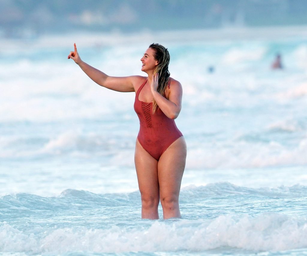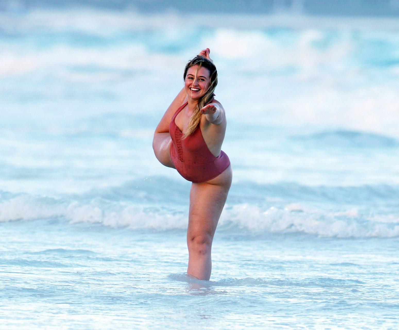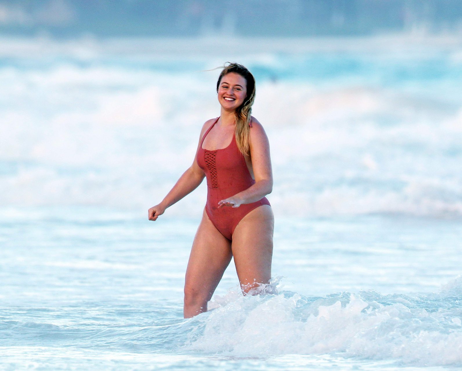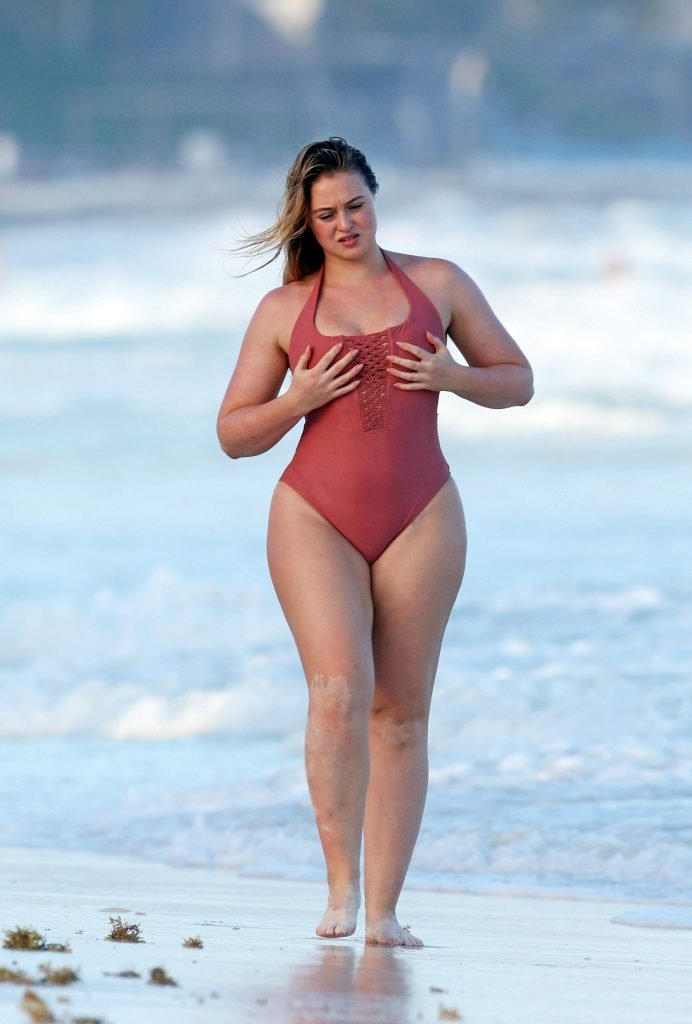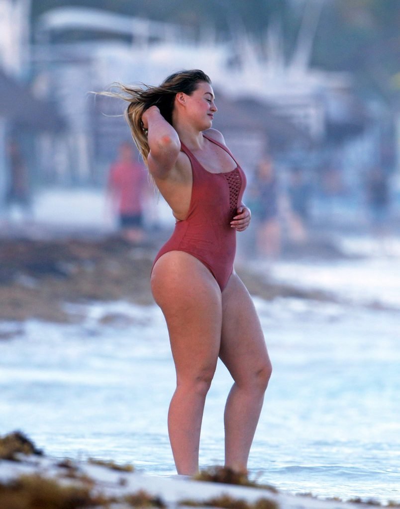 Model Iskra Lawrence lleva un traje de baño mientras disfruta de sus vacaciones en la playa de Tulum, 21/02/2018.