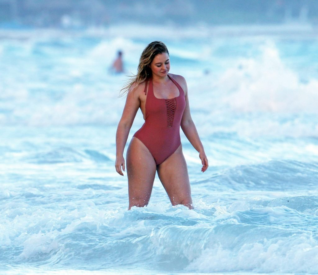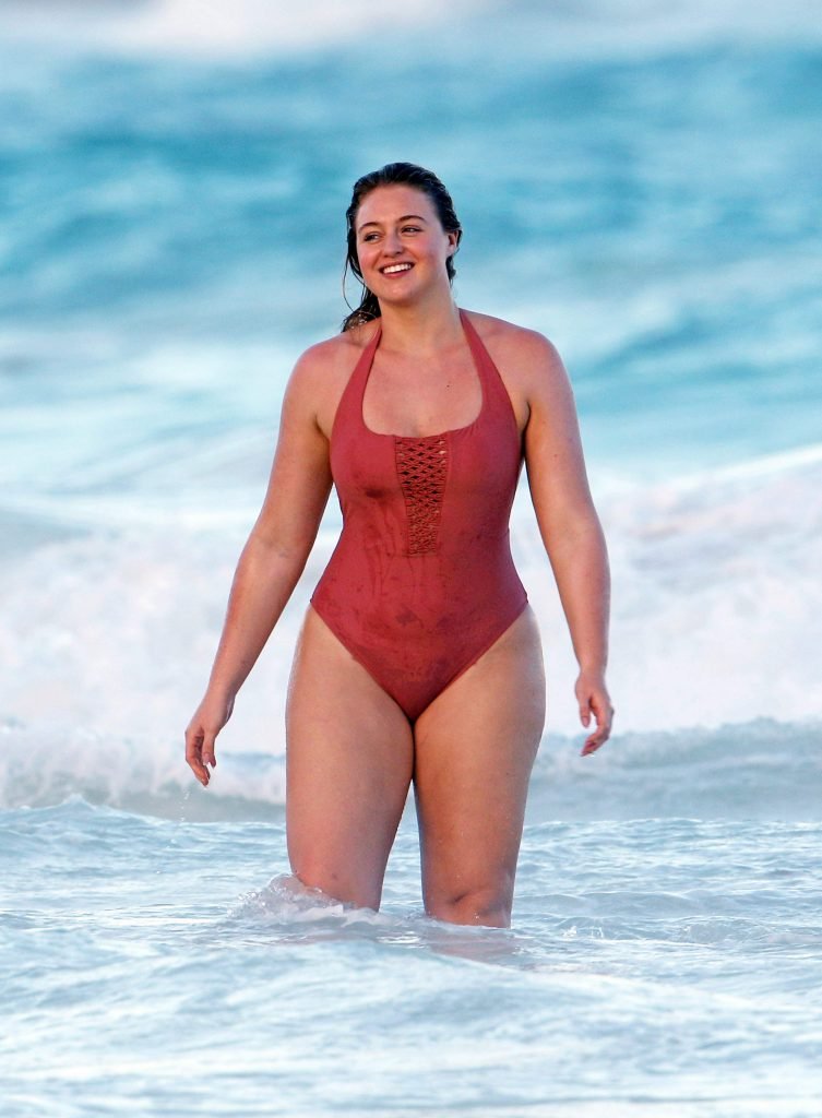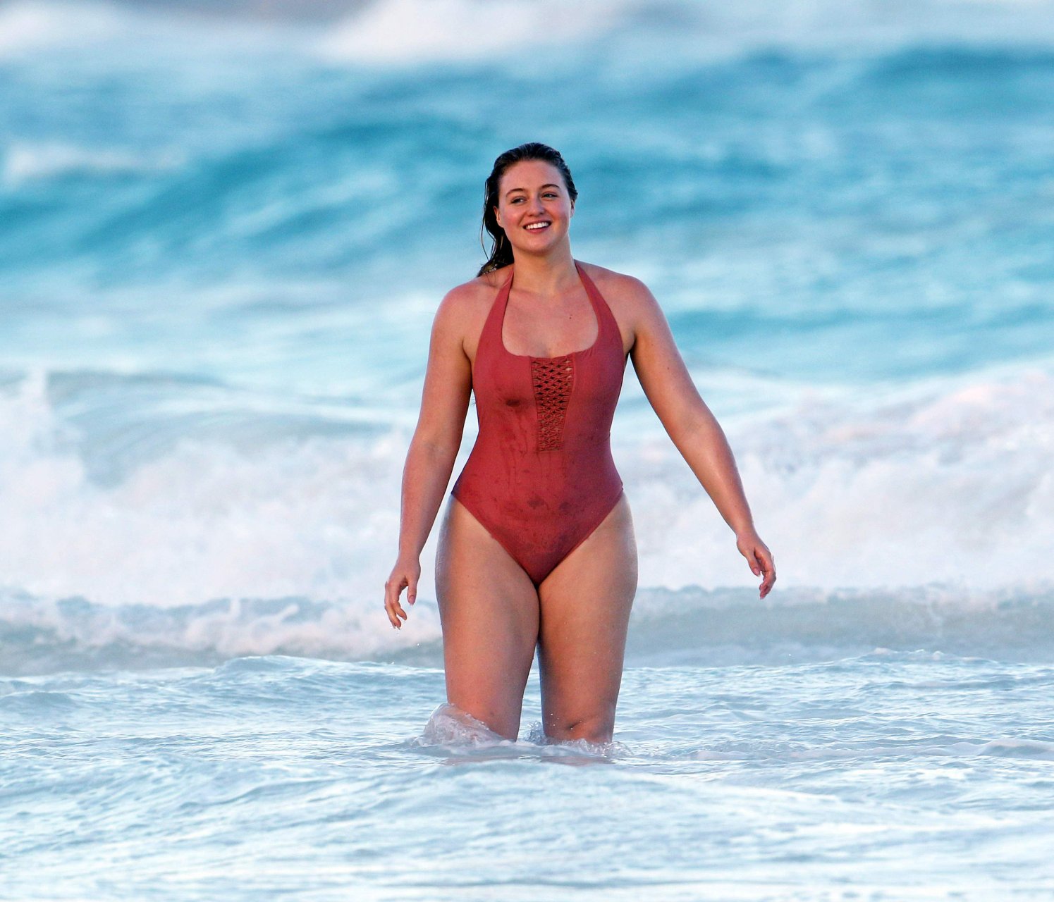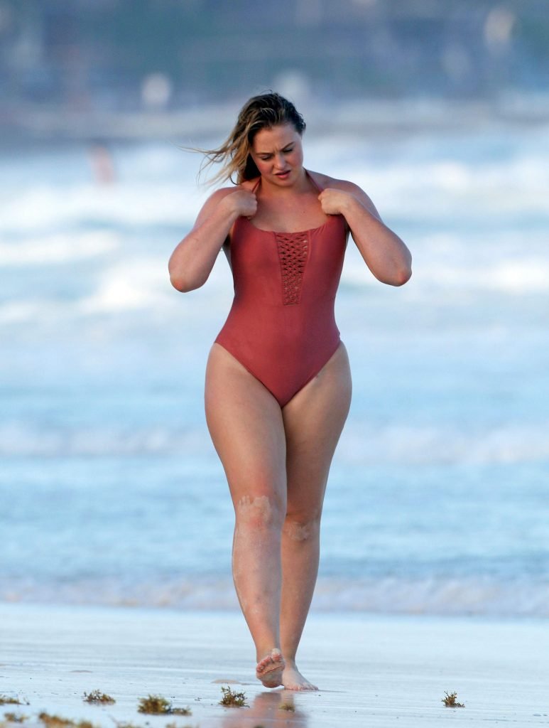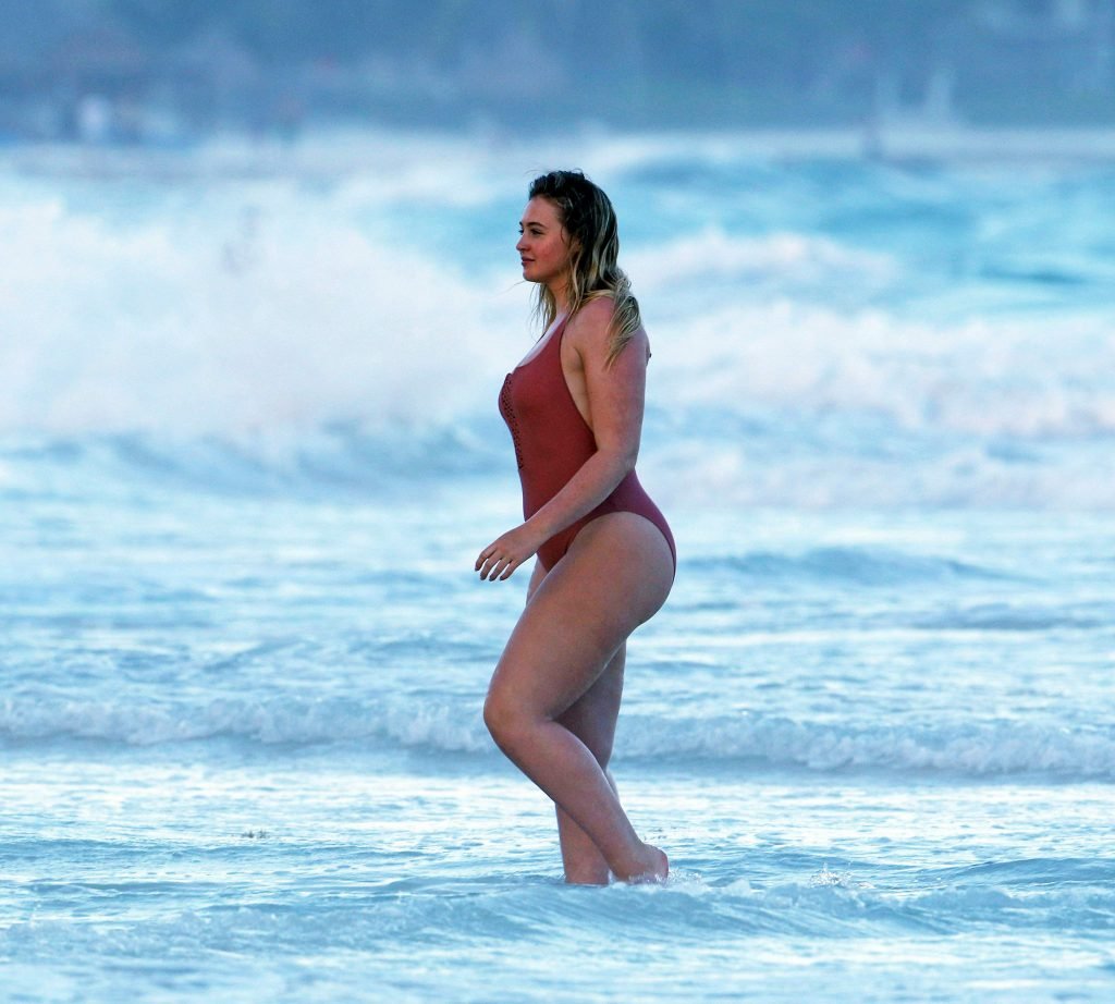 Model Iskra Lawrence lleva un traje de baño mientras disfruta de sus vacaciones en la playa de Tulum, 21/02/2018.