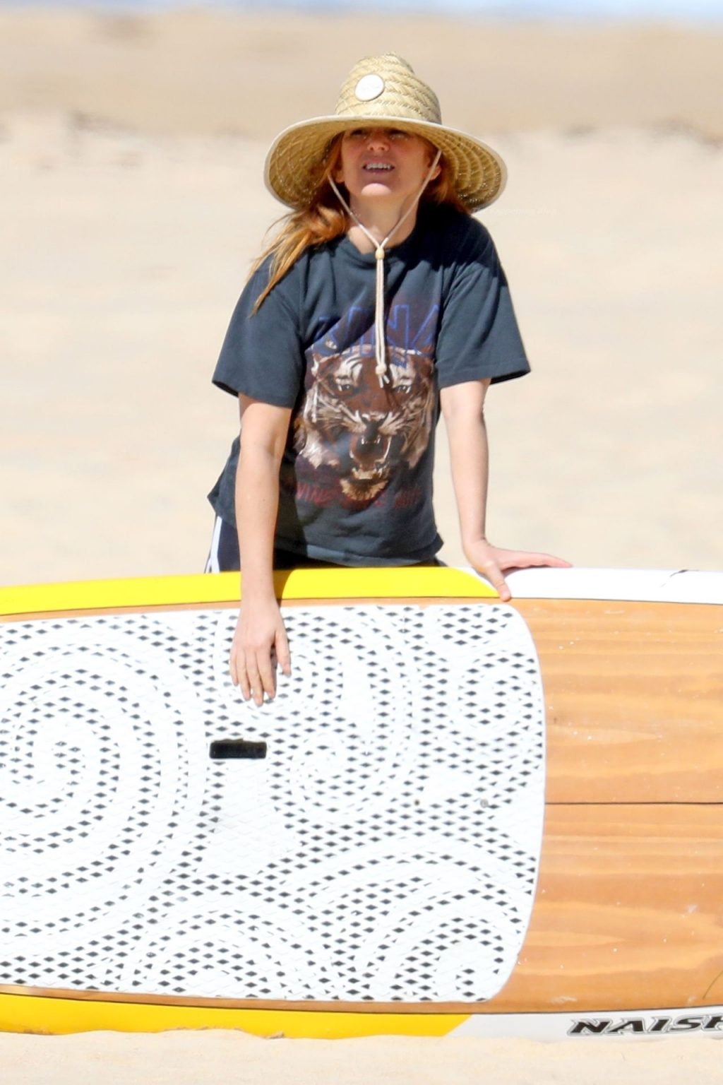 Isla Fisher, 45, muestra su increíble figura en un traje de baño floral rosa mientras disfruta de la playa en unas vacaciones extendidas en Australia.