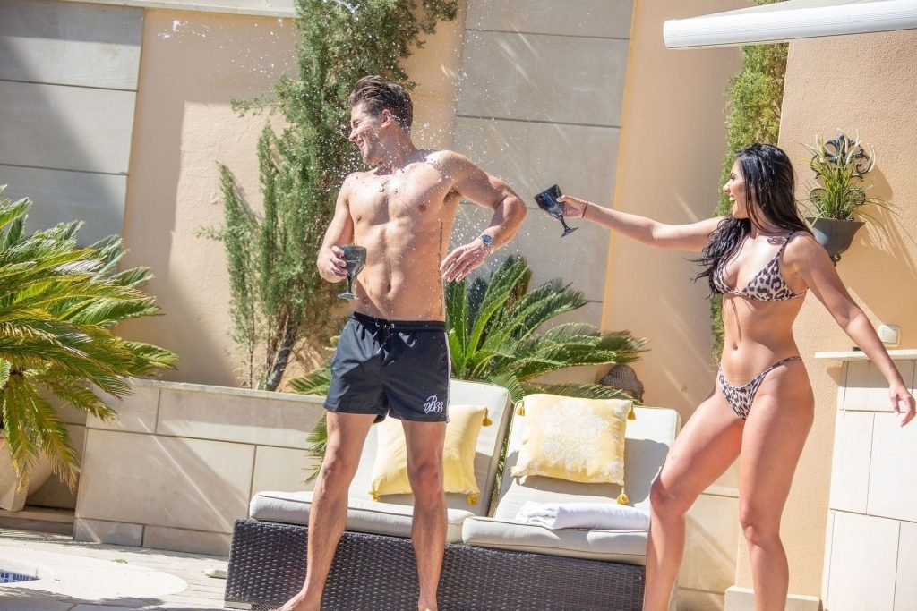 Sexy estrella de “Ibiza Weekender” Jordan Davies mostrando algo de PDA de vacaciones con su novia Isobel Mills en Mallorca, 01/04/2019.