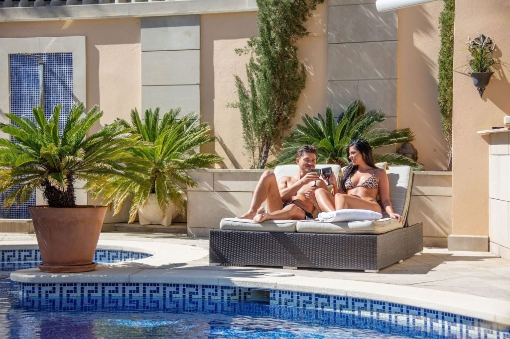 La pareja causó sensación junto a la piscina mientras mostraban algo de PDA disfrutando de un tiempo de calidad juntos, con Isobel luciendo un sexy bikini de estampado animal que mostraba su sexy físico.