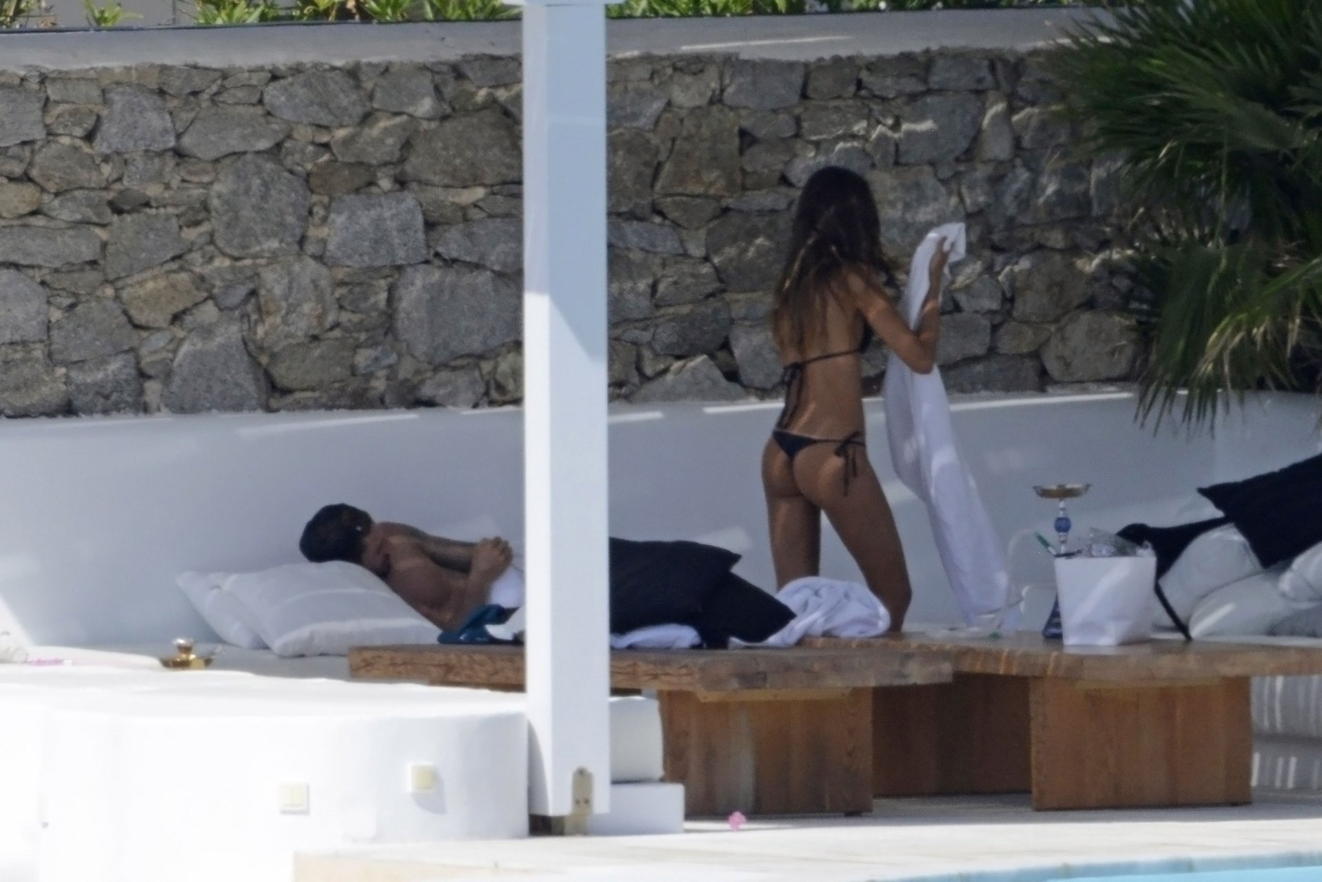 La modelo Izabel Goulart y su novio Kevin Trapp están de vacaciones de verano en la isla de Mykonos, donde alquilaron una gran villa de lujo, 11/07/2018. La pareja disfrutó de momentos románticos, e Izabel estaba grabando videos con su móvil, mostrando su cuerpo delgado con un pequeño bikini negro.