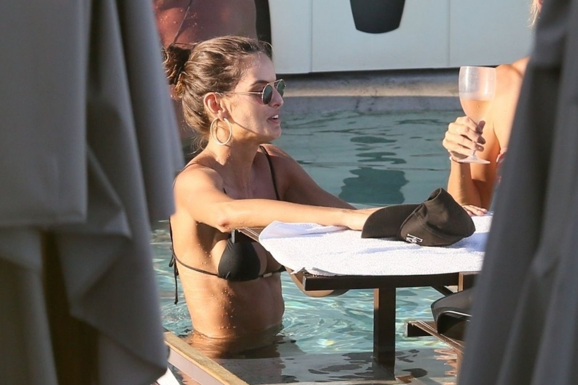 La modelo Izabel Goulart disfruta de un tiempo de descanso después de festejar durante las festividades de Carnaval en Río, 08/03/2019. La delgada y atractiva mostró su dulce y pequeña cola en la piscina con amigos.