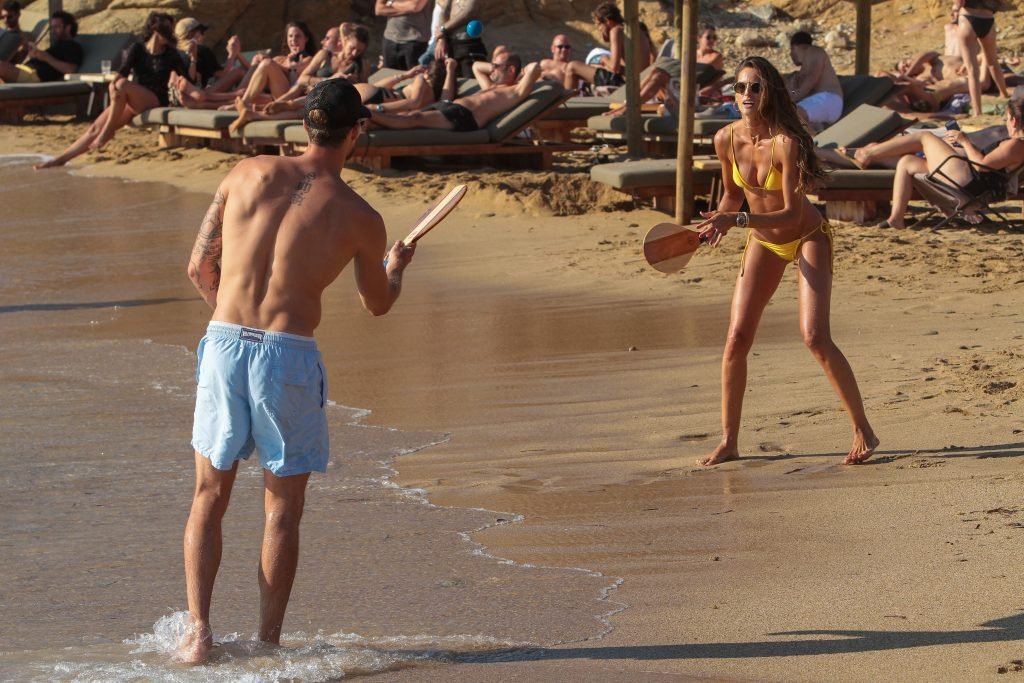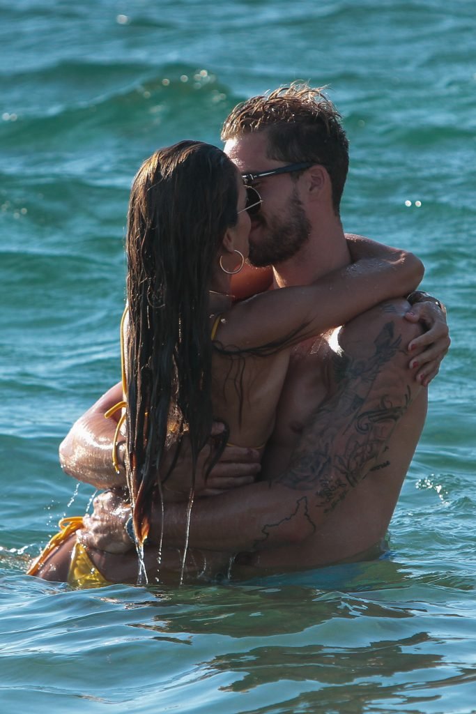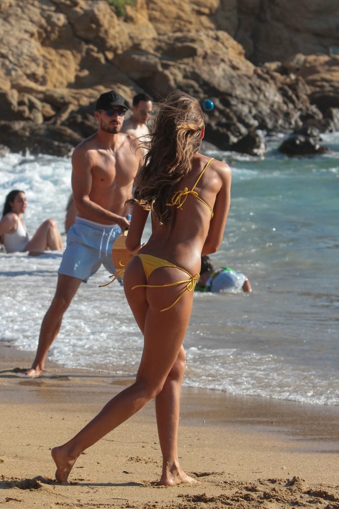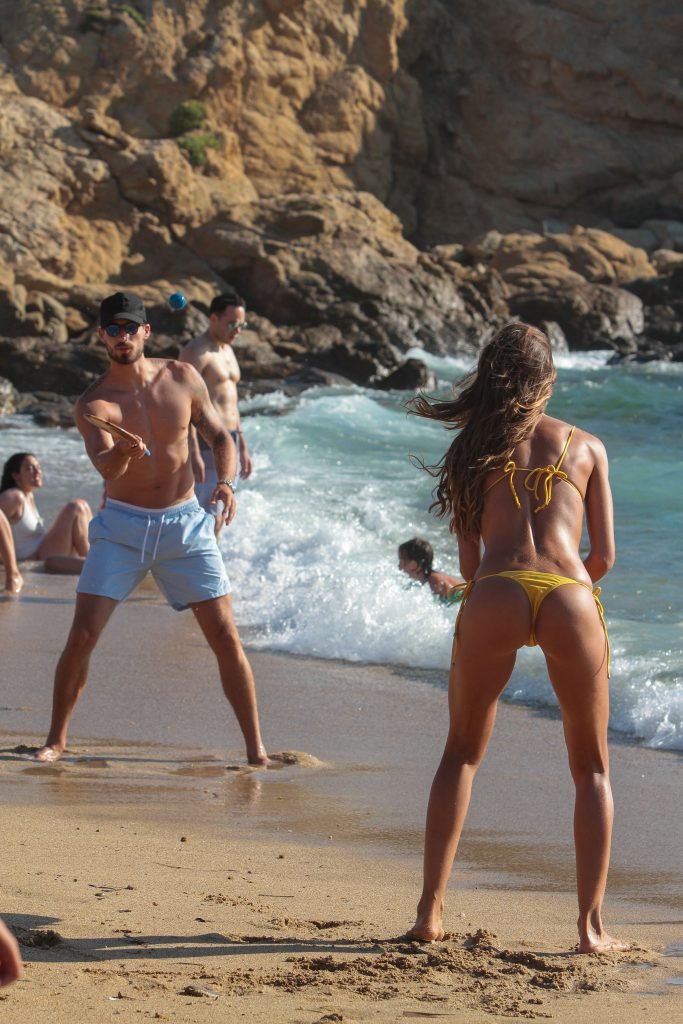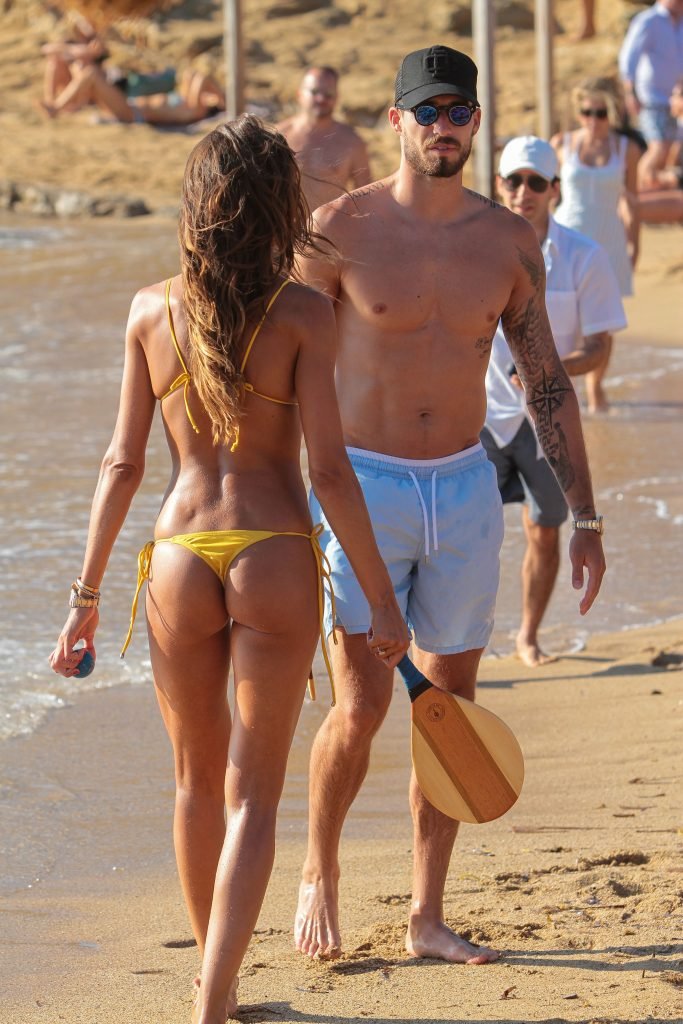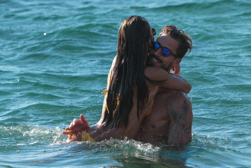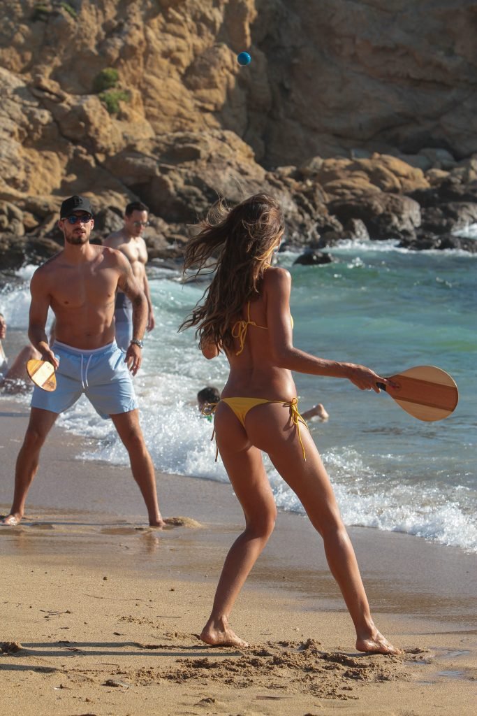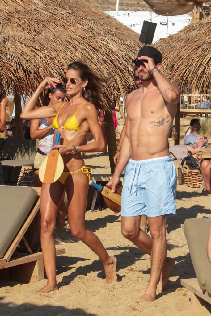 Supermodelo Izabel Goulart fue vista con Kevin Trapp divirtiéndose en la playa de la isla de Mykonos, Grecia, 13/07/2018. Se besaron en el agua y jugaron tenis de playa.
