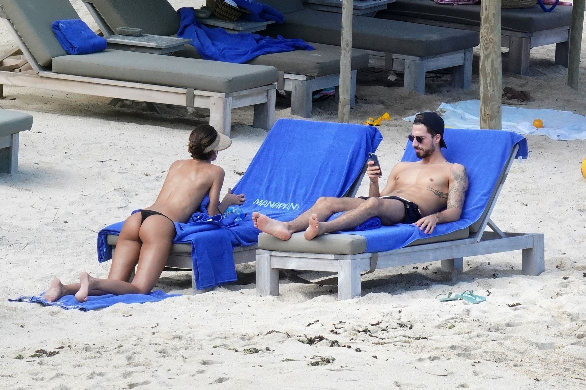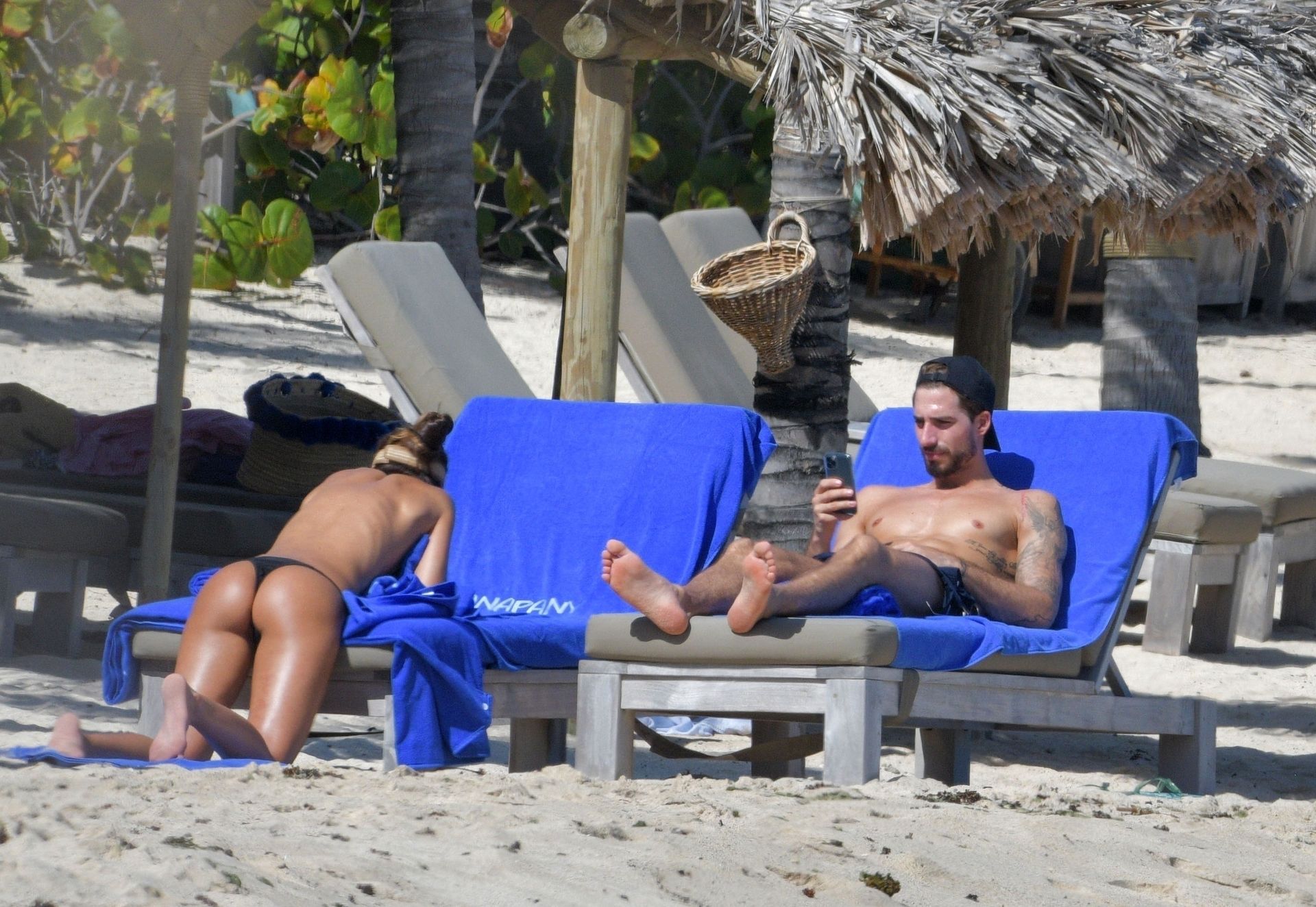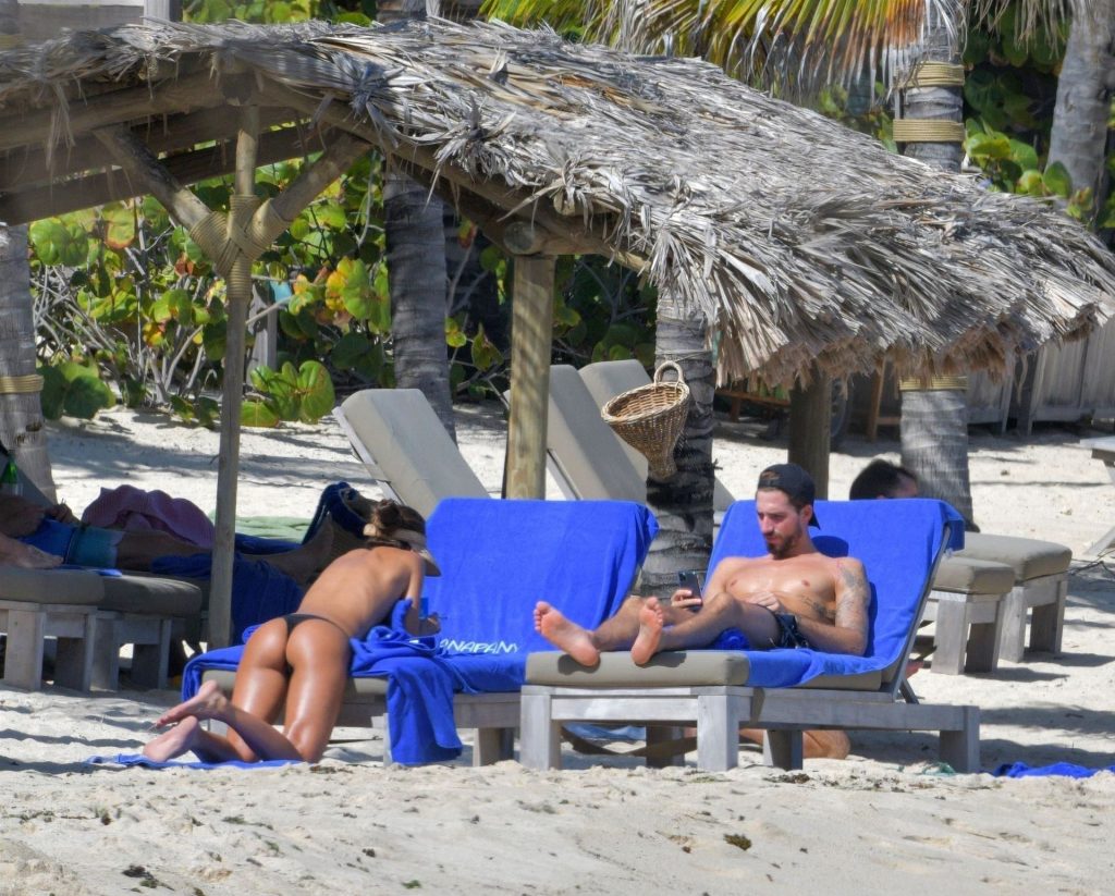 La modelo de moda brasileña Izabel Goulart y el futbolista alemán Kevin Trapp disfrutan de un tiempo de descanso en la playa durante las vacaciones de Navidad en St Barts, 28/12/2019.