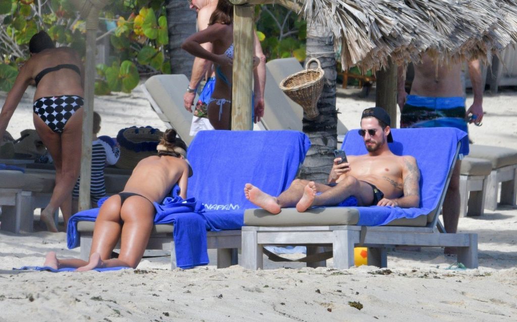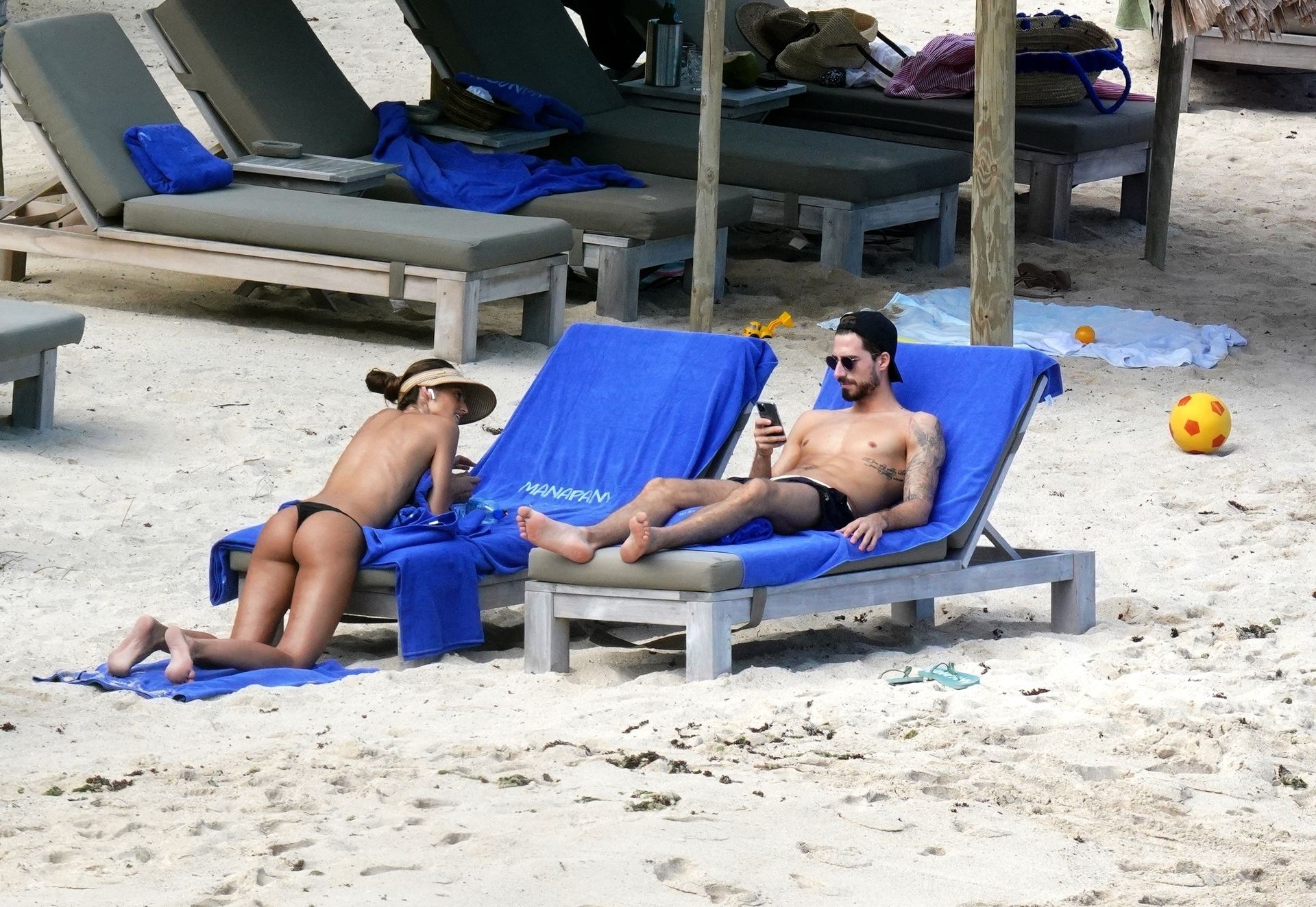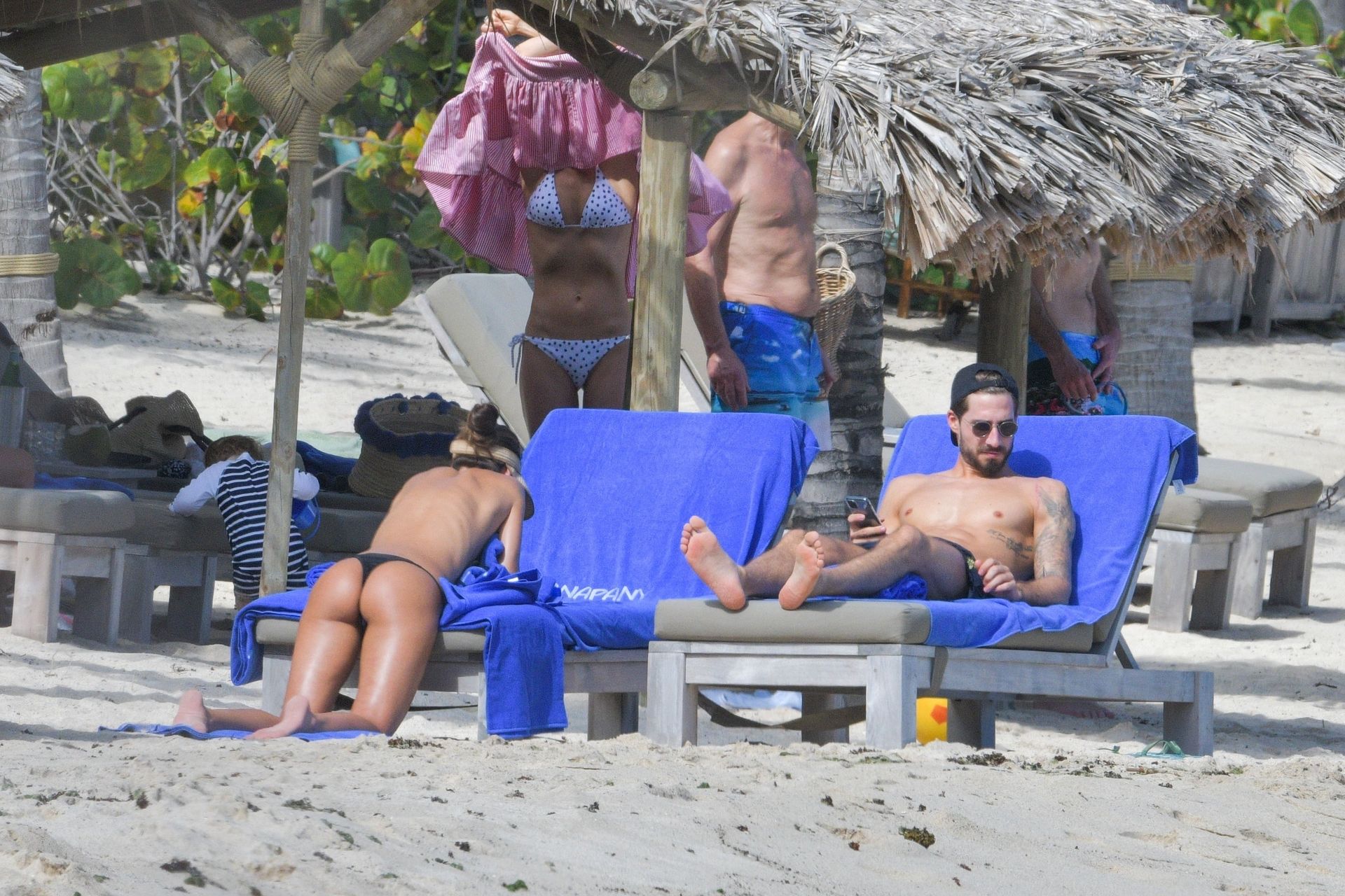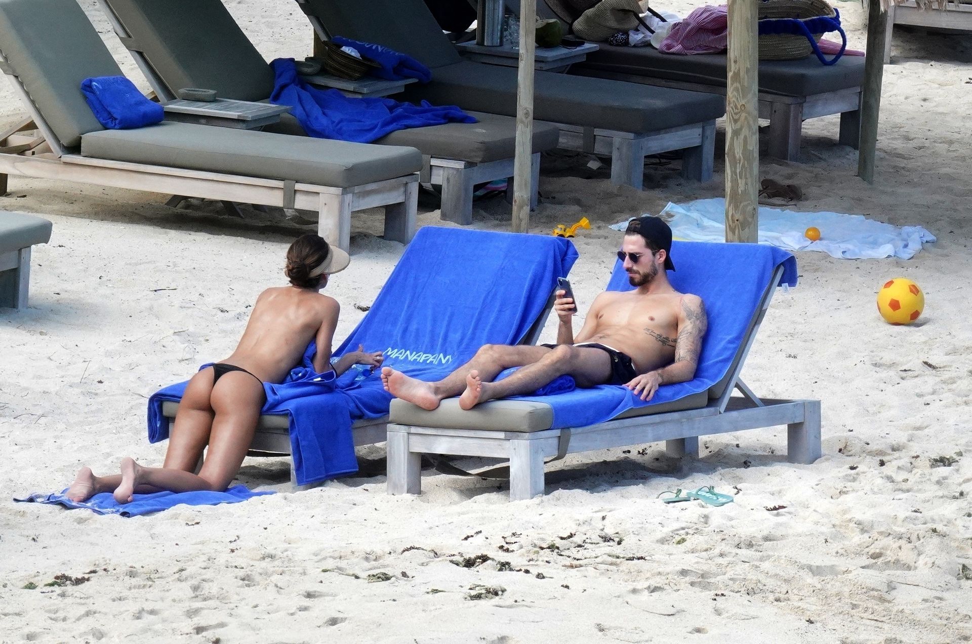 La modelo de moda brasileña Izabel Goulart y el futbolista alemán Kevin Trapp disfrutan de un tiempo de descanso en la playa durante las vacaciones de Navidad en St Barts, 28/12/2019.