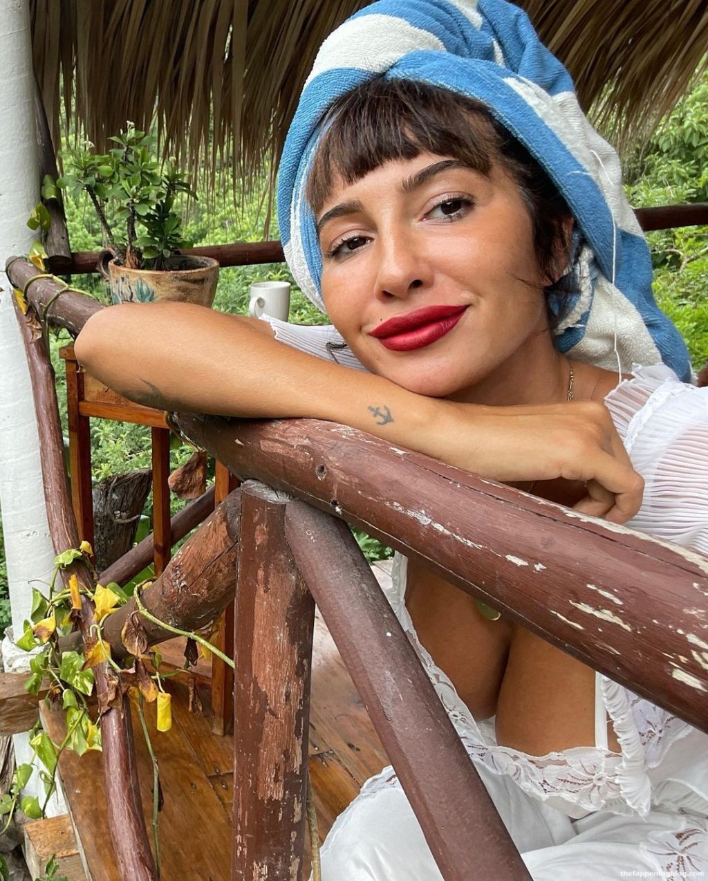Actriz y estrella de The Fappening Jackie Cruz muestra sus pies y pechos, posando con un vestido blanco en una nueva sesión de fotos en redes sociales, 07/10/2021.