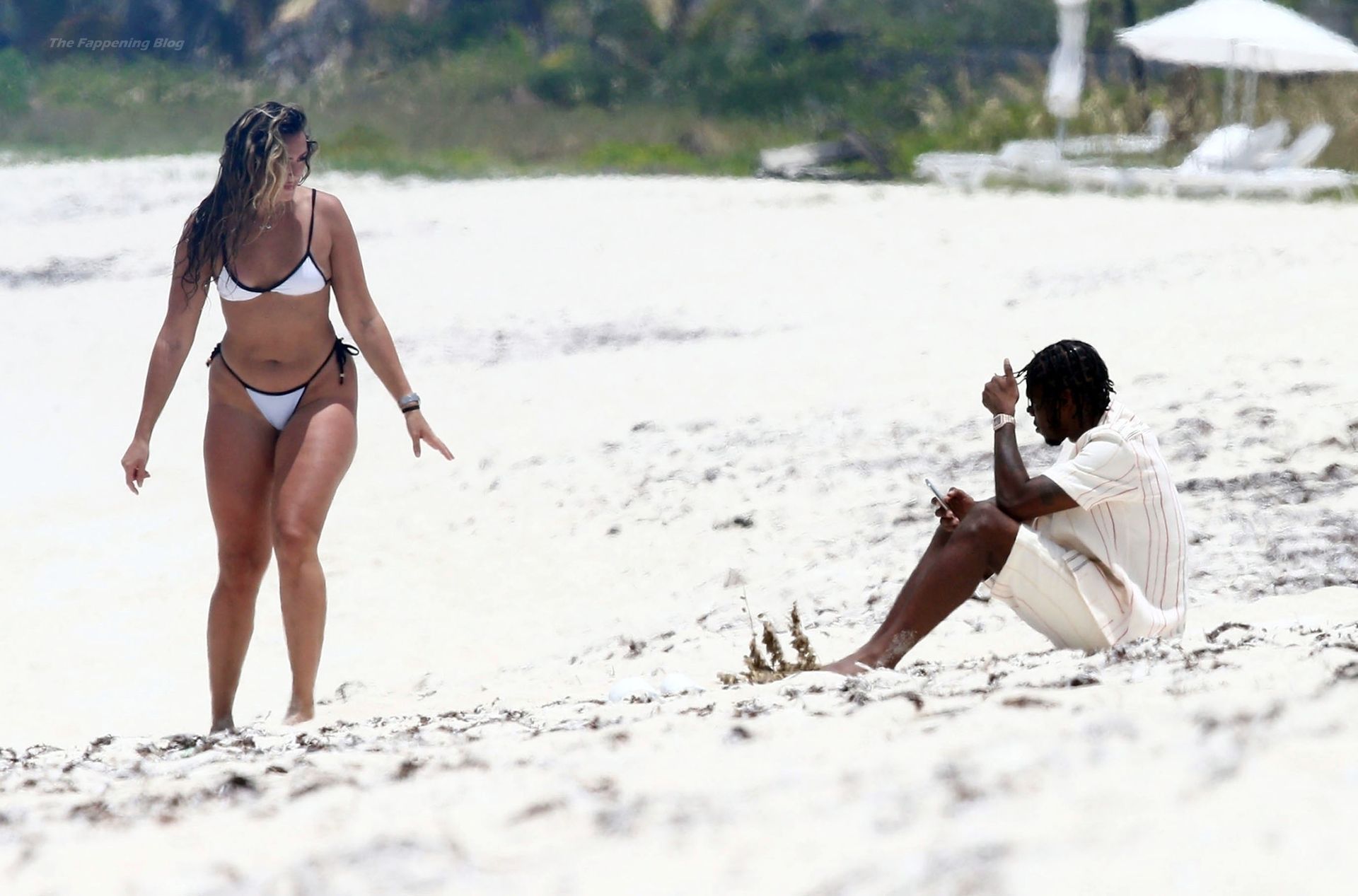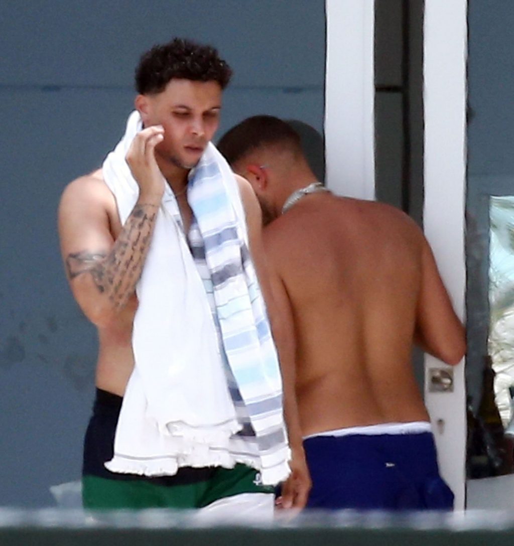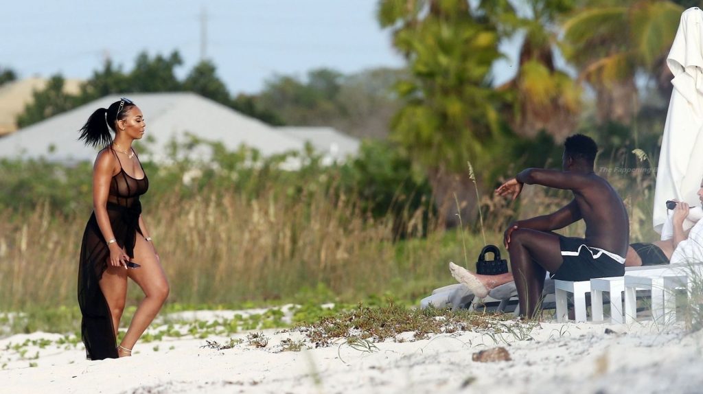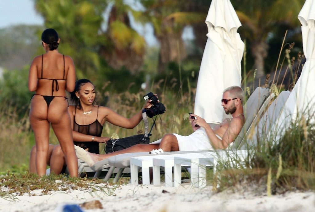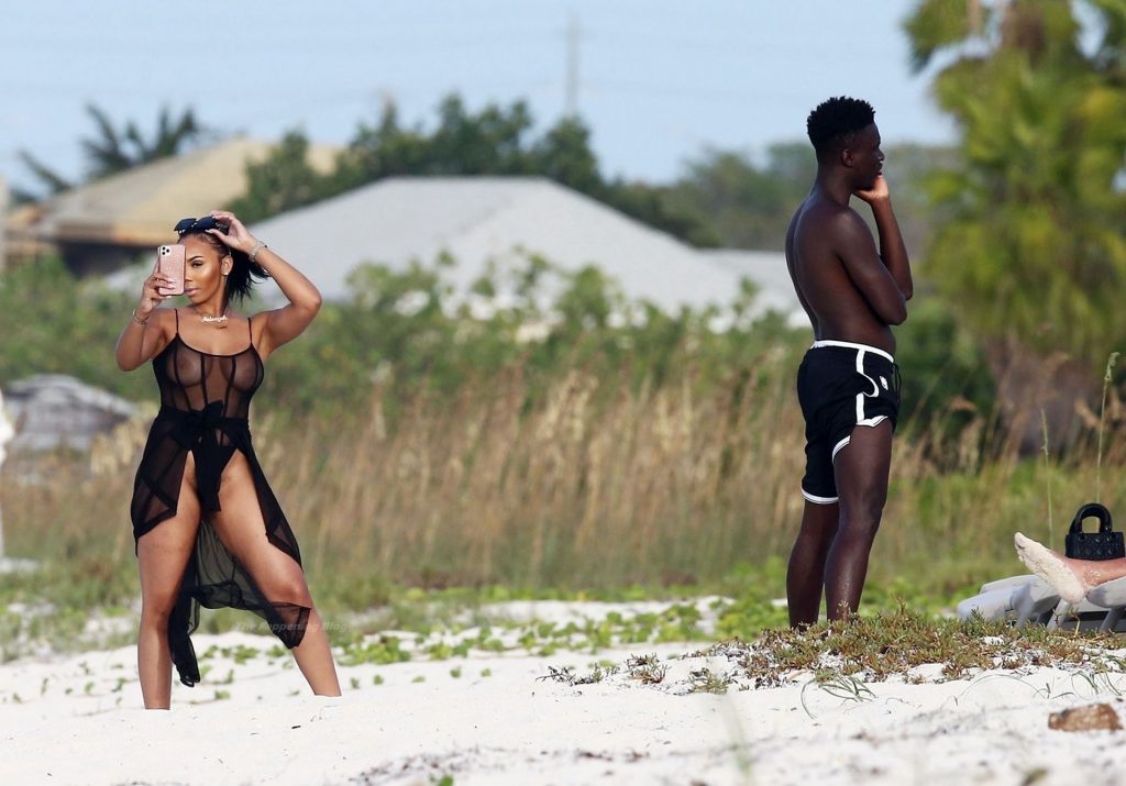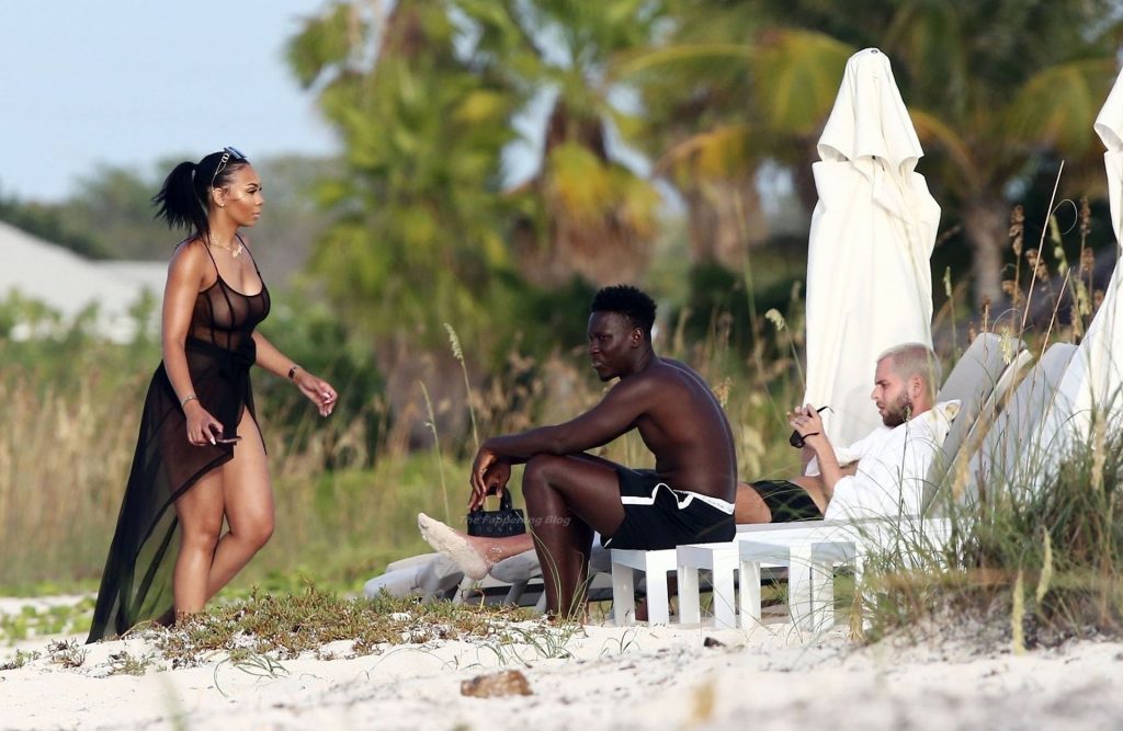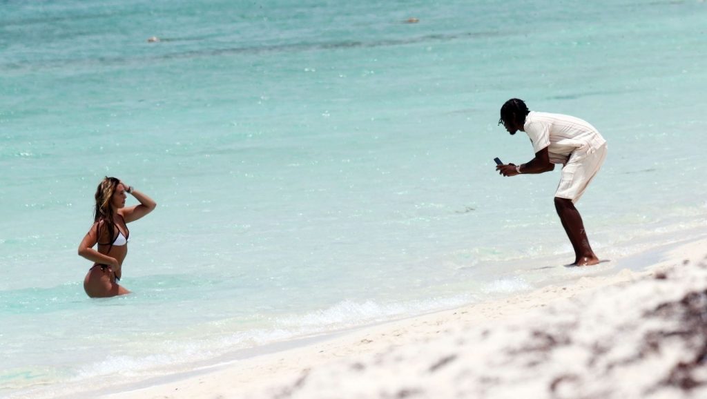 El músico Krept del dúo británico de rap Krept and Konan también fue visto en las playas de arena blanca, tomando algunas fotos de su esposa Sasha Ellese en la idílica isla caribeña.