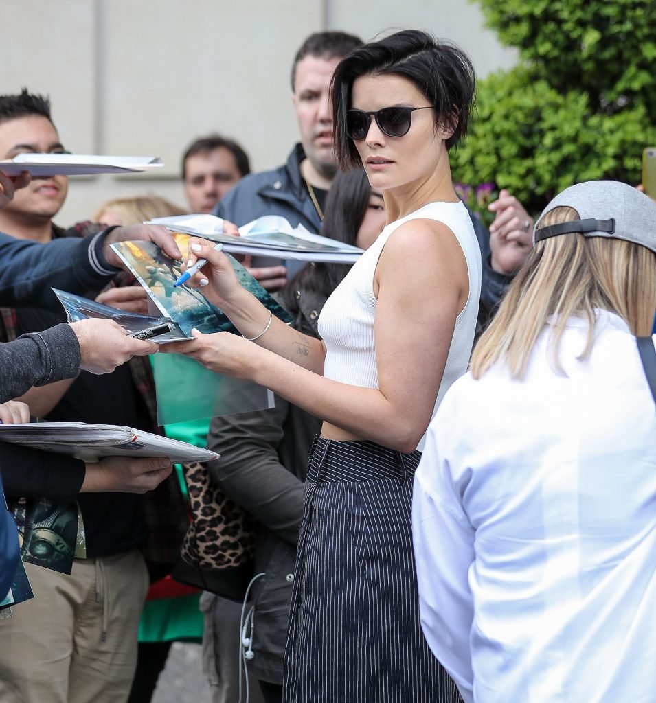 Candids de Jaimie Alexander luciendo hermosa con pokies duros a la vista mientras llegaba a su hotel en la ciudad de Nueva York, 14/05/2017. Jaimie Alexander es una actriz estadounidense. Edad – 32 años (12 de marzo de 1984).