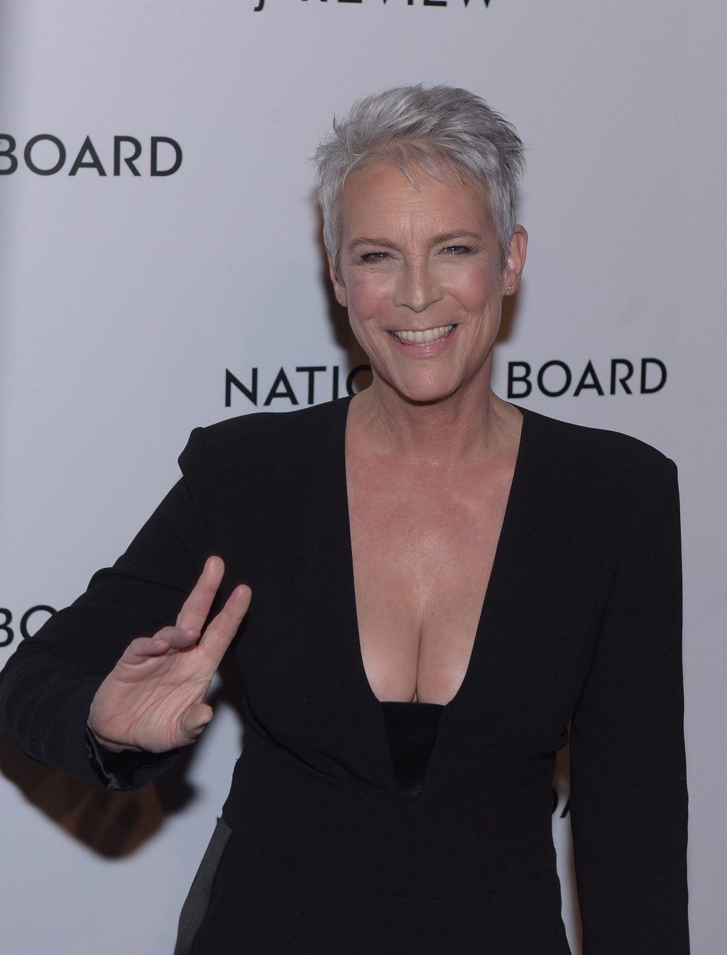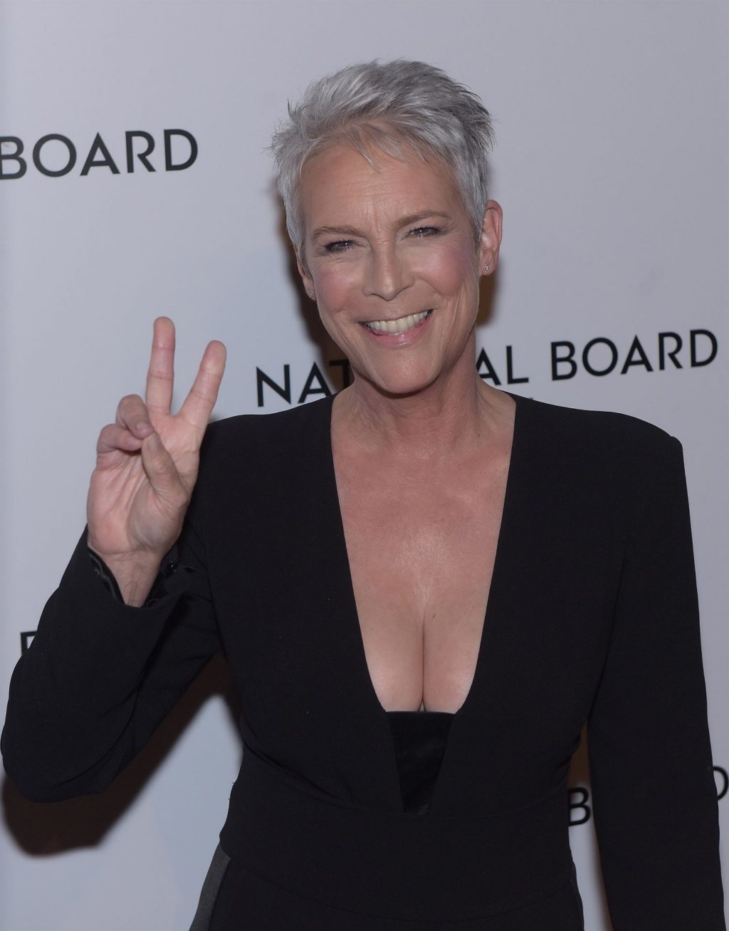 La famosa actriz Jamie Lee Curtis muestra sus pechos mientras asiste a la Gala Anual de Premios de la Junta Nacional de Revisión en Cipriani 42nd Street en la ciudad de Nueva York, 08/01/2020.