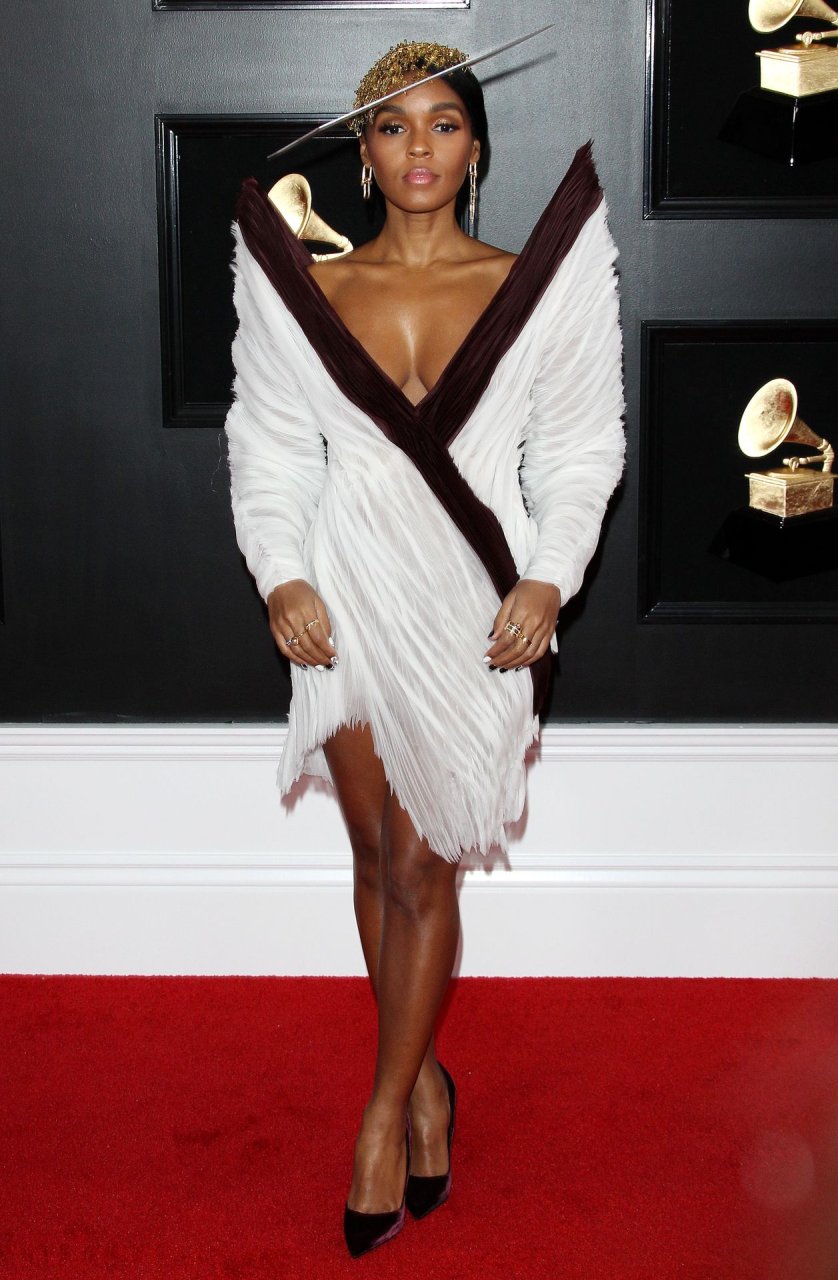 Janelle Monae luce su escote con un vestido extraño en la 61ª Entrega Anual de los Premios Grammy en Los Ángeles, 10/02/2019.