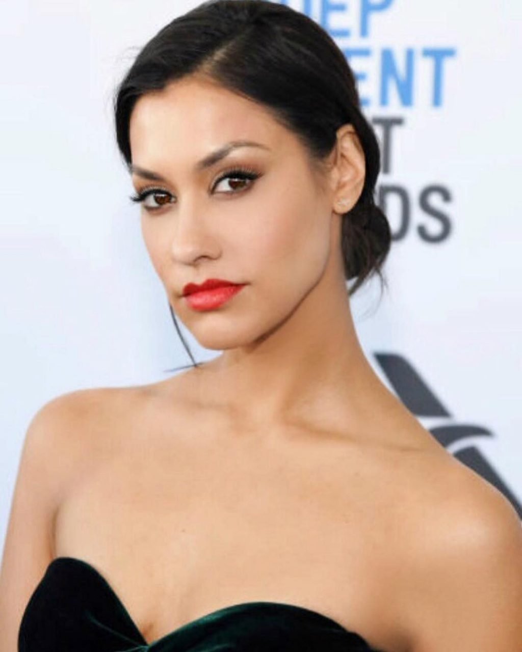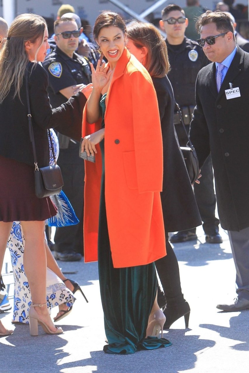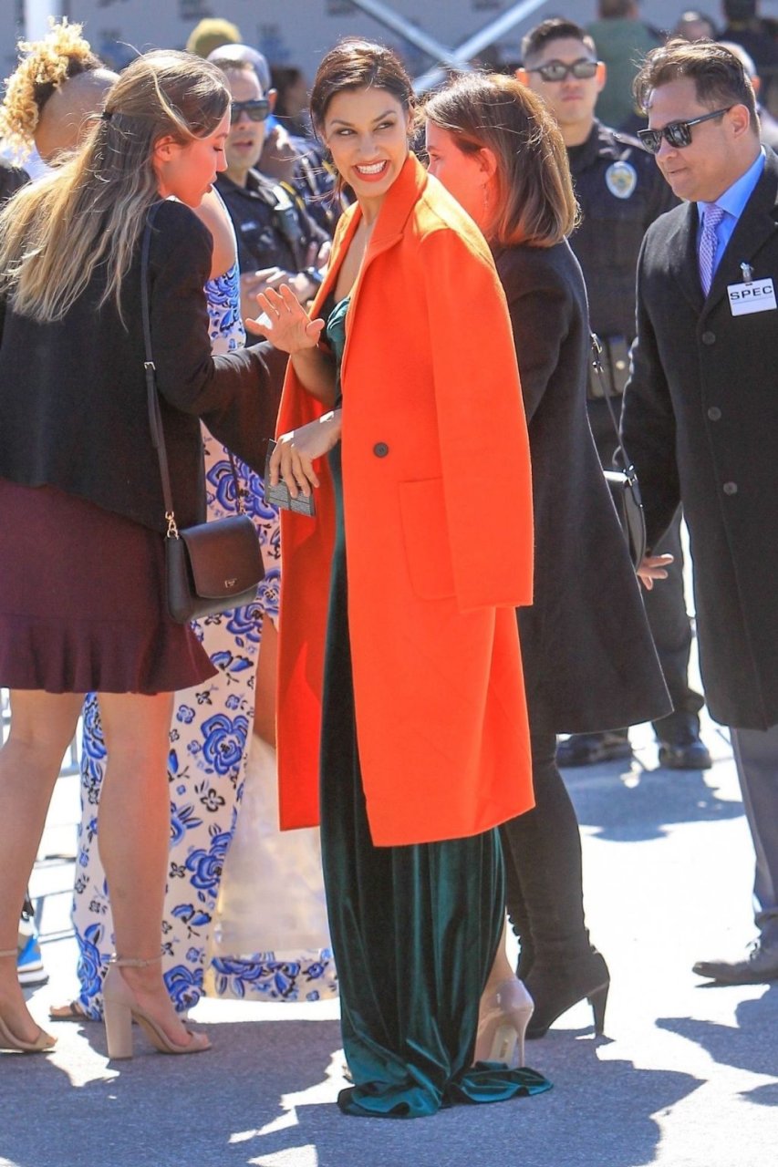 Janina Gavankar está en Santa Mónica asistiendo a los Independent Spirit Awards presentados por Aubrey Plaza, 23/02/2019. La actriz de 38 años lleva un abrigo de neón naranja brillante sobre un vestido de satén verde oscuro. Janina opta por tacones color nude para completar su look.