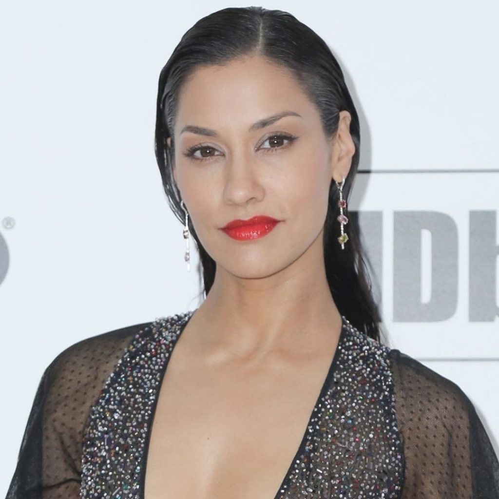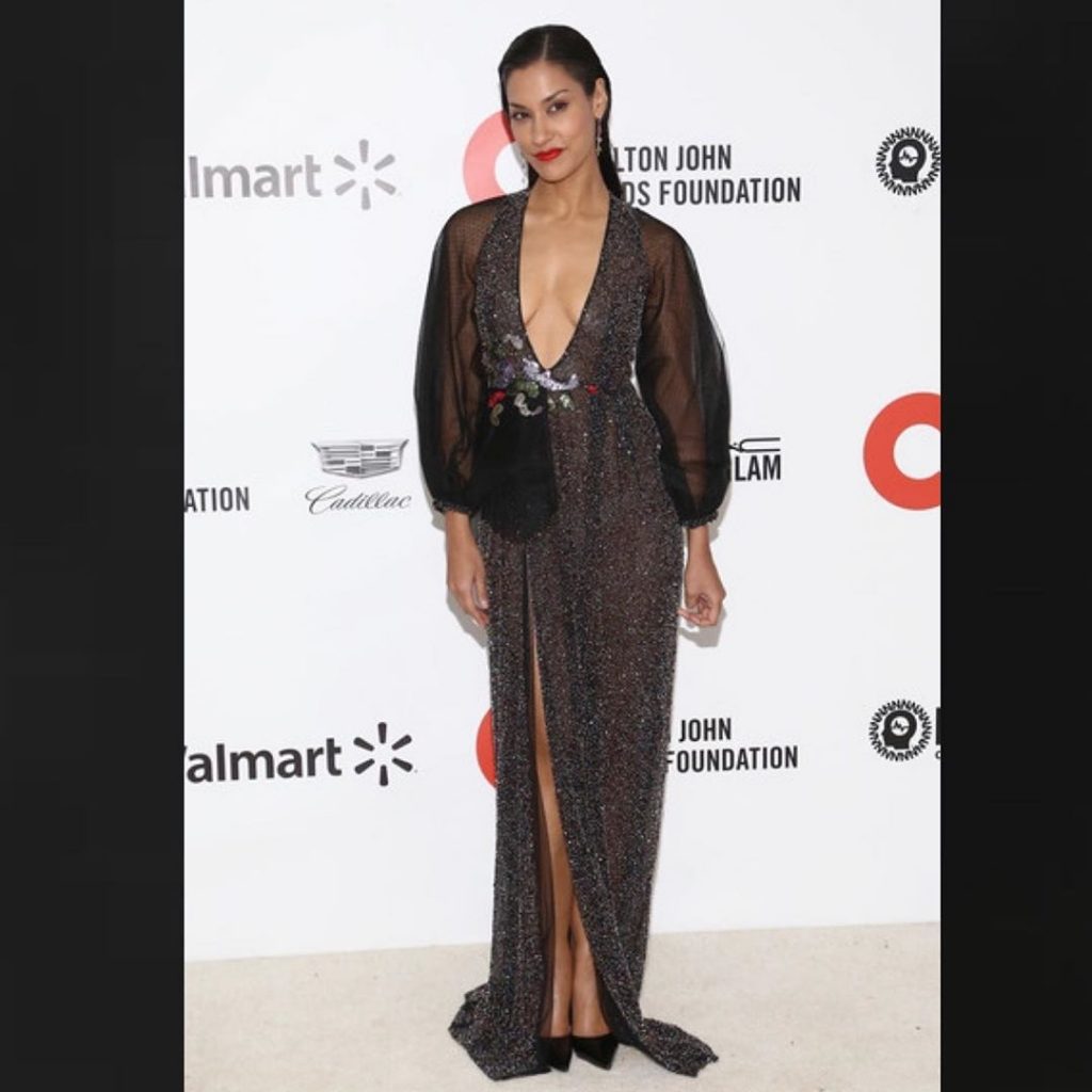 La actriz y cantante estadounidense Janina Gavankar fue fotografiada con un vestido transparente en la Fiesta de Visualización de los Oscar de la Elton John AIDS Foundation, Los Ángeles, 02/09/2020.