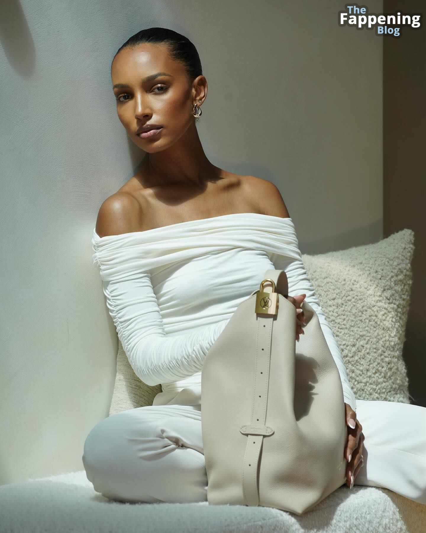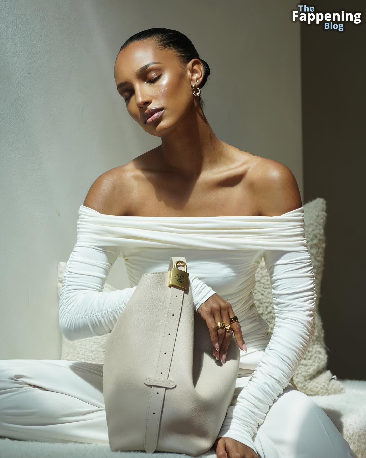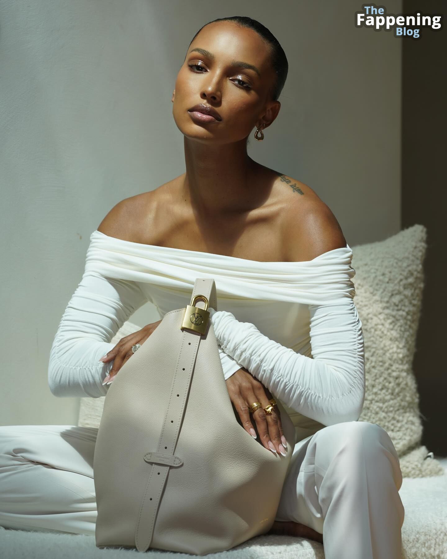 ¡Mira estas fotos súper sensuales de Jasmine Tookes, una modelo de 33 años, luciendo su piel suave como la seda, toda brillante con aceite! Ella posa en bikinis e incluso en topless, cubriéndose lo justo.