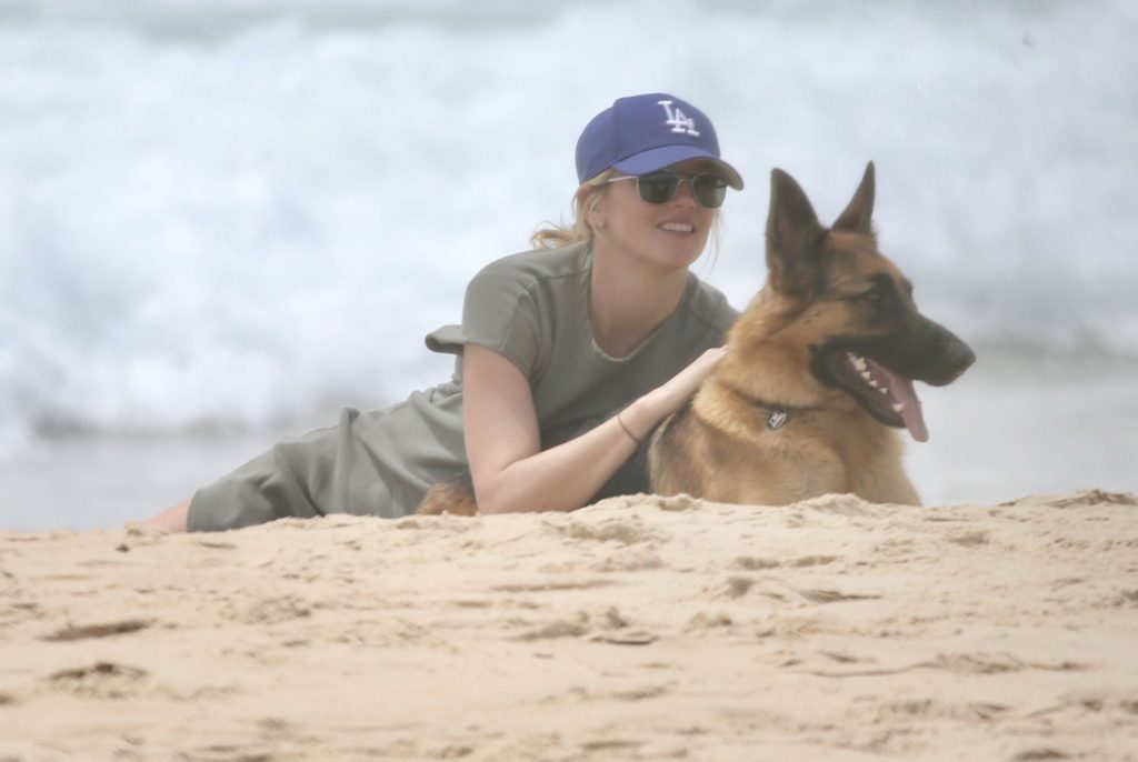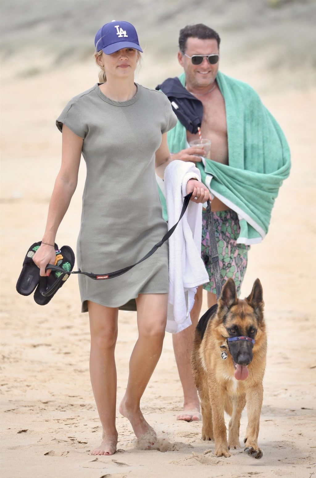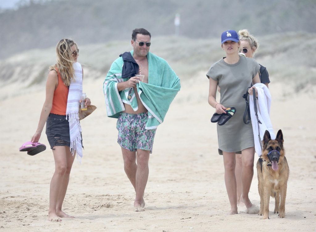 Karl Stefanovic y Jasmine Yarbrough disfrutan de un día en la playa en Noosa, 30/12/2019. Yasmine mostraba su barriga de embarazada con un vestido verde ajustado, Karl parece haber perdido su enorme barriga.