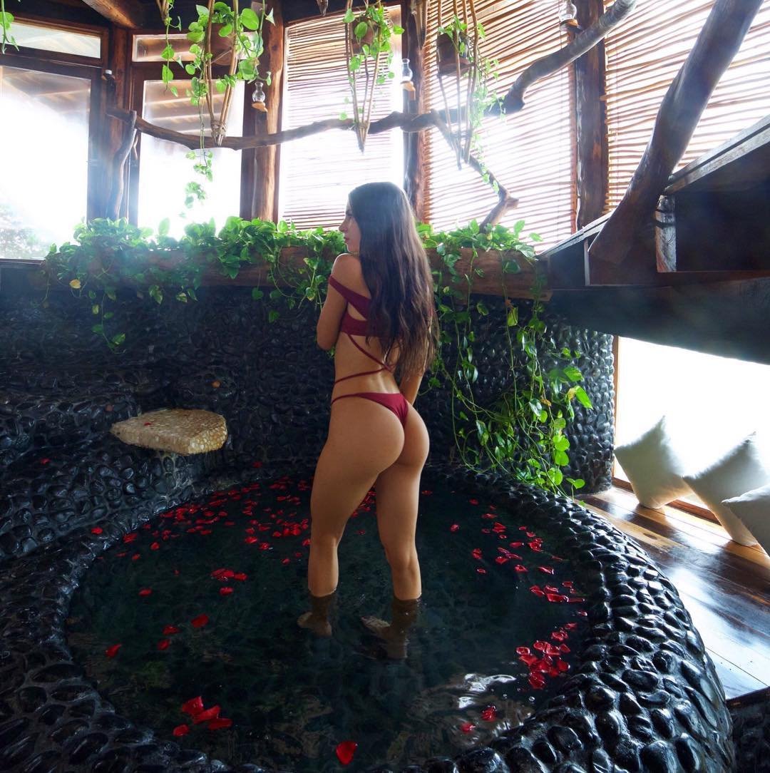 Jen Selter es una modelo y entrenadora física estadounidense de 24 años. La chica es muy popular en Internet. Tiene más de 12 millones de seguidores (con más de 200k me gusta por publicación) en Instagram. Jen colabora con marcas conocidas de ropa deportiva y trajes de baño. La morena suele publicar fotos espontáneas, estilo fappening, semi-desnuda, cubierta con desnudos, mostrando su cuerpo perfecto, especialmente su trasero.