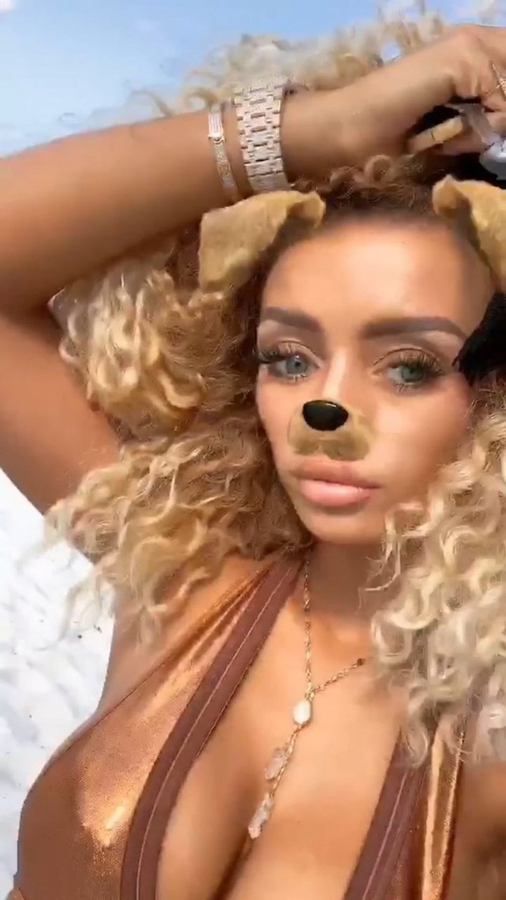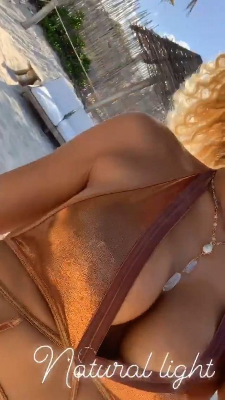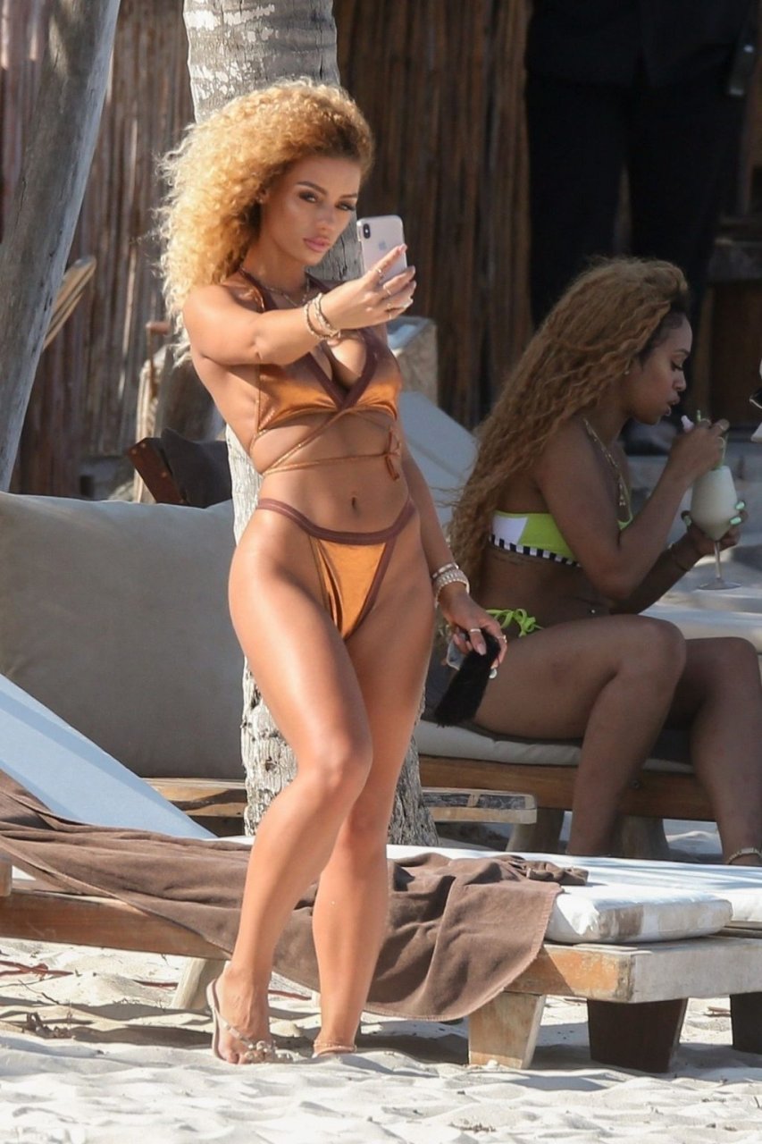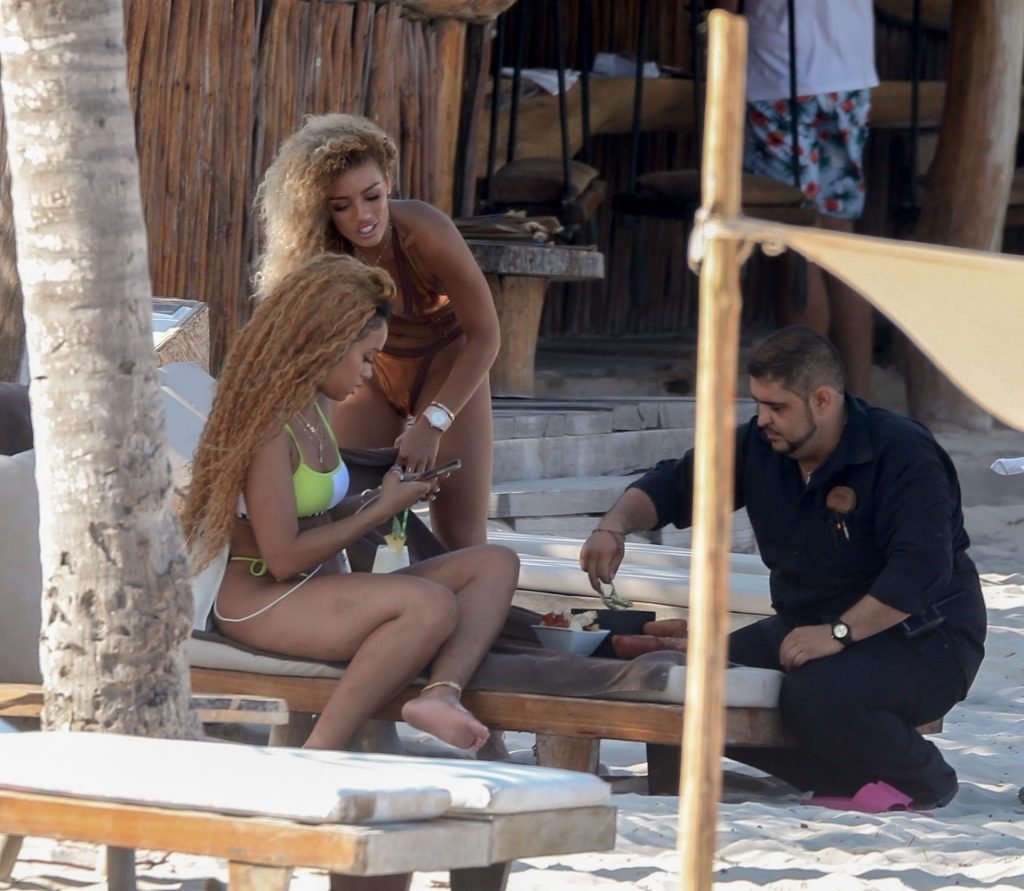 Jena Frumes se toma selfies mientras se relaja con Jilly Anais en la playa de Tulum, México, 01/05/2019. Las Youtubers muestran sus cuerpos en bikini mientras disfrutan de bebidas al sol durante sus vacaciones juntos.