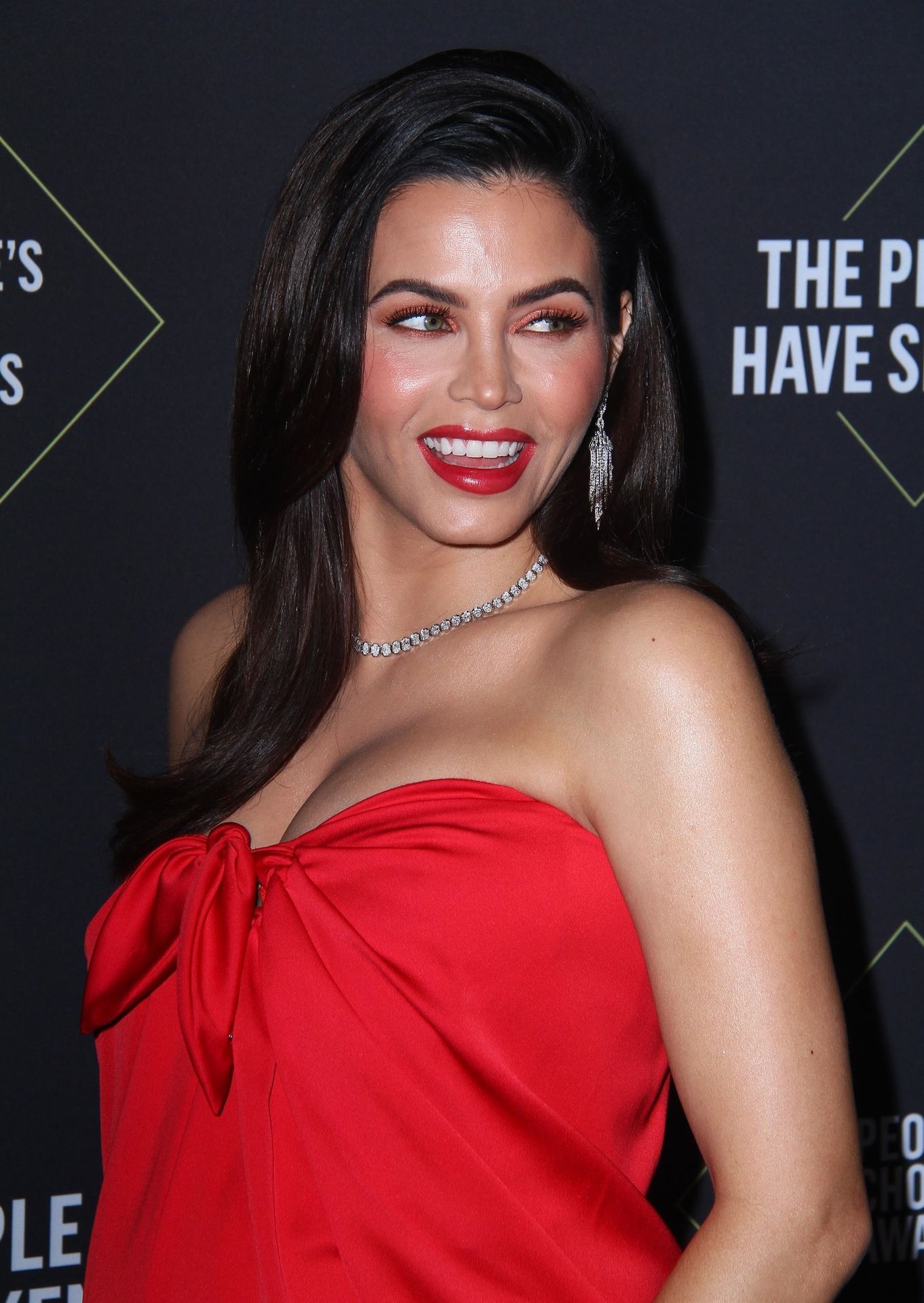 Jenna Dewan embarazada posa con un vestido rojo en la sala de prensa durante los Premios People’s Choice 2019 de E! en Barker Hangar en Santa Mónica, 10/11/2019.