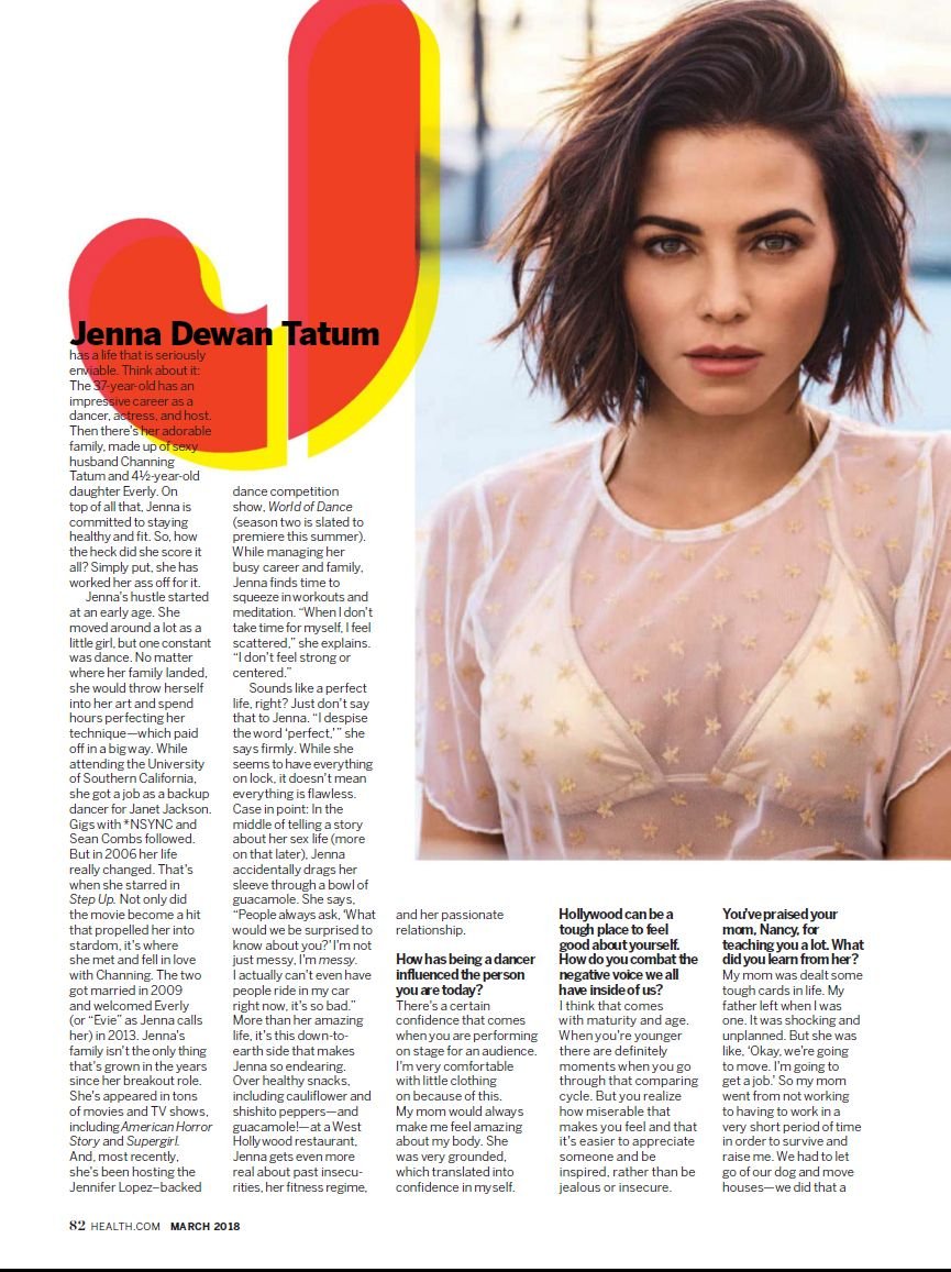 Mira las fotos de Jenna Dewan-Tatum por Jeff Lipsky para Health US (marzo de 2018) + video BTS y gifs. Jenna Dewan Tatum es una actriz, empresaria y bailarina estadounidense. Edad – 37.