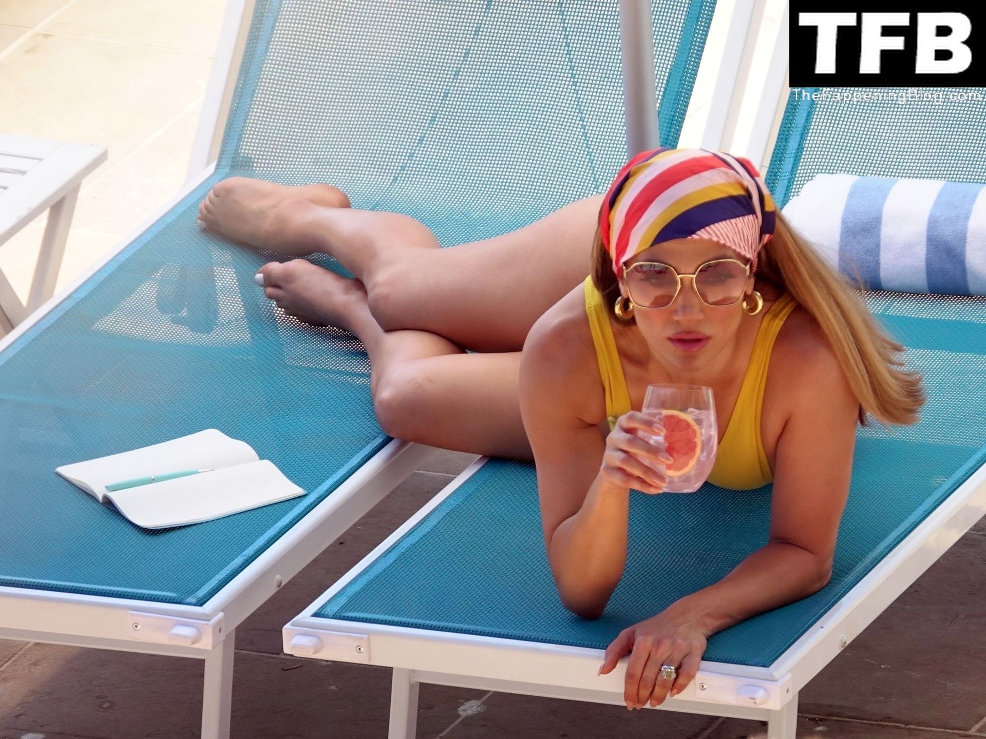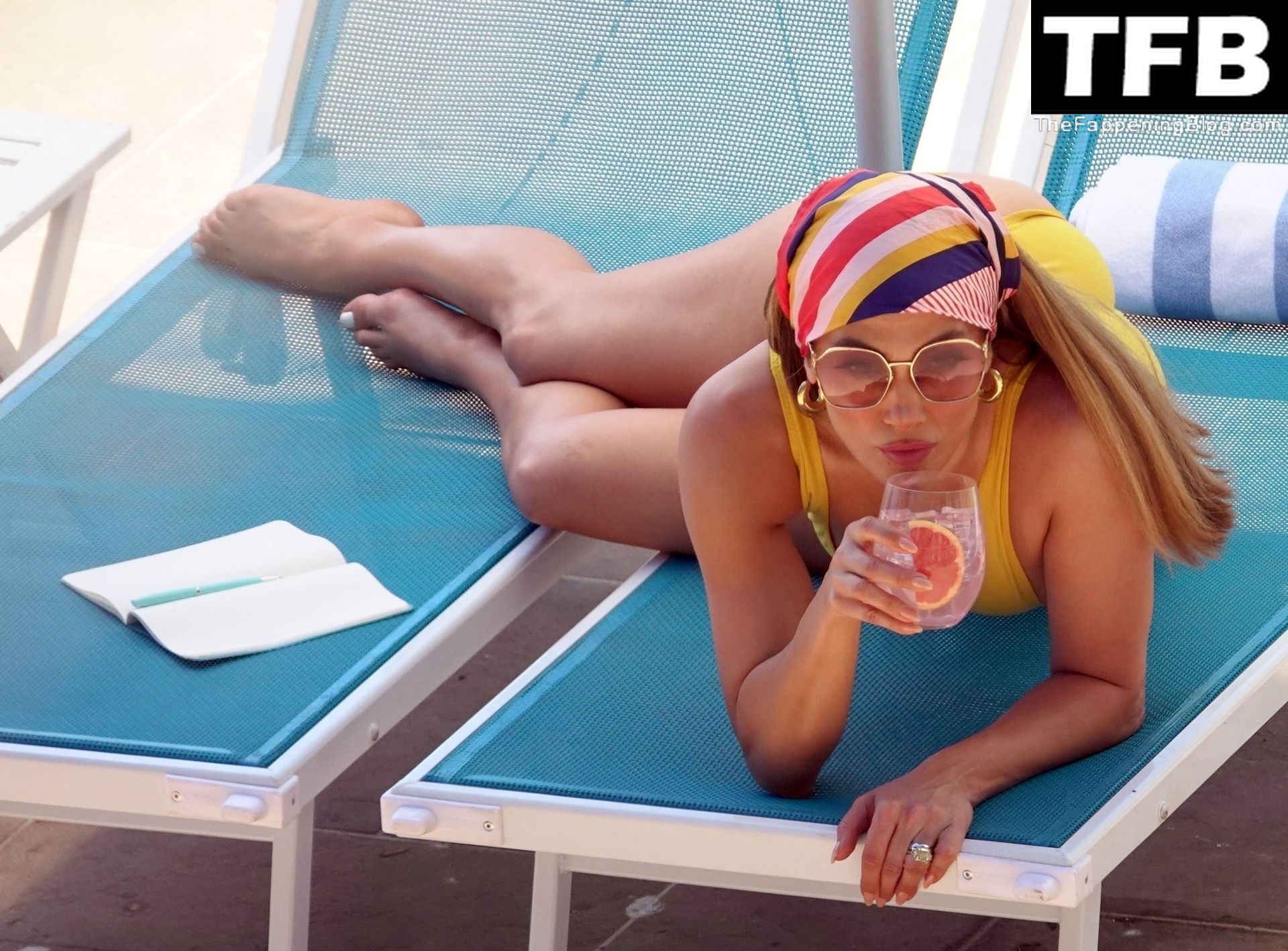 Jennifer se casó con su amado Ben Affleck en una ceremonia íntima en Las Vegas y aquí vemos a la mujer de 53 años seguir desafiando su edad y acelerando los corazones en su sesión sexy, luciendo su voluptuosa y atractiva figura con un provocativo traje de baño amarillo.