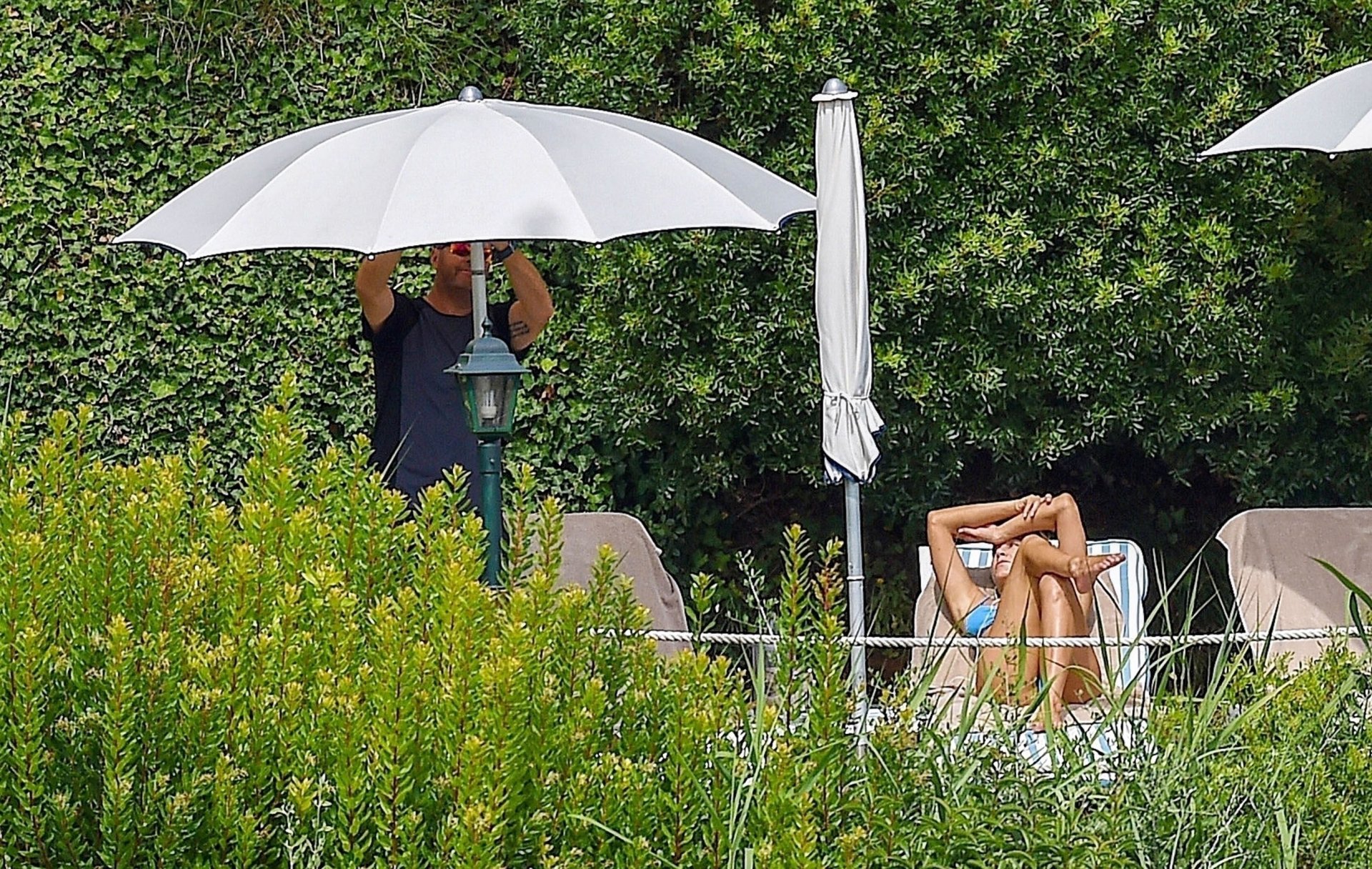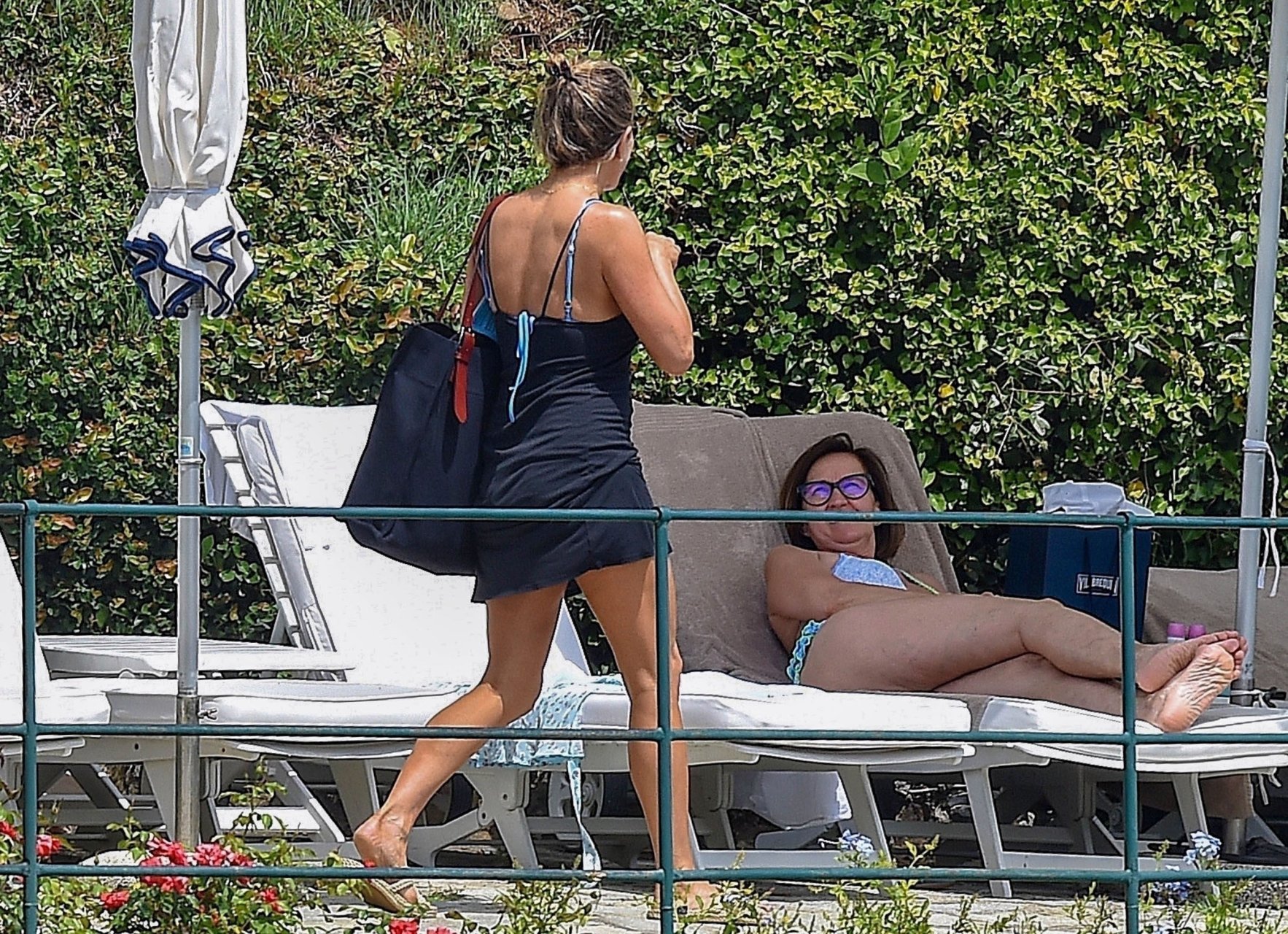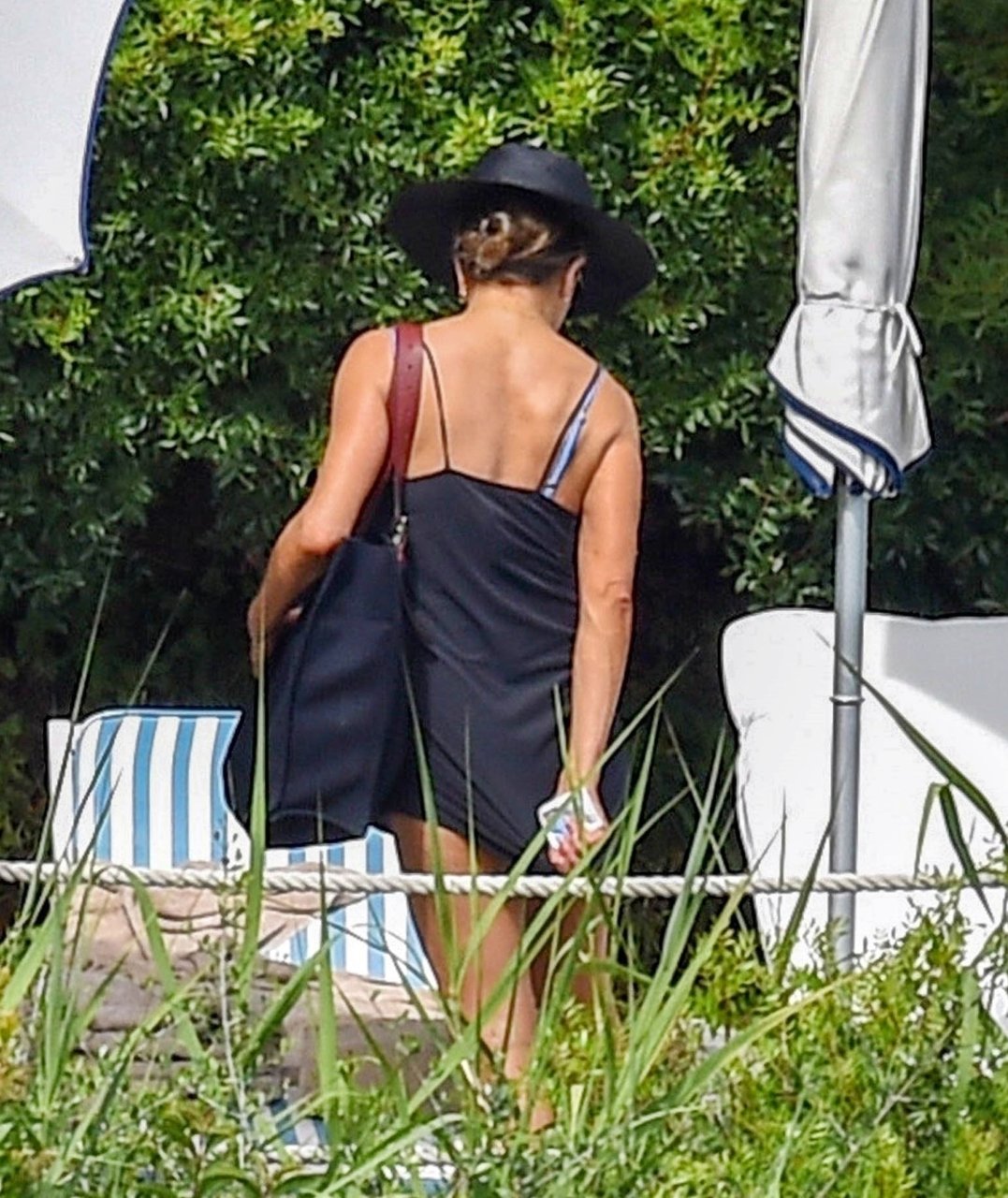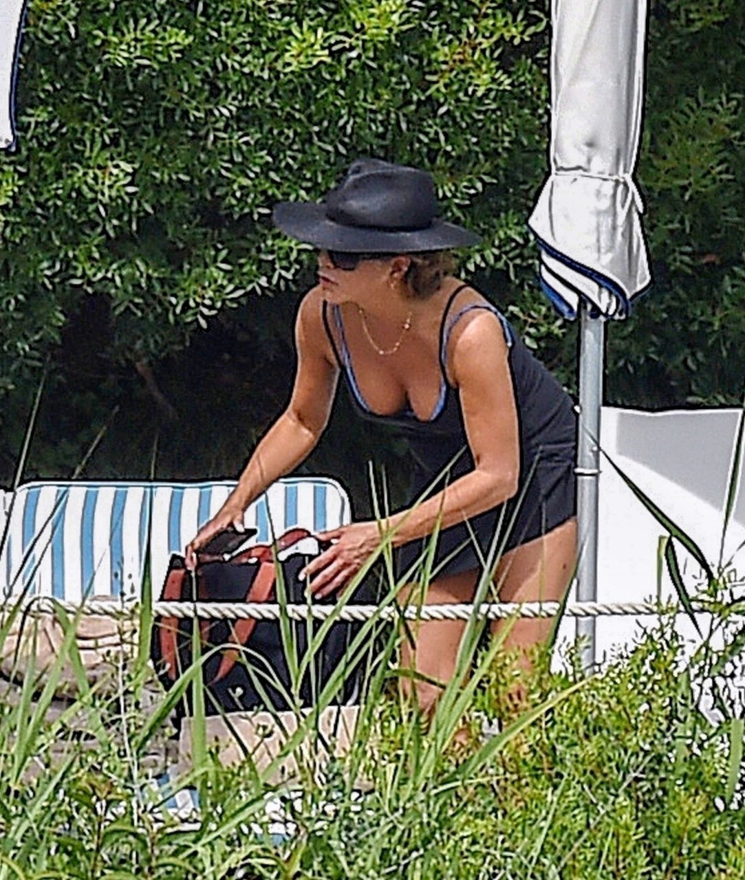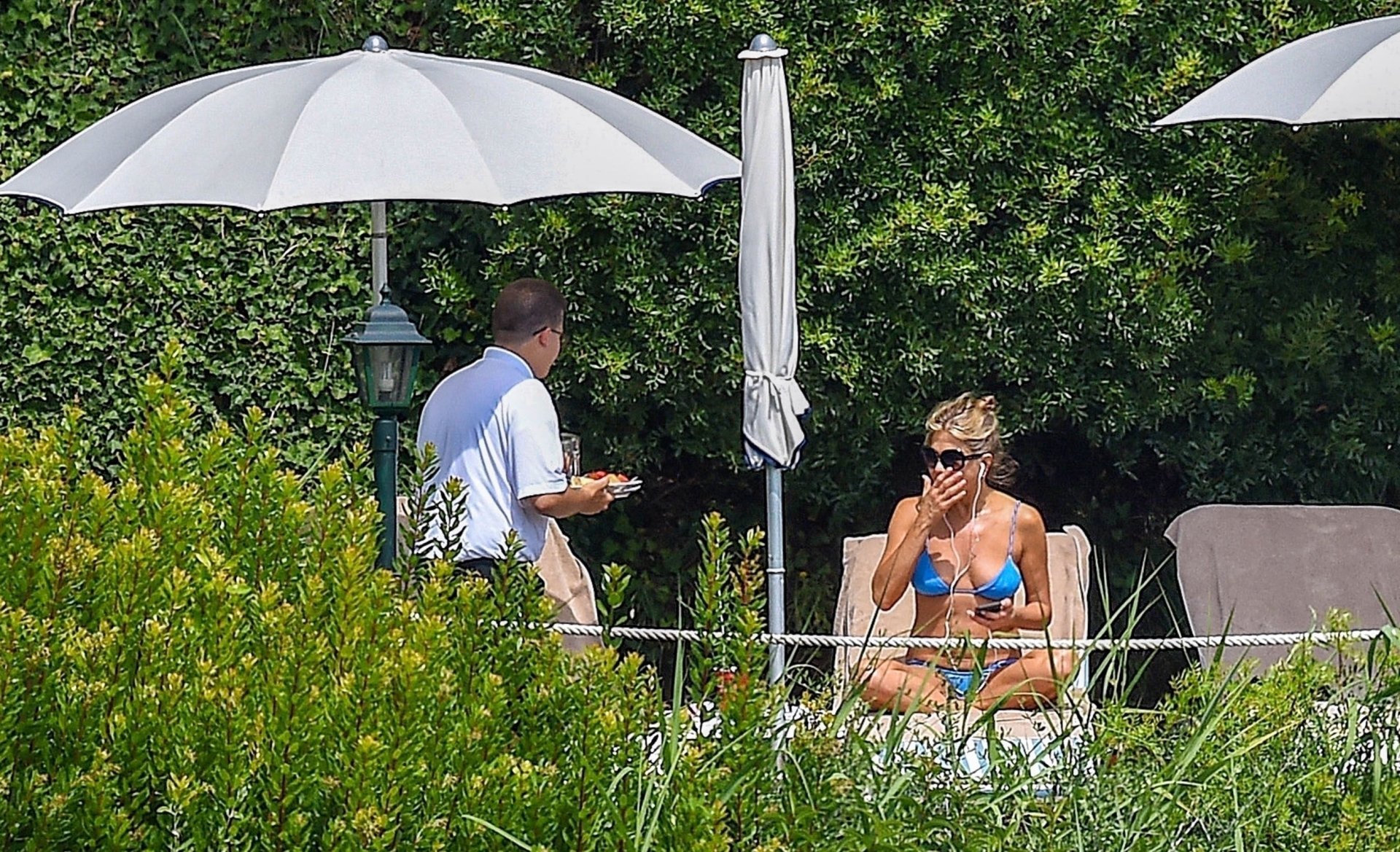 La actriz estadounidense Jennifer Aniston (49) muestra su cuerpo tonificado en bikini mientras es fotografiada relajándose junto a la piscina en Portofino antes de que comiencen las filmaciones de su nueva película “Murder Mystery”, 22/07/2018.