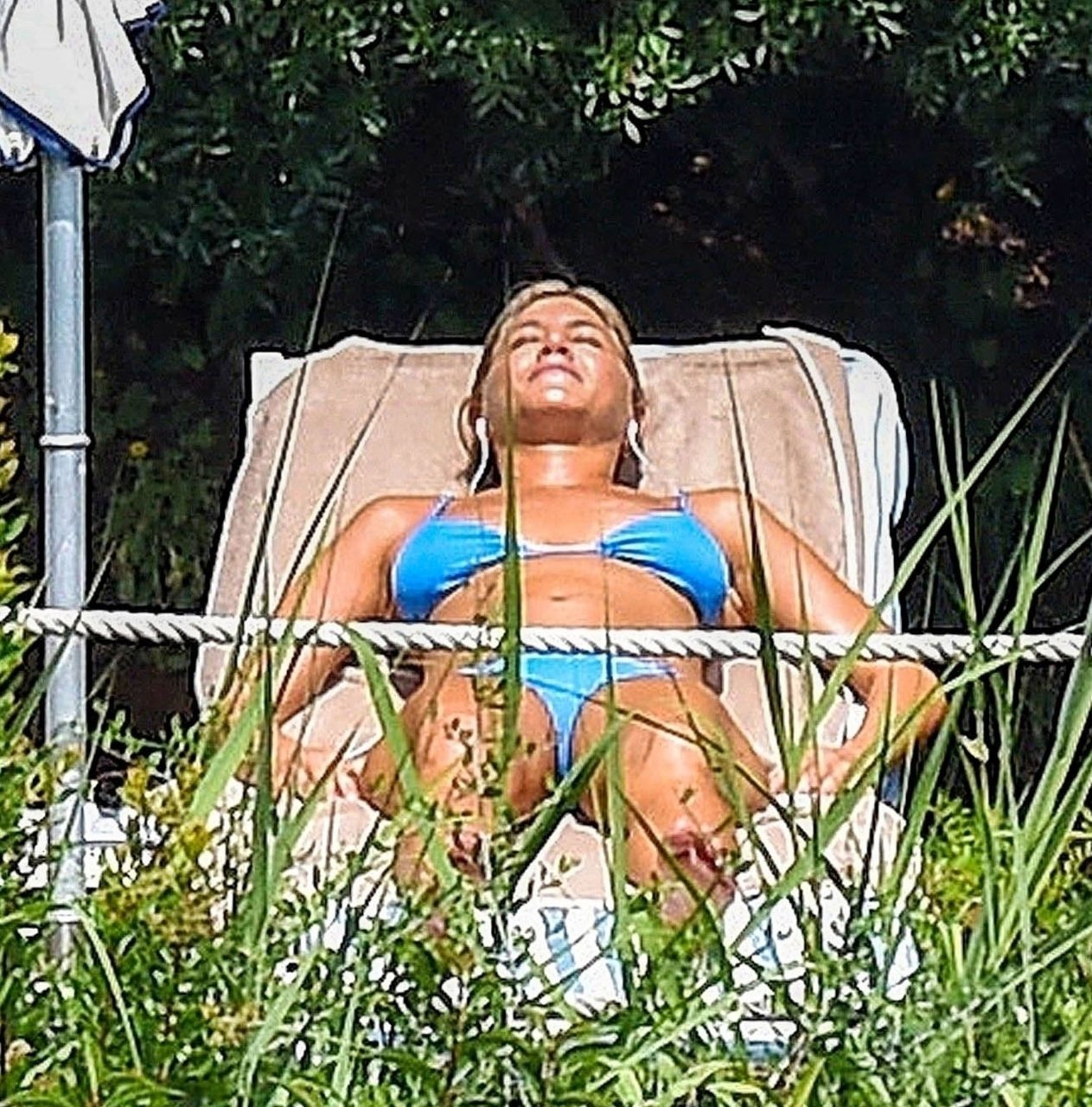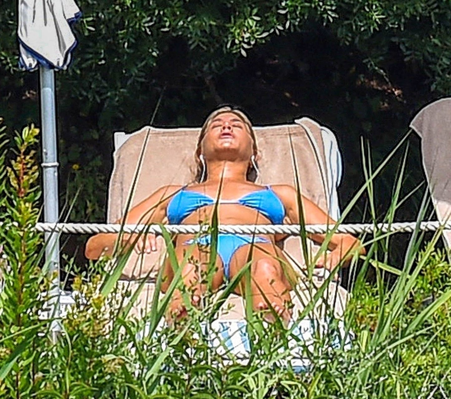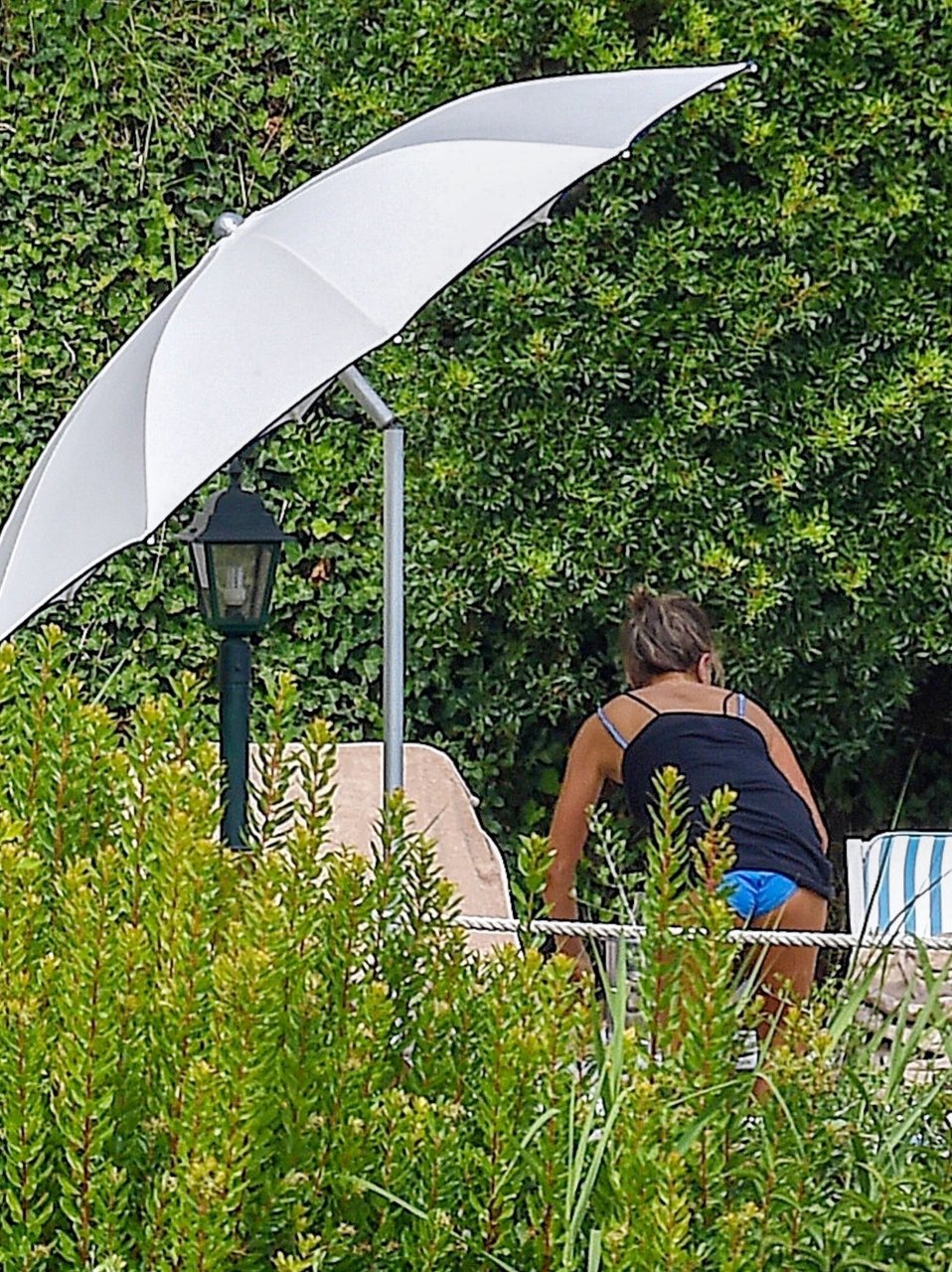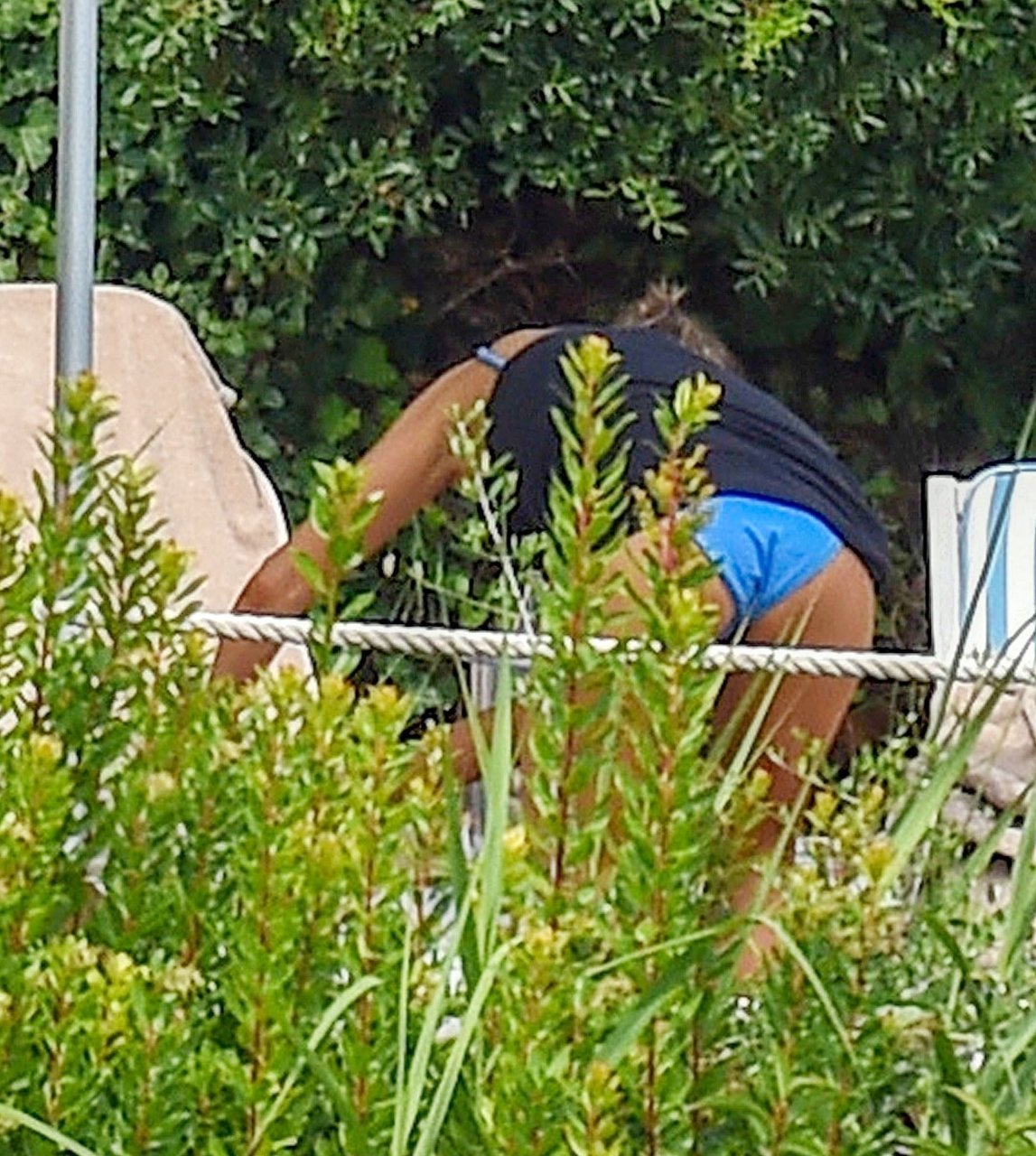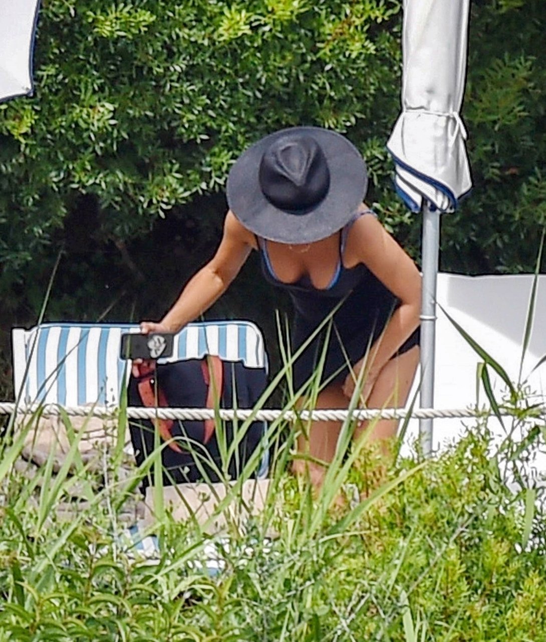 La actriz estadounidense Jennifer Aniston (49) muestra su cuerpo tonificado en bikini mientras es fotografiada relajándose junto a la piscina en Portofino antes de que comiencen las filmaciones de su nueva película “Murder Mystery”, 22/07/2018.