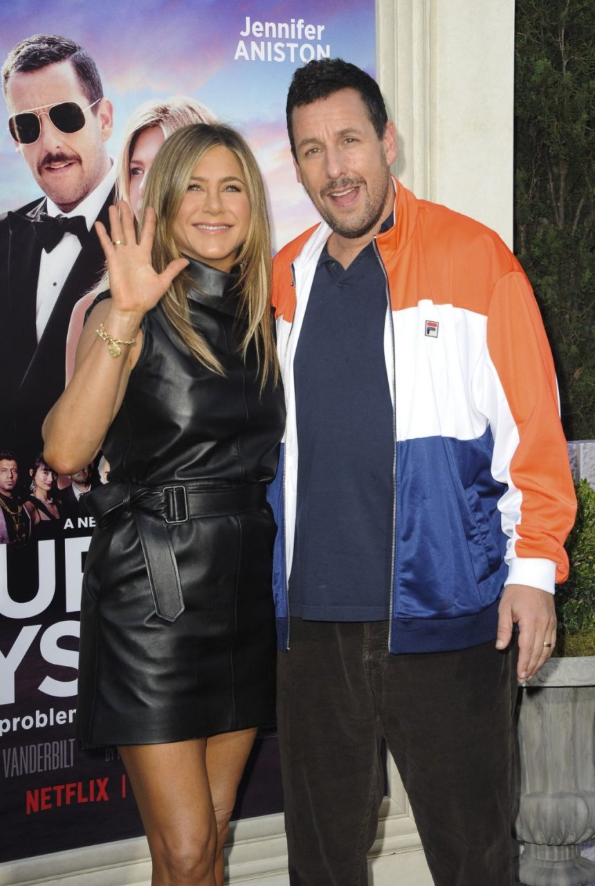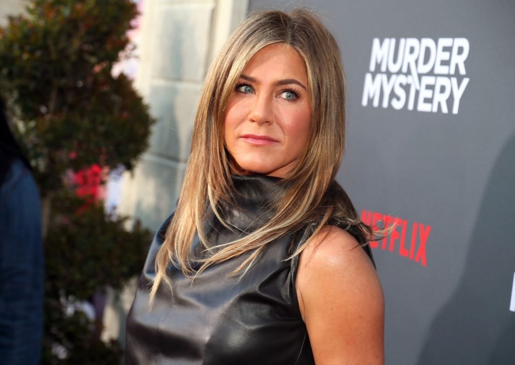 Actriz Jennifer Aniston muestra sus sexy piernas y curvas en el estreno de Murder Mystery de Netflix en Los Ángeles, celebrado en el Village Theater en Westwood, California, 10/06/2019.