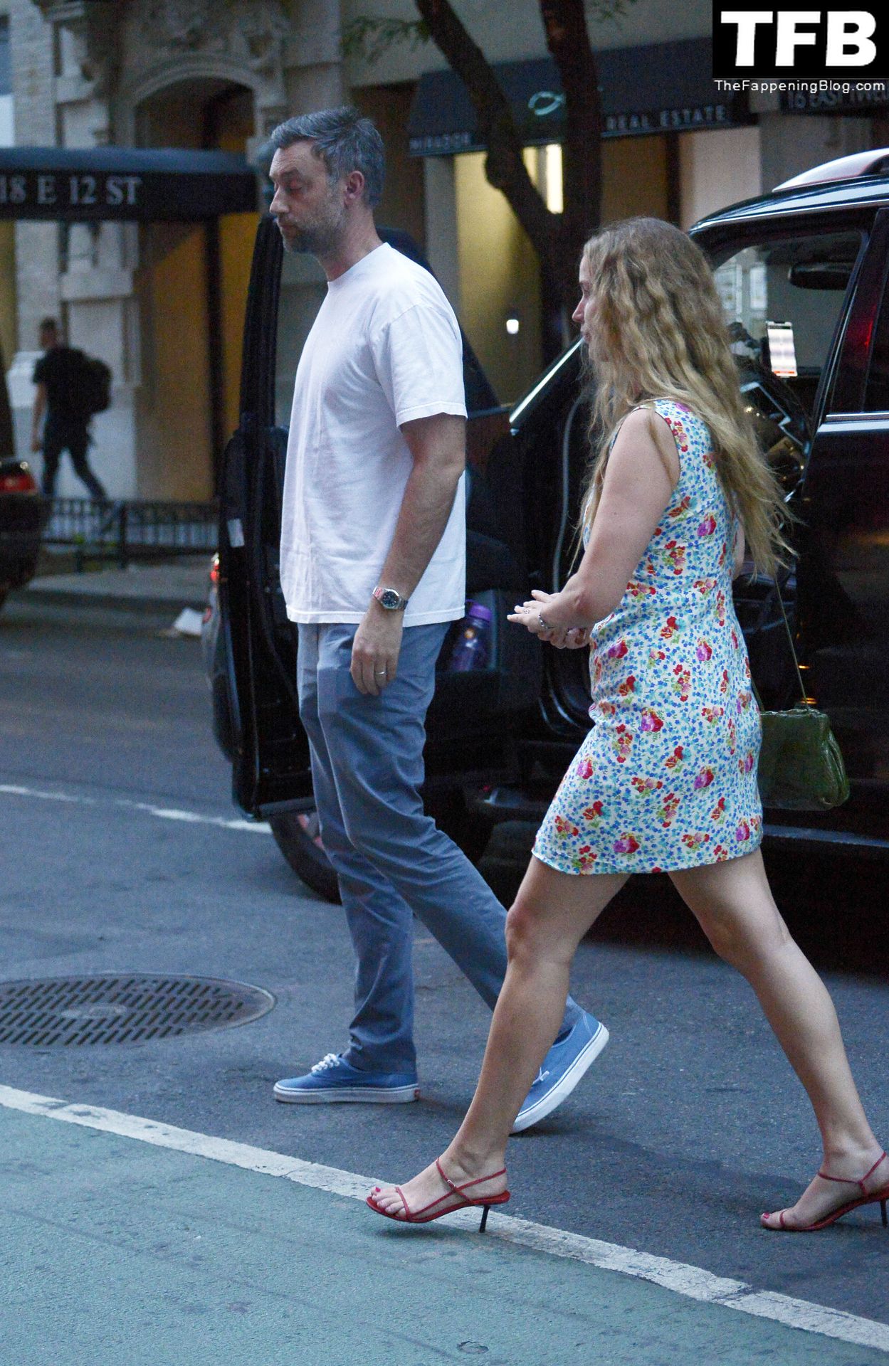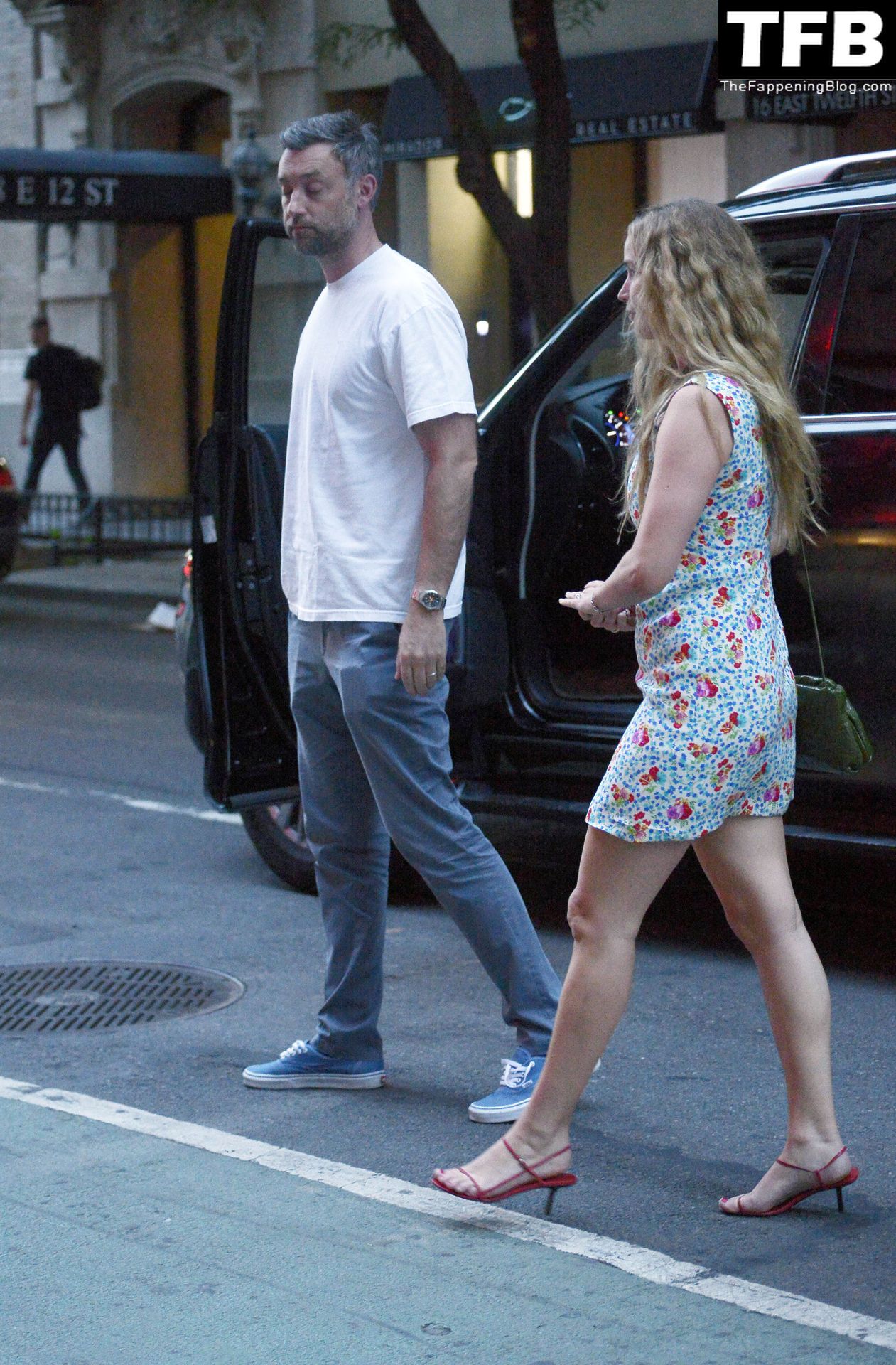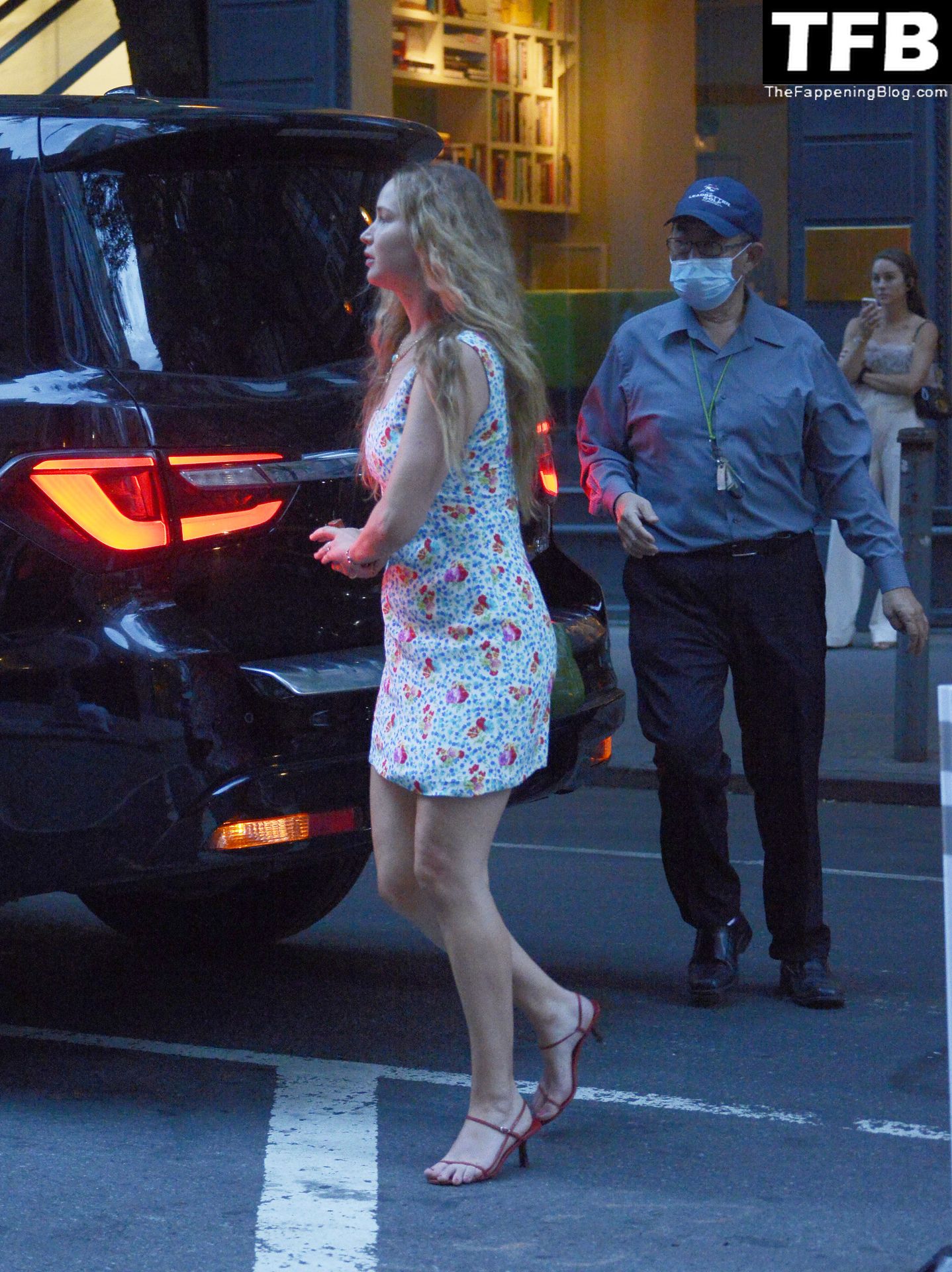 Jennifer Lawrence y Cooke Maroney salen para una noche de cita en la ciudad de Nueva York, 23/08/2022. La actriz de 32 años llevaba un bolso verde y un vestido mini floral combinado con tacones rojos.