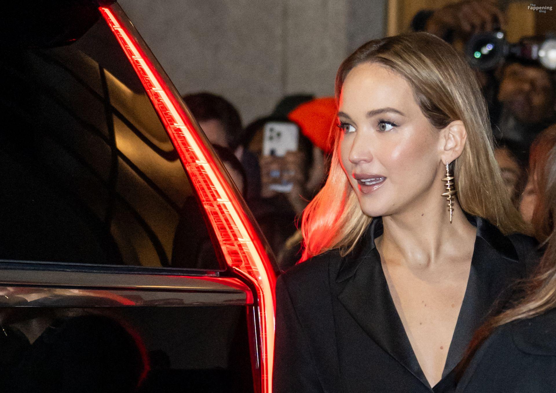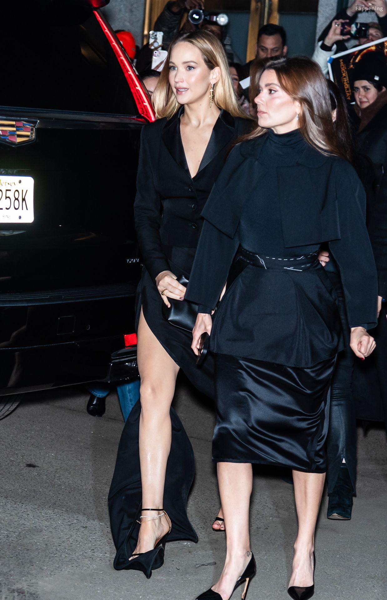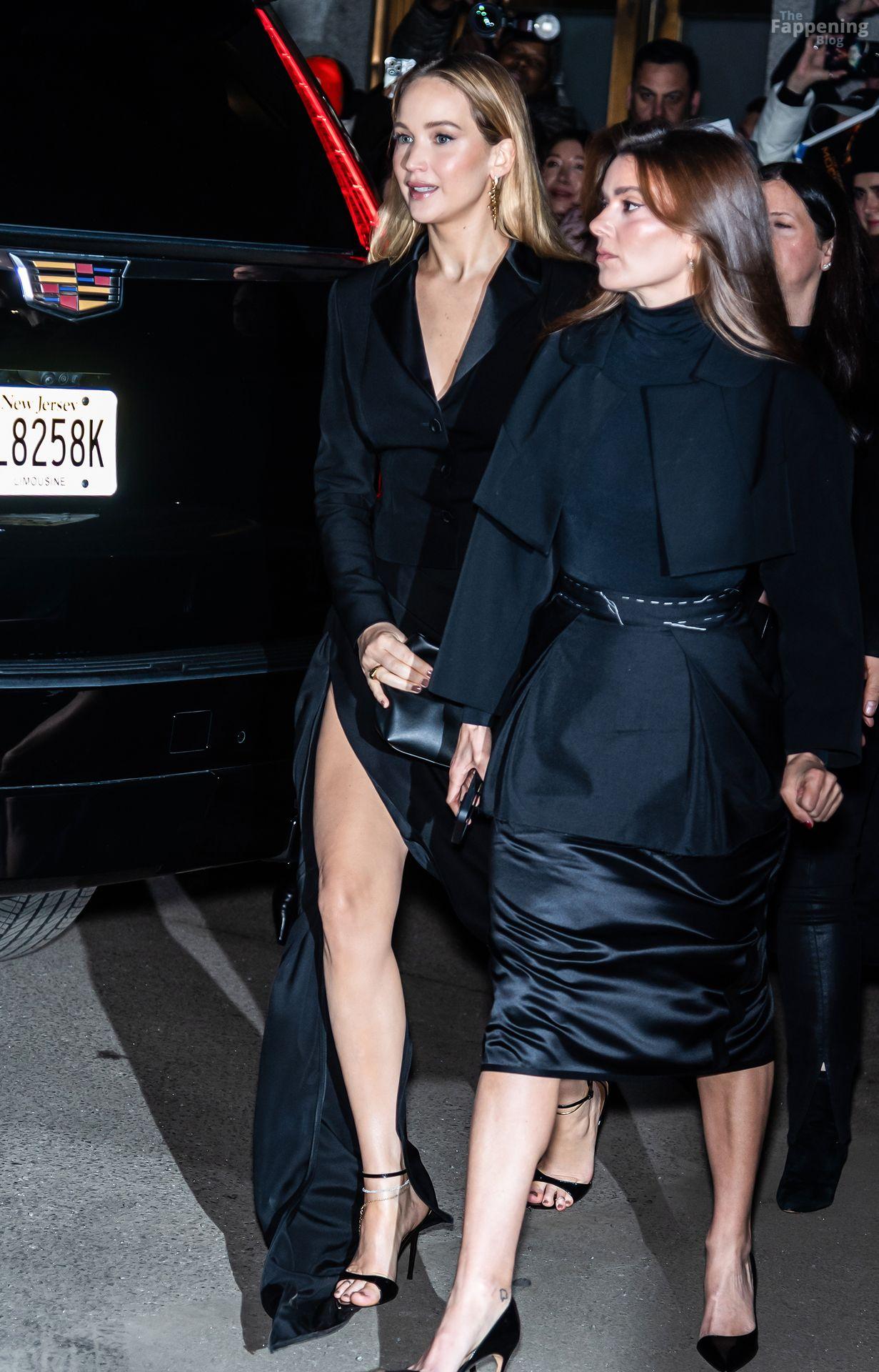La estrella de 35 años del Fappening pisó la alfombra roja con un conjunto de Christian Dior. Su atuendo consistió en un elegante blazer negro con escote pronunciado combinado con una falda con una abertura alta.