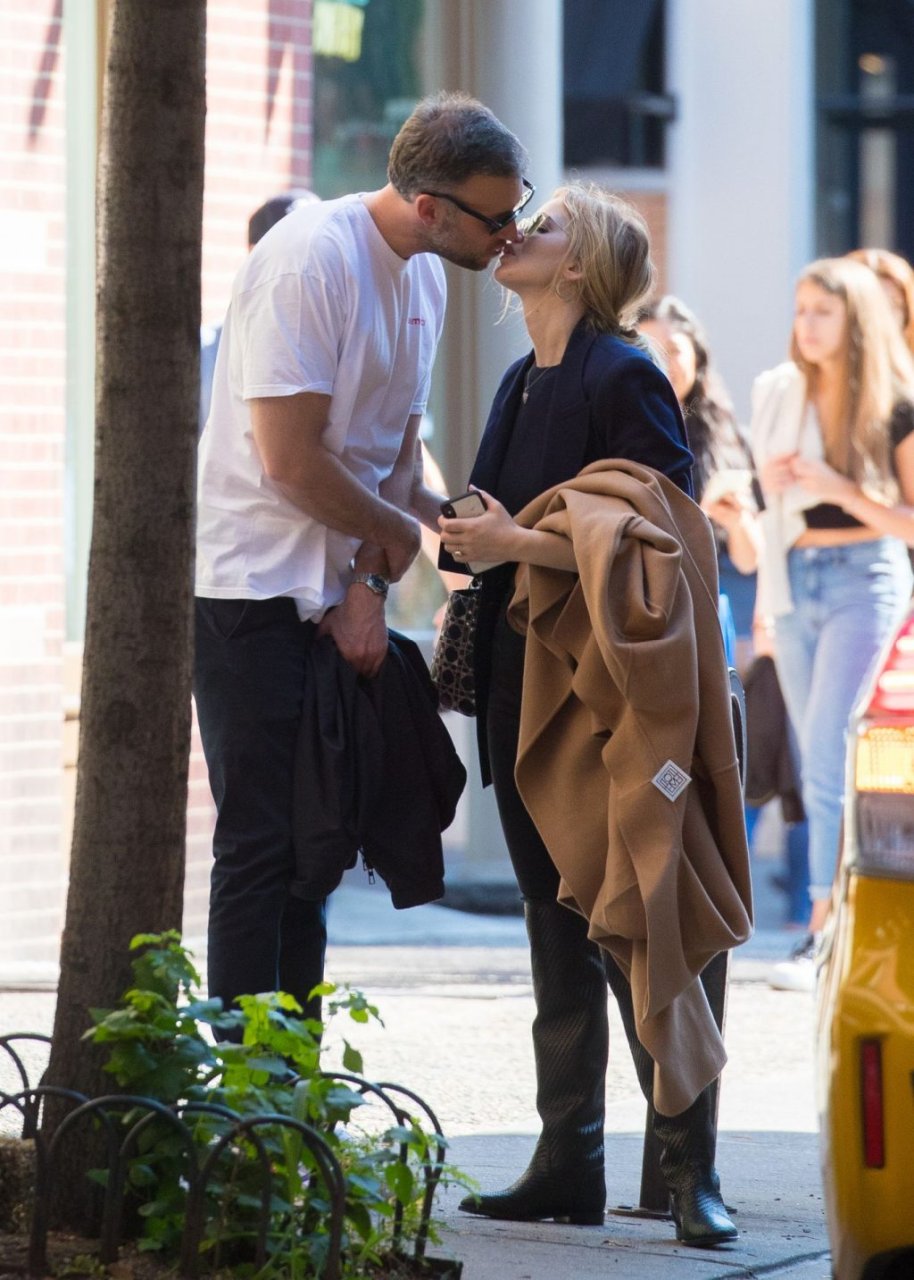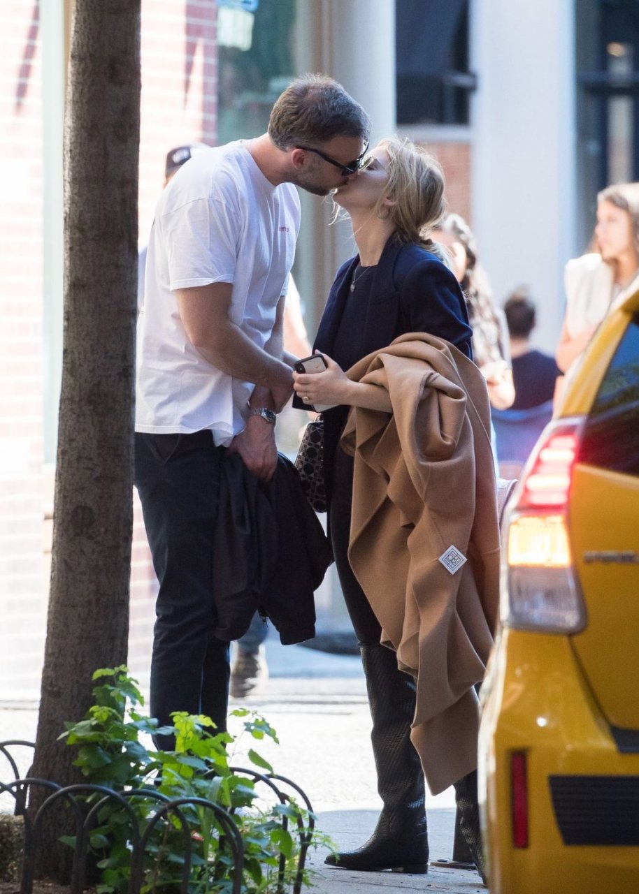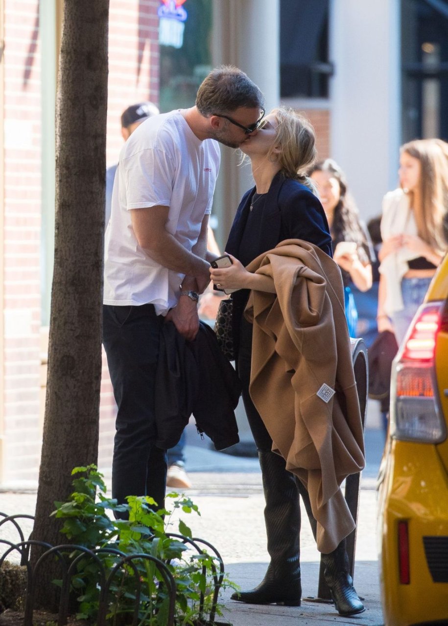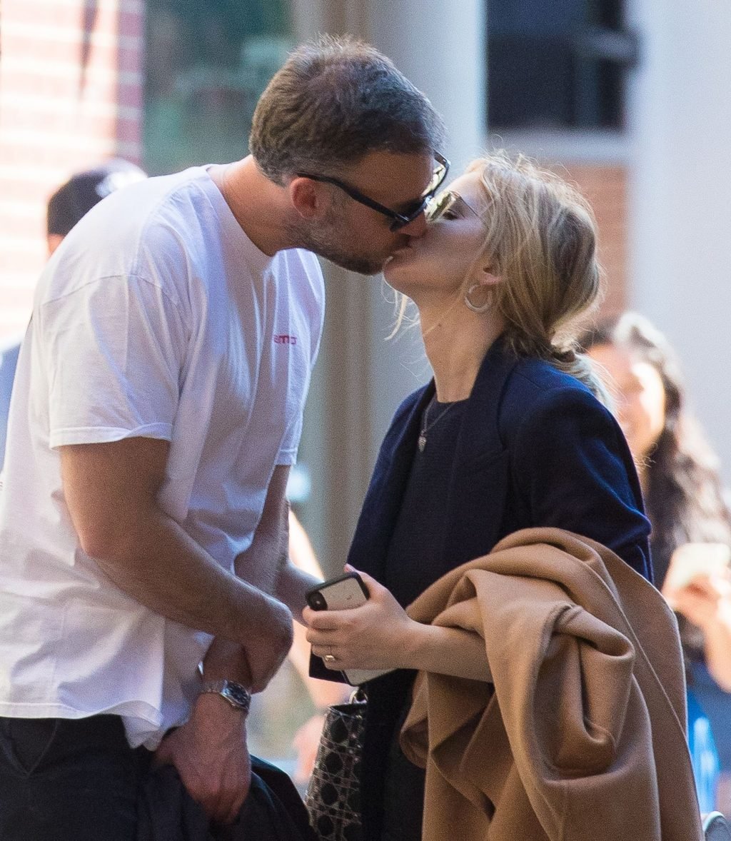 Jennifer Lawrence y Cooke Maroney comparten un largo beso antes de separarse en la ciudad de Nueva York, 14/10/2019. La actriz de 29 años llevaba un bolso Dior, y vestía un blazer negro, crop top, pantalones con cierre de botones y botas hasta la rodilla.