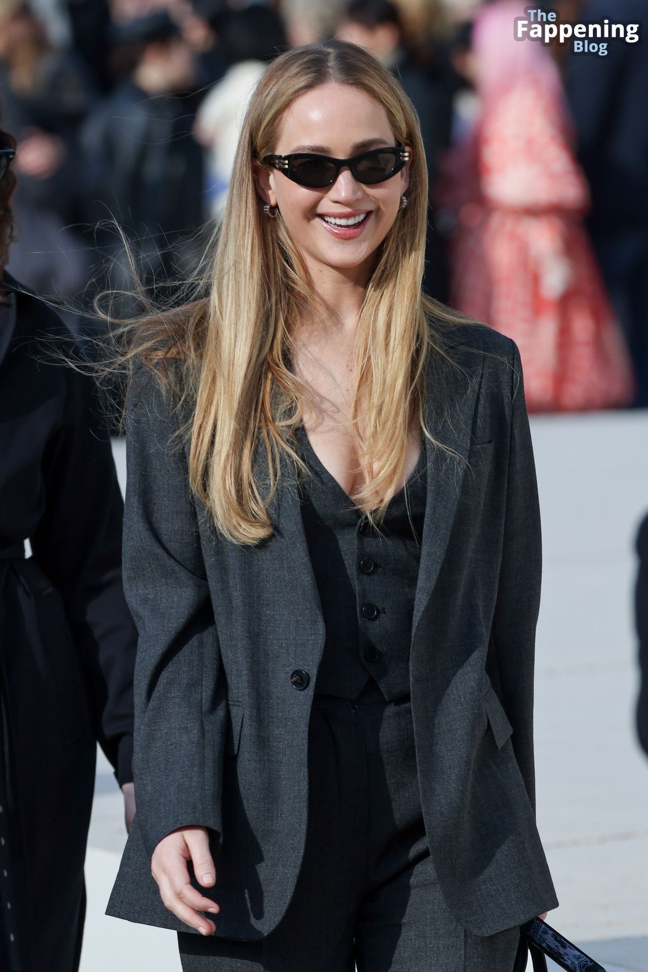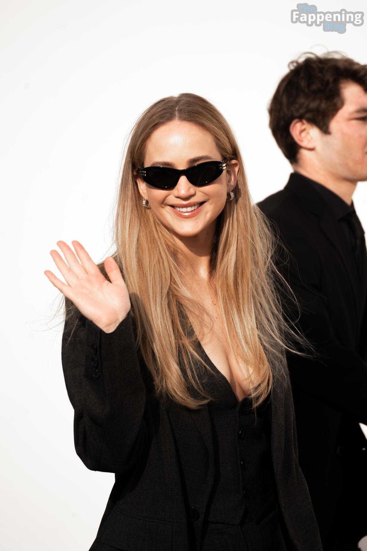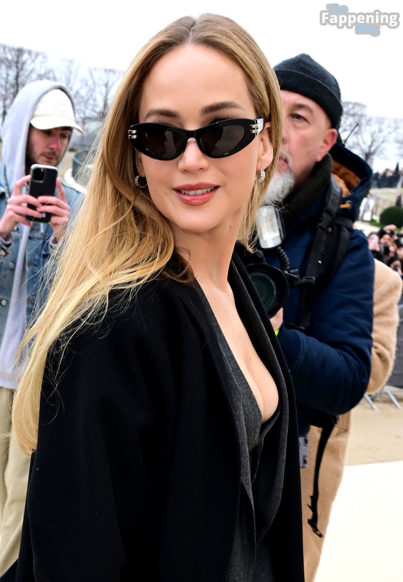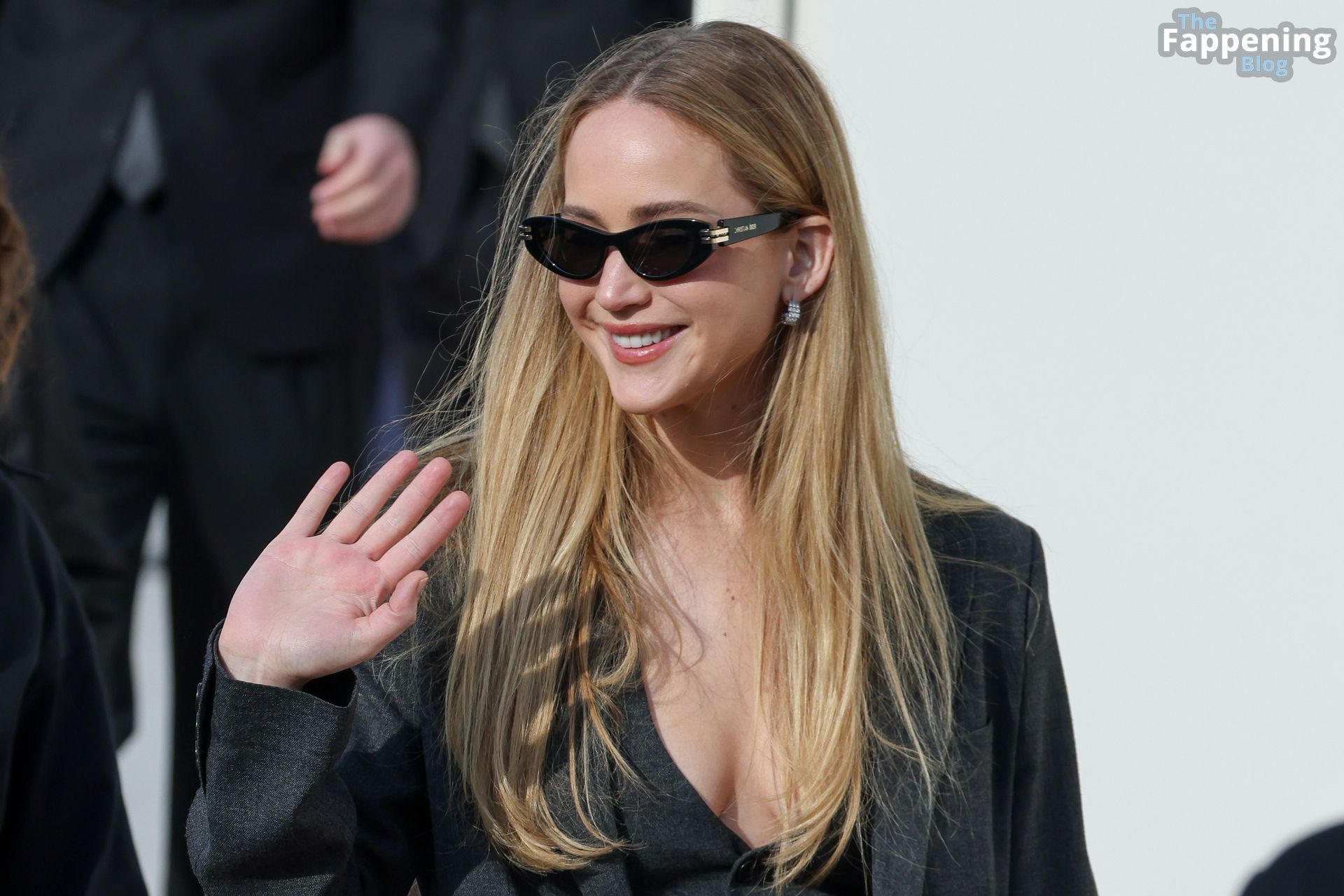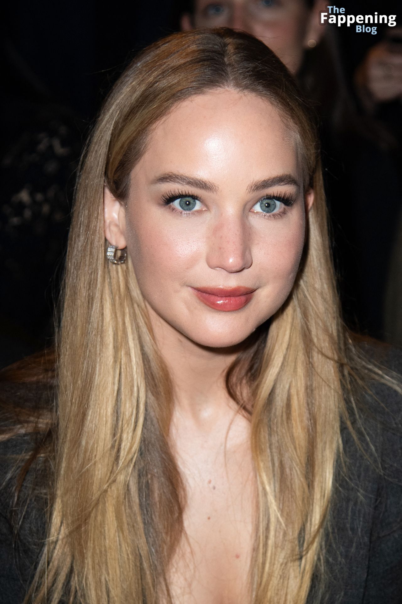 Mira la impresionante belleza de Jennifer Lawrence mientras luce su escote en el desfile de Christian Dior en París.