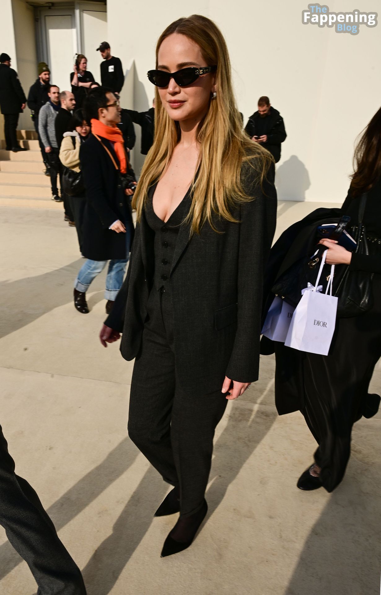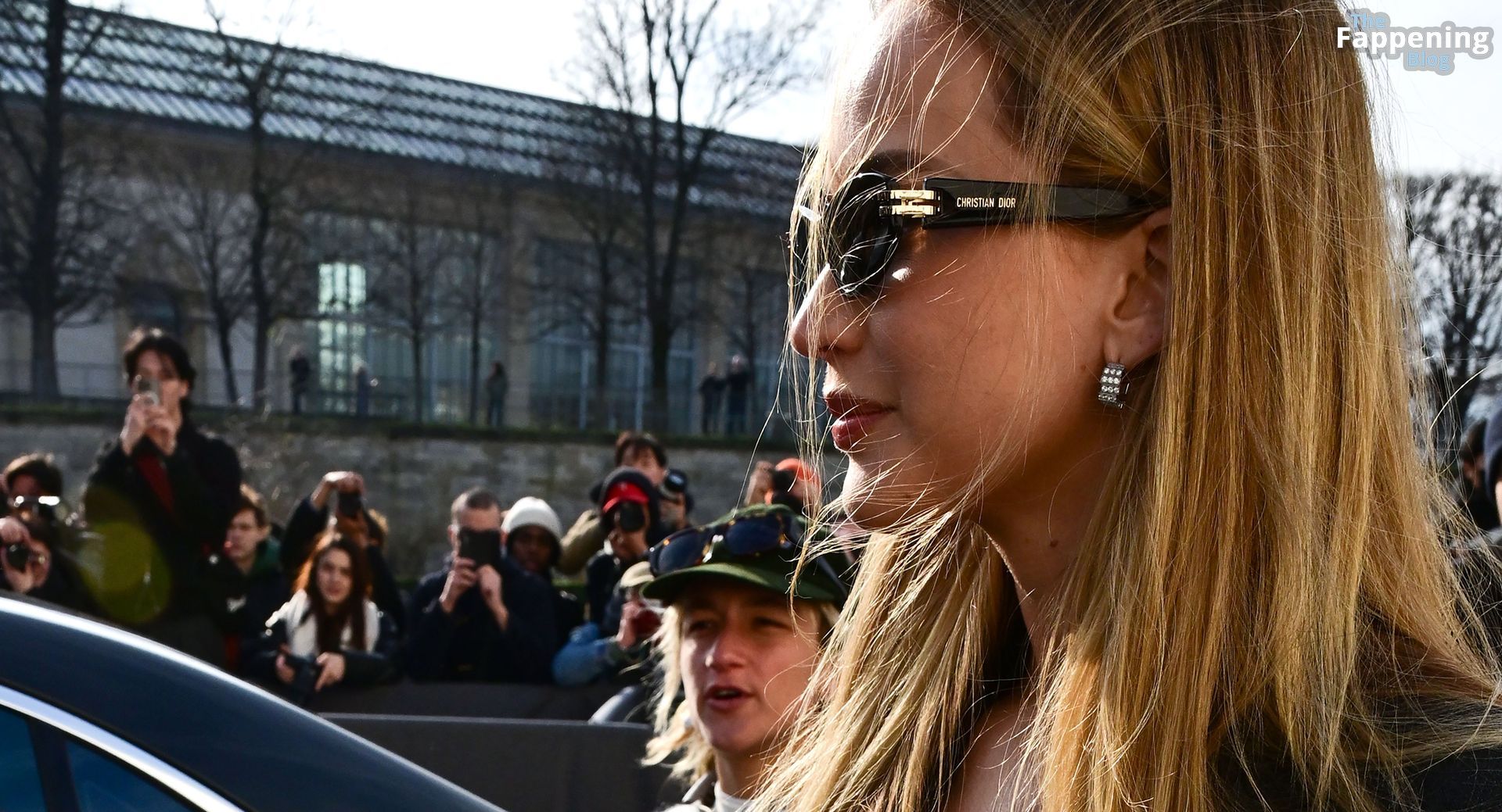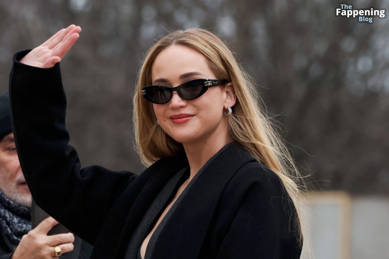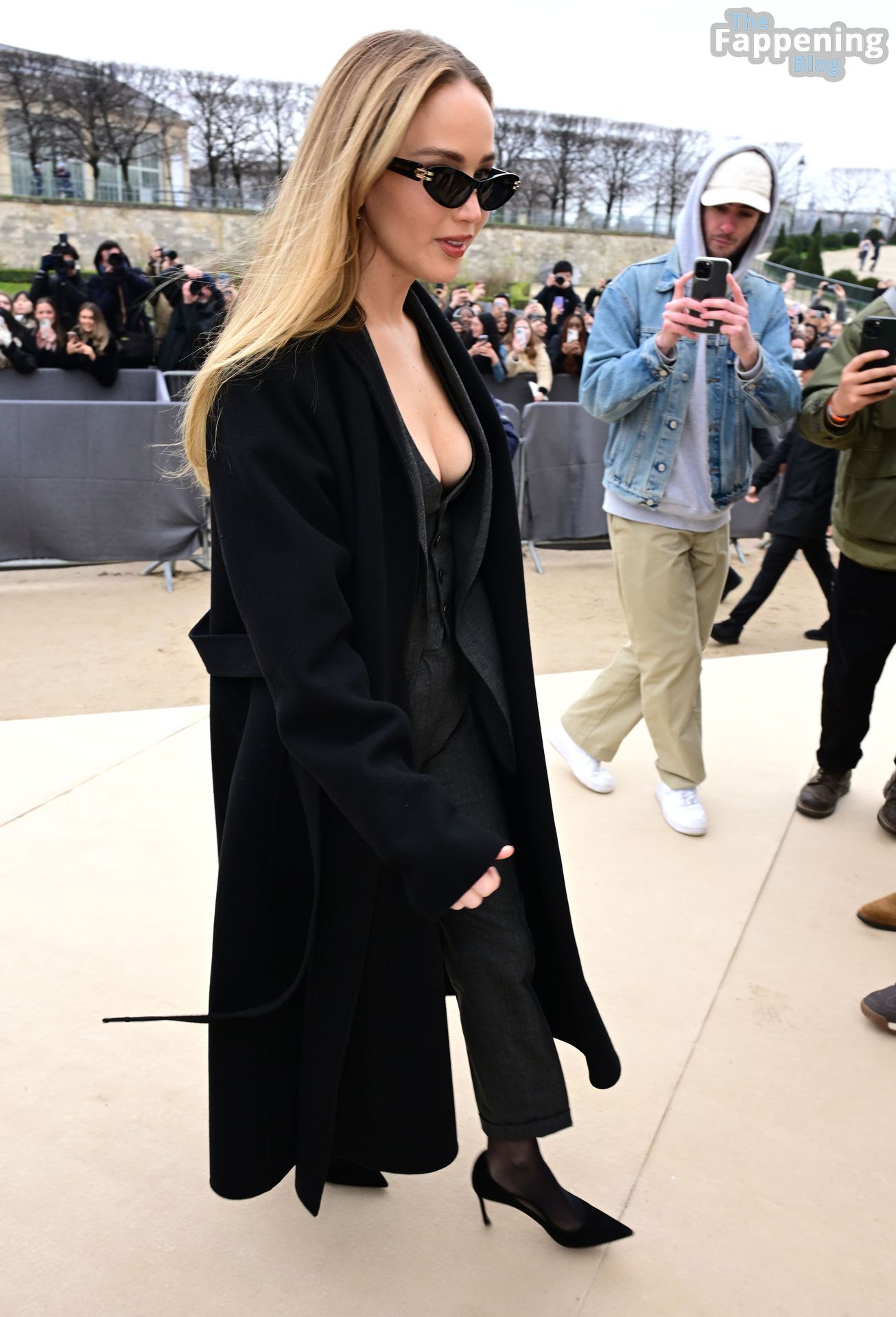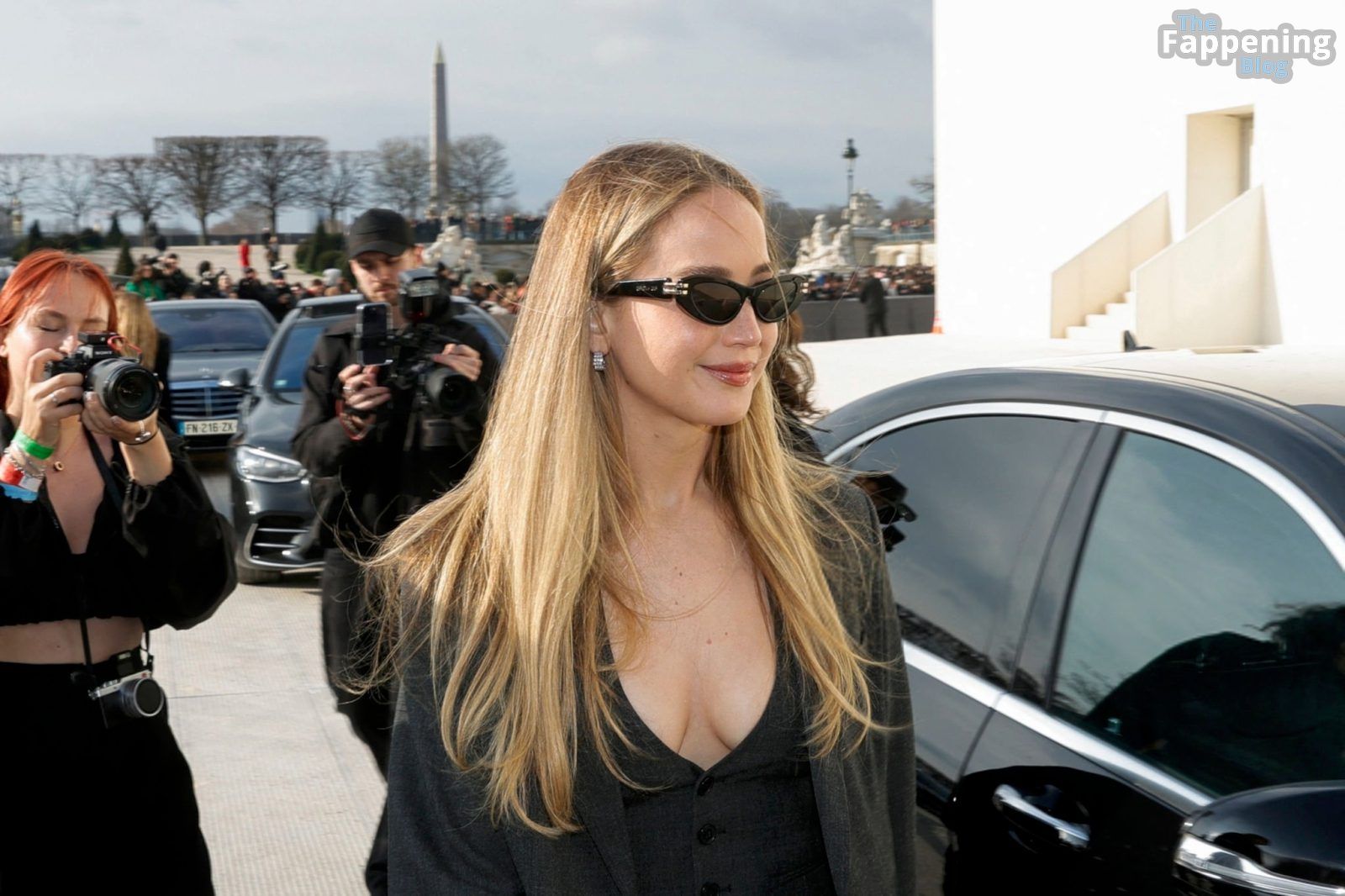 Mira la impresionante belleza de Jennifer Lawrence mientras luce su escote en el desfile de Christian Dior en París.