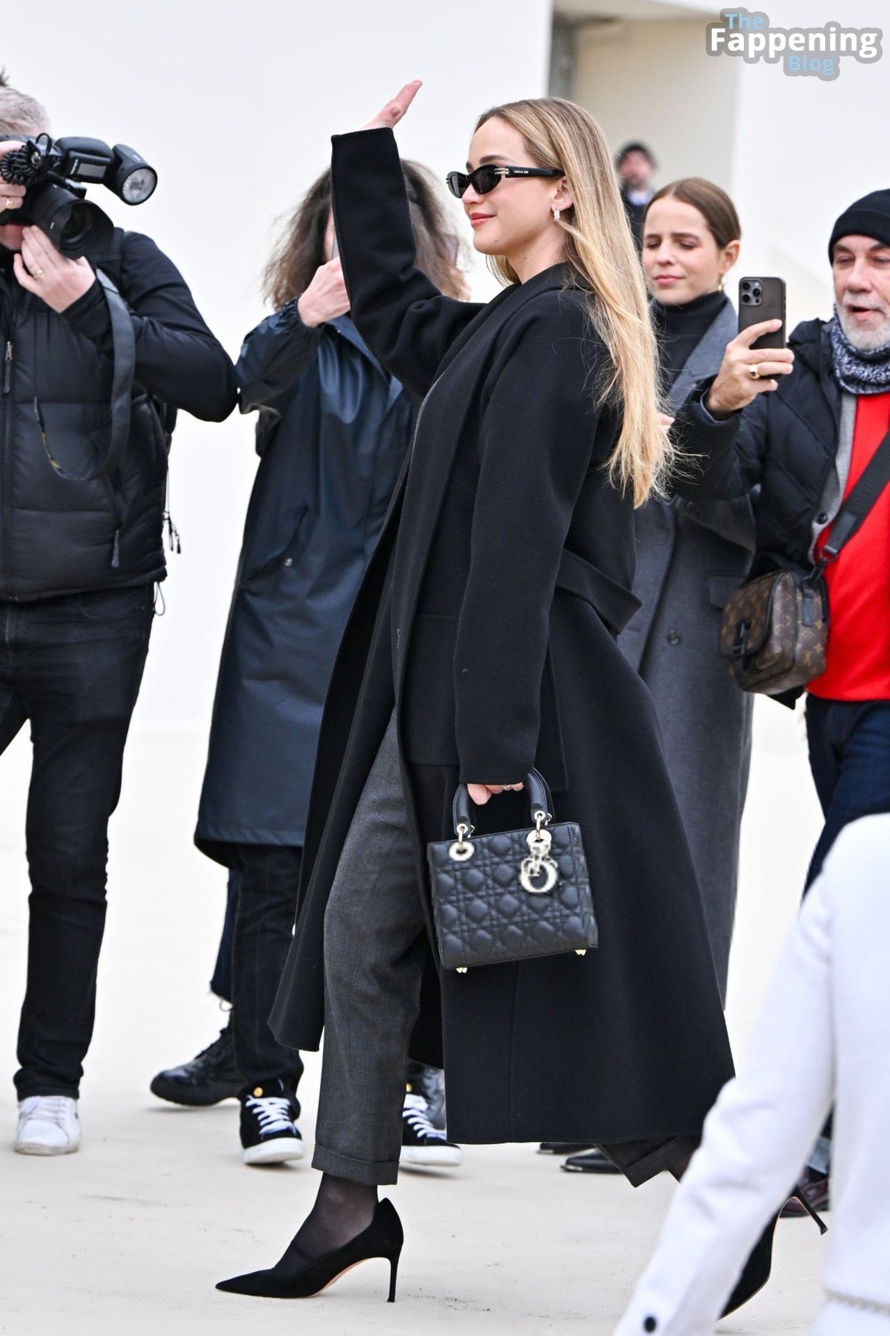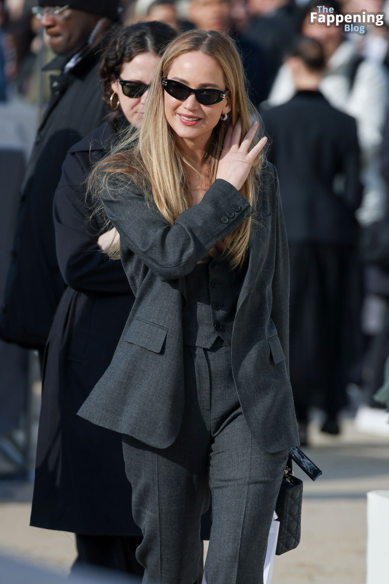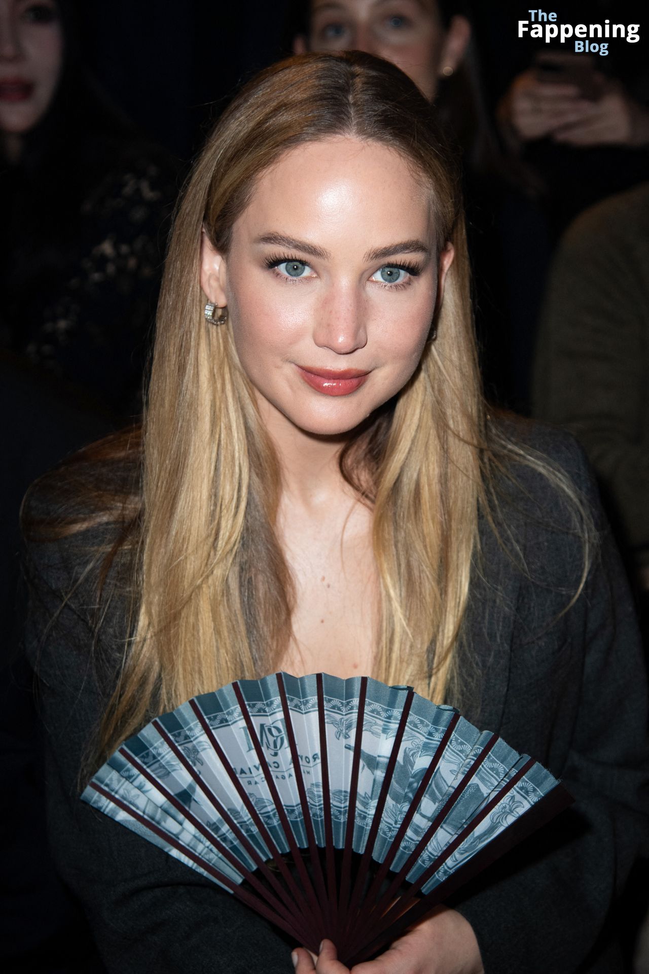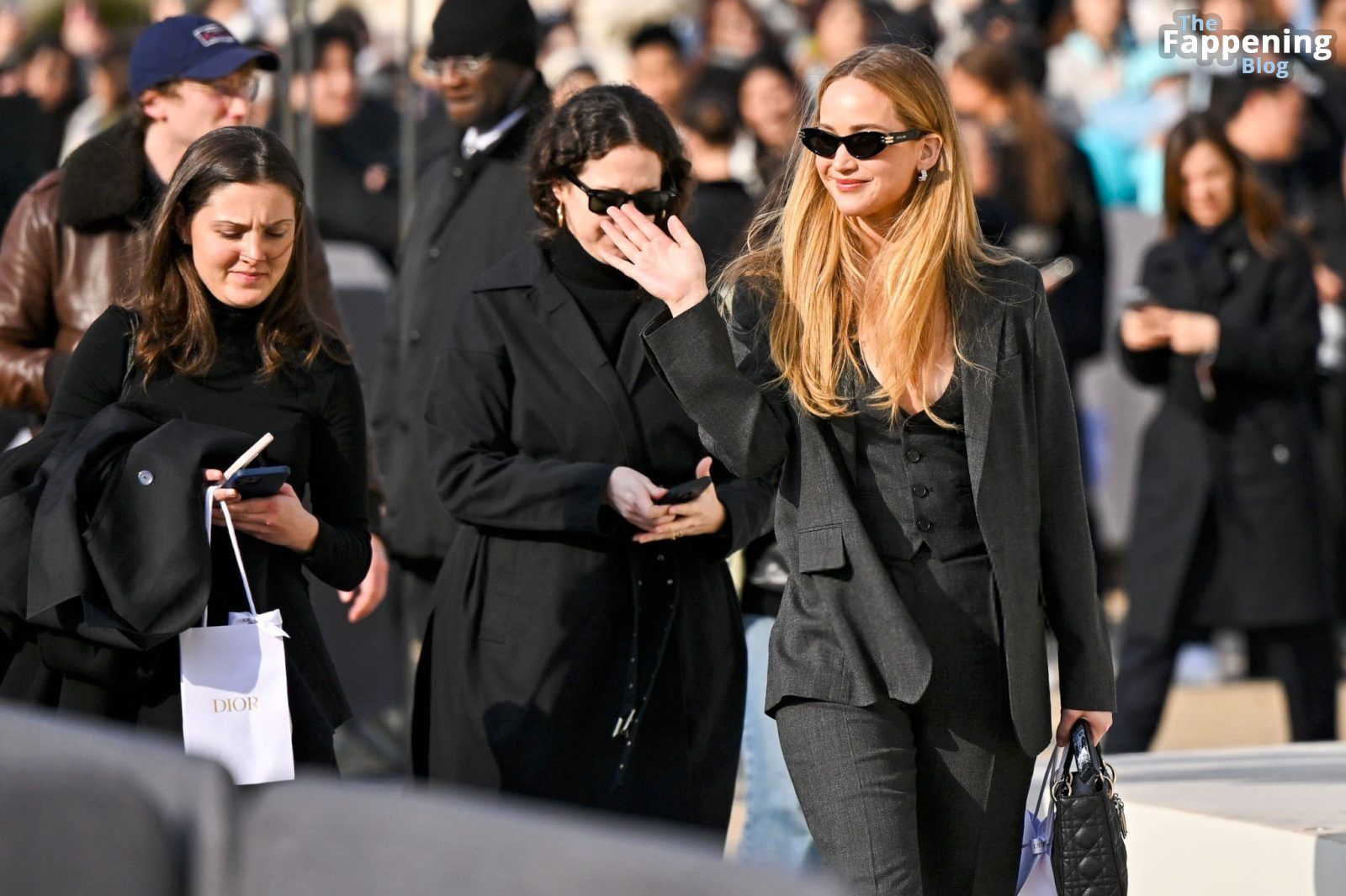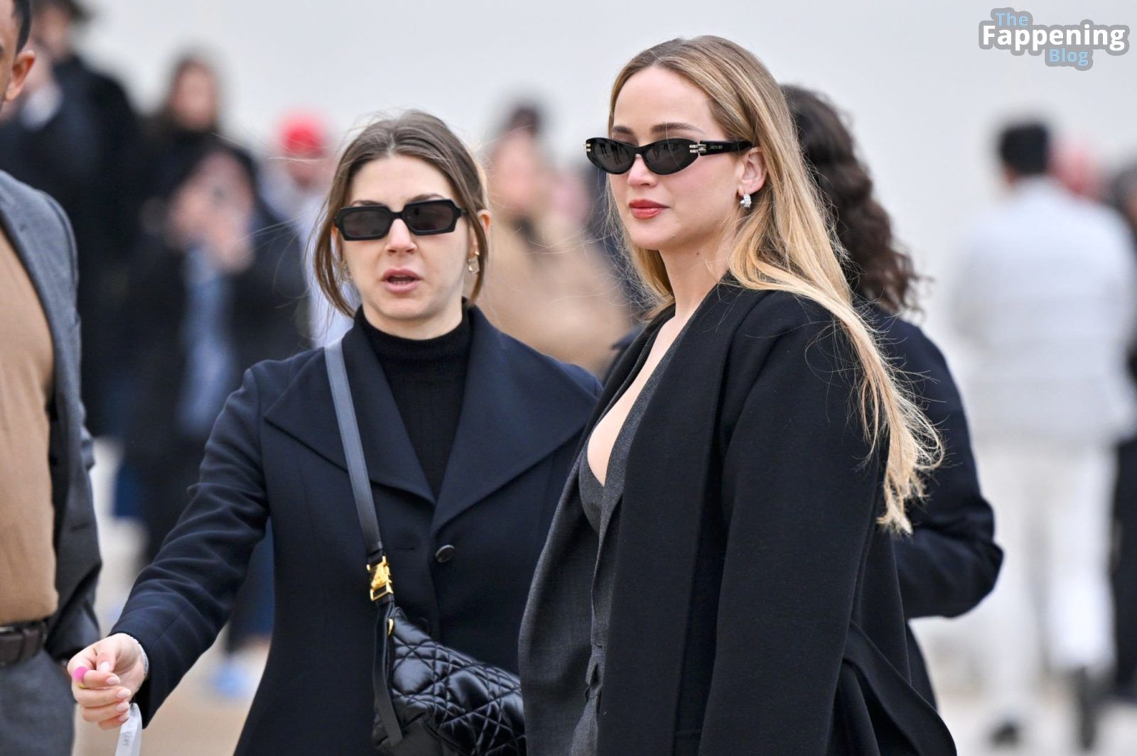 Mira la impresionante belleza de Jennifer Lawrence mientras luce su escote en el desfile de Christian Dior en París.
