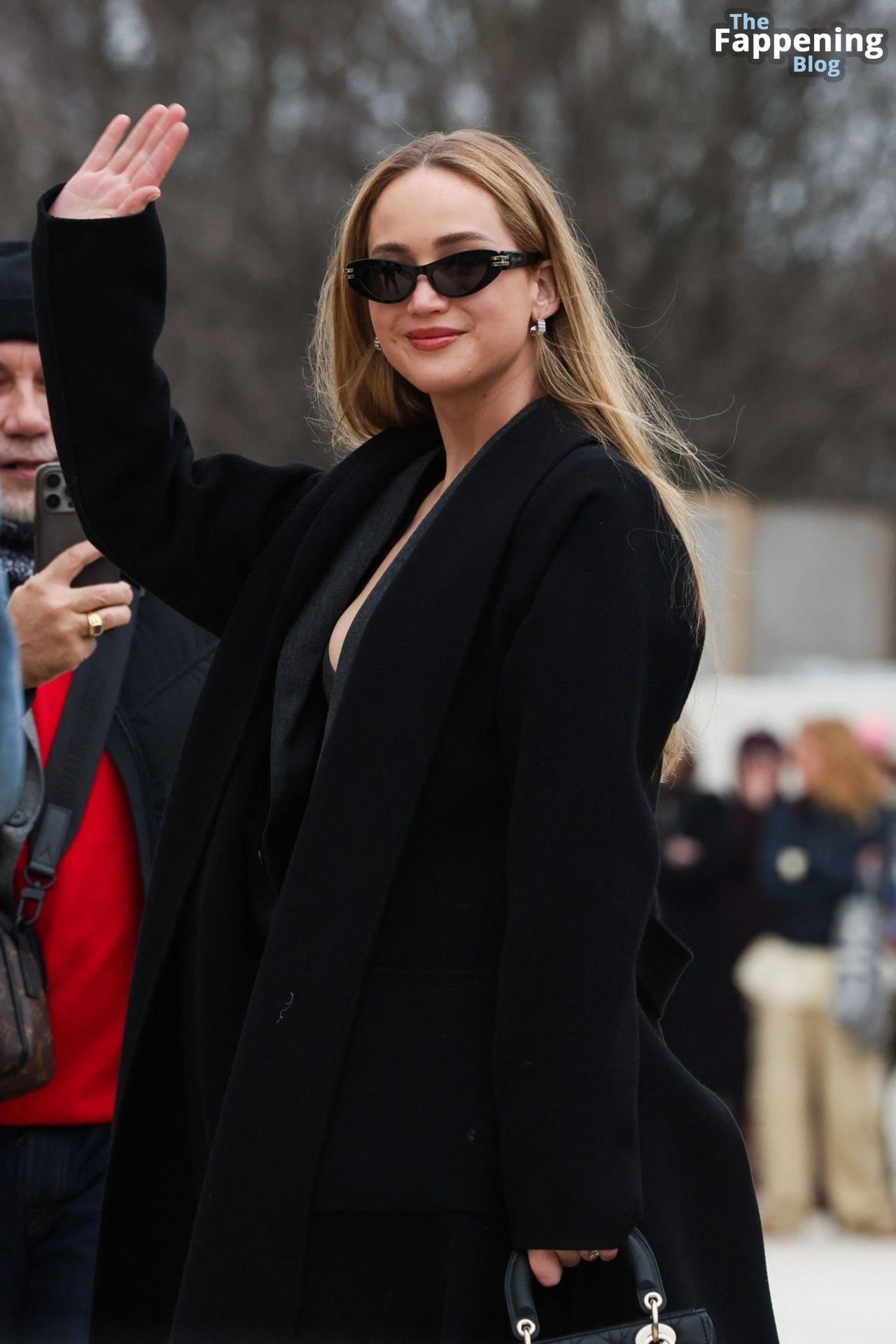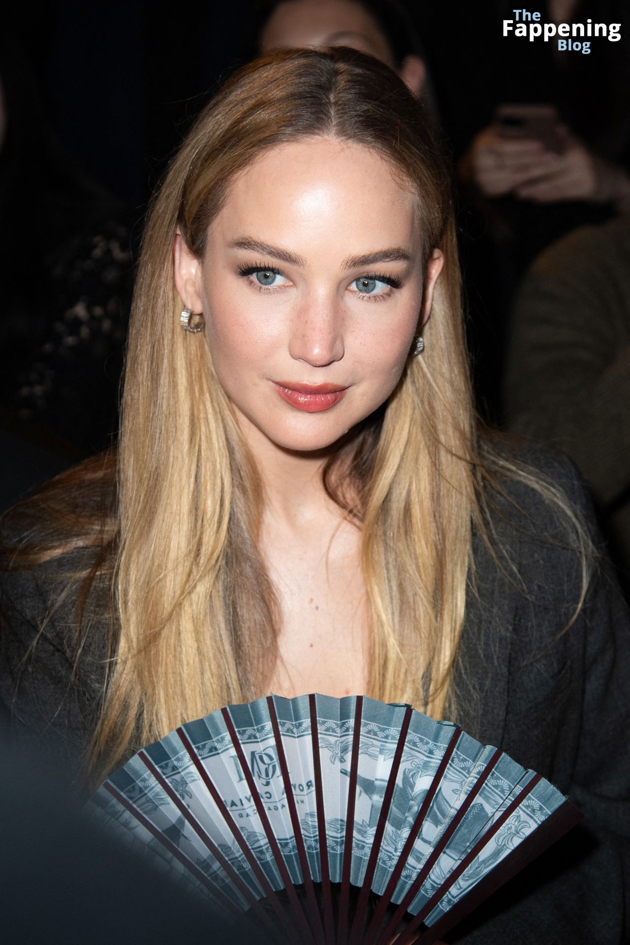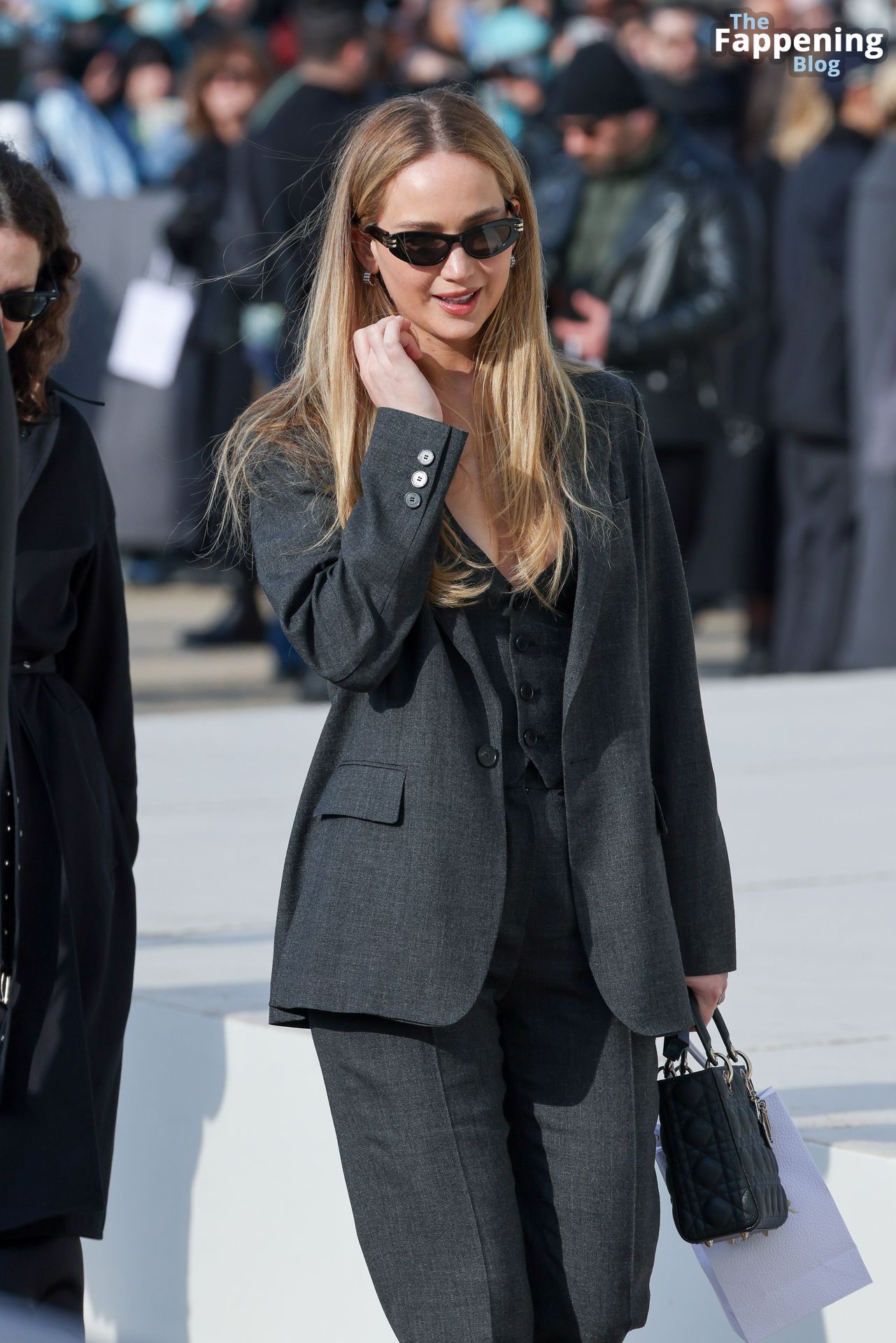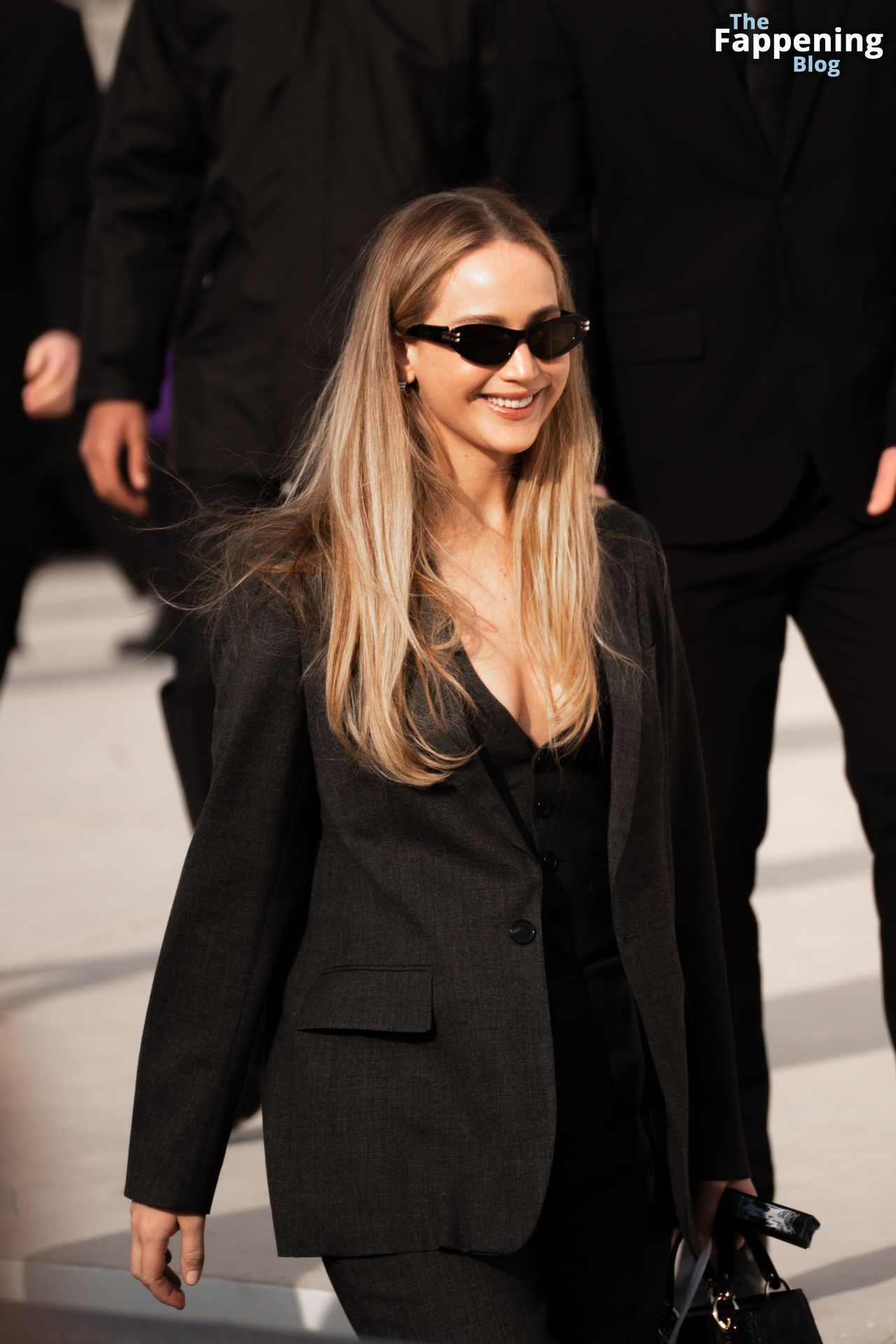 Mira la impresionante belleza de Jennifer Lawrence mientras luce su escote en el desfile de Christian Dior en París.