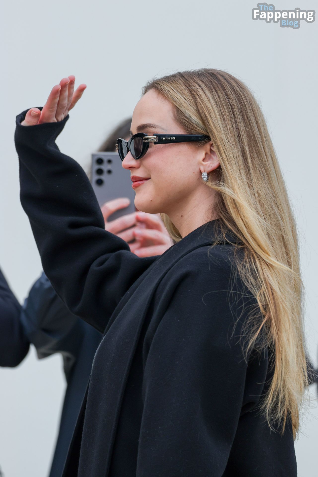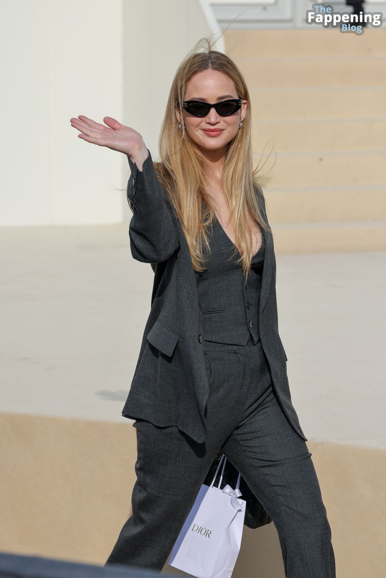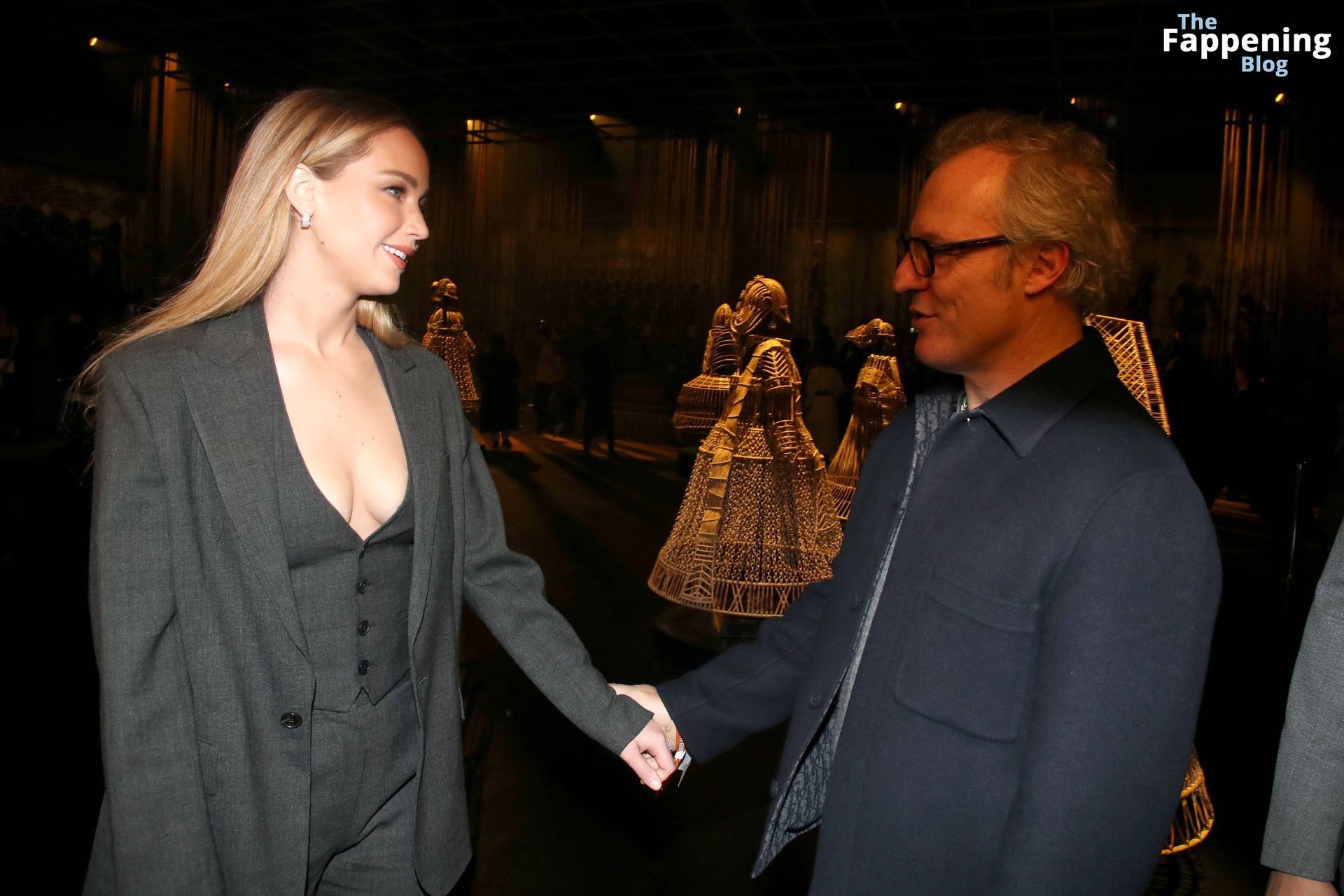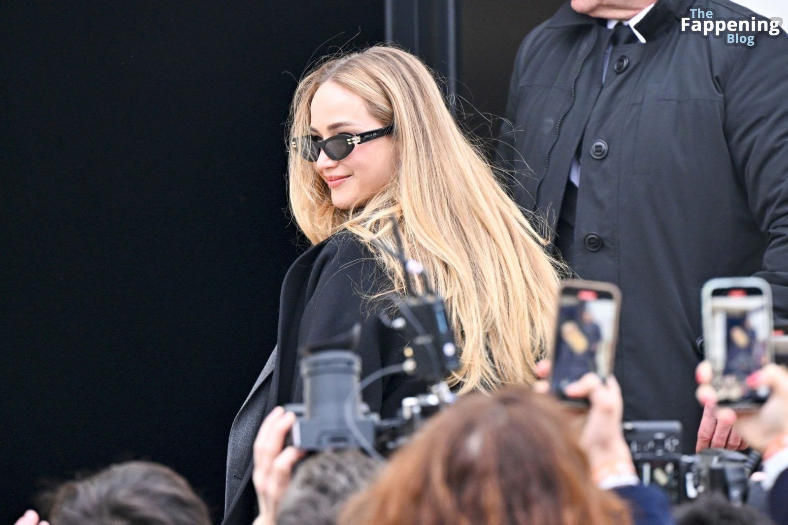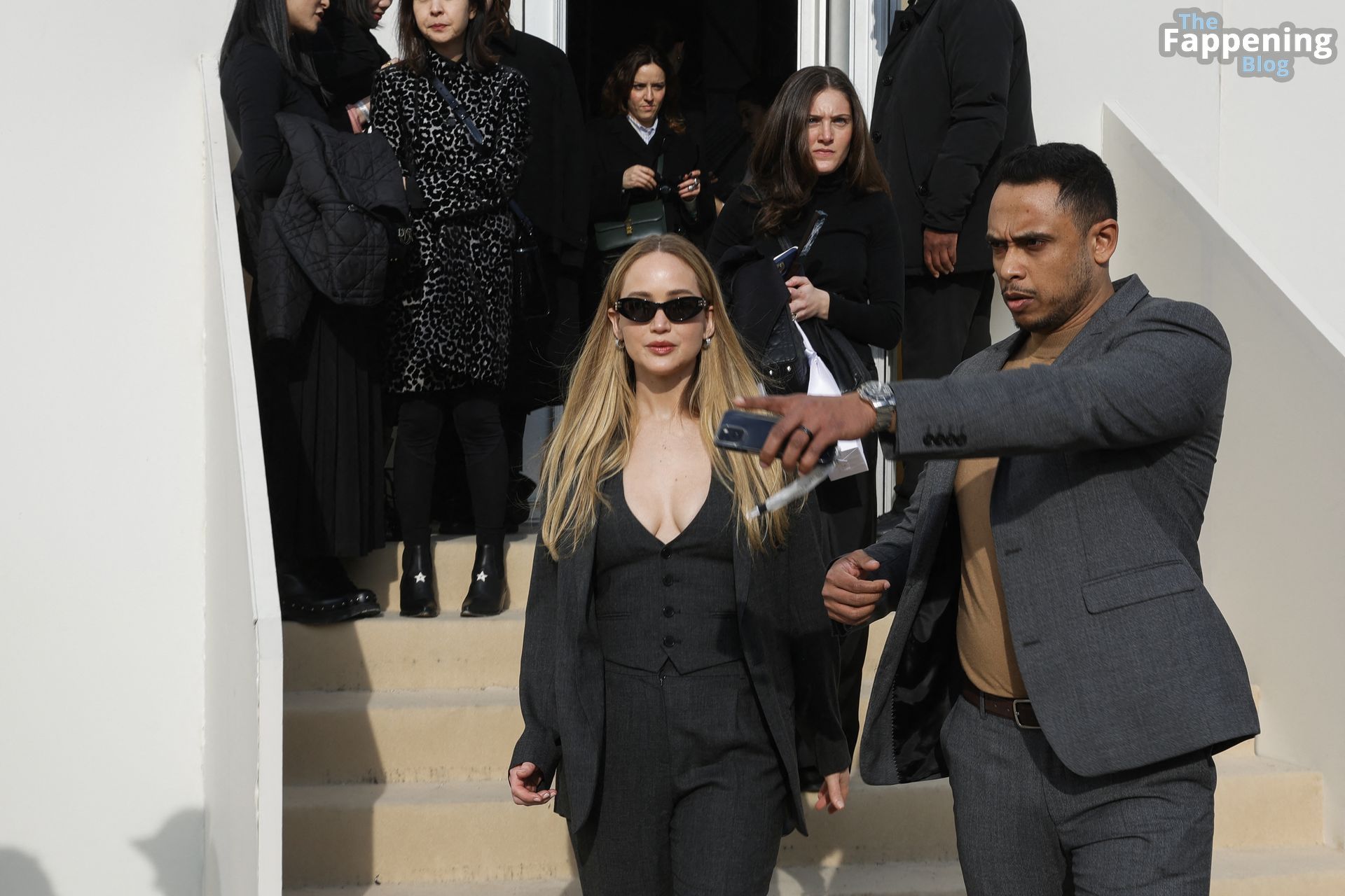 Mira la impresionante belleza de Jennifer Lawrence mientras luce su escote en el desfile de Christian Dior en París.