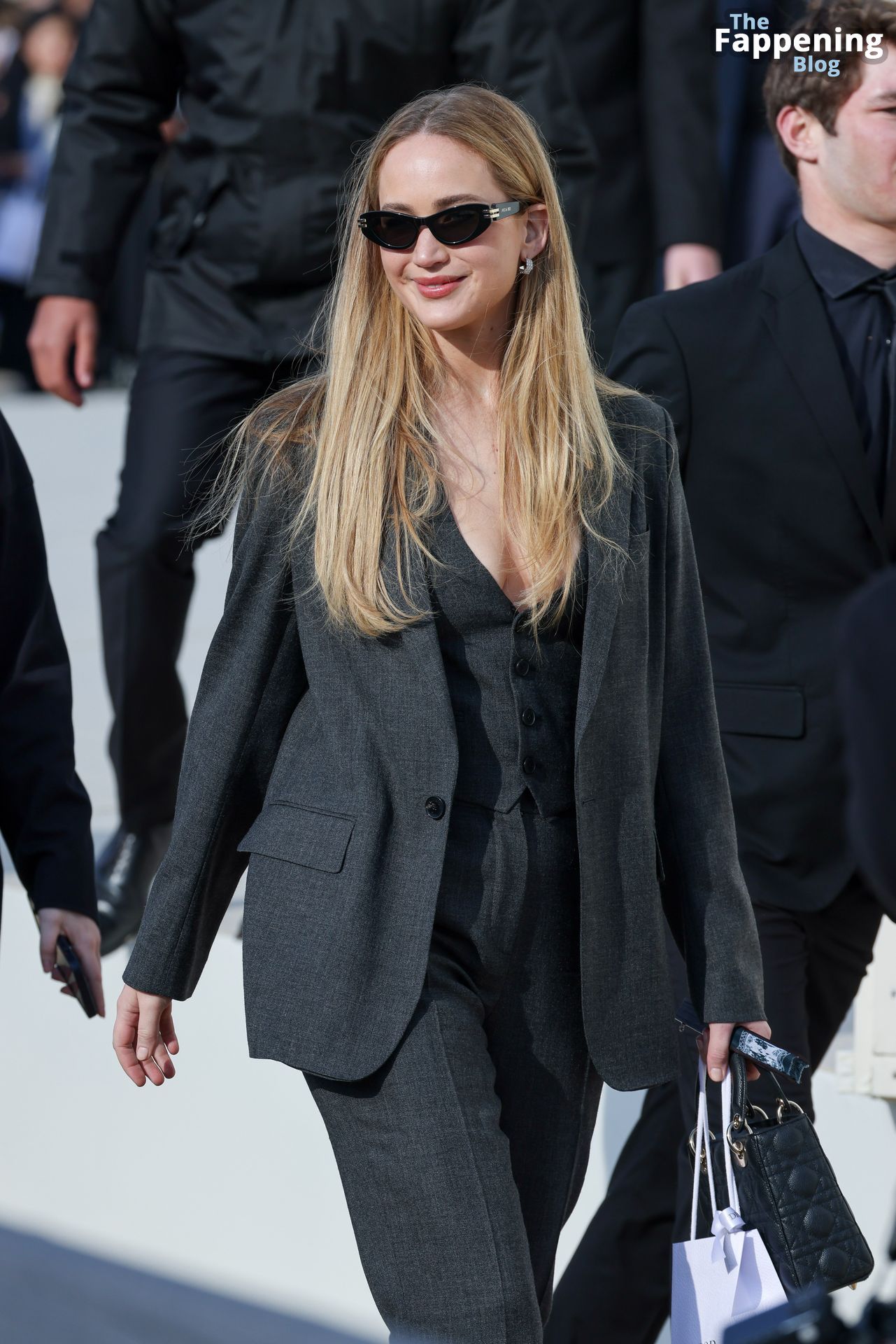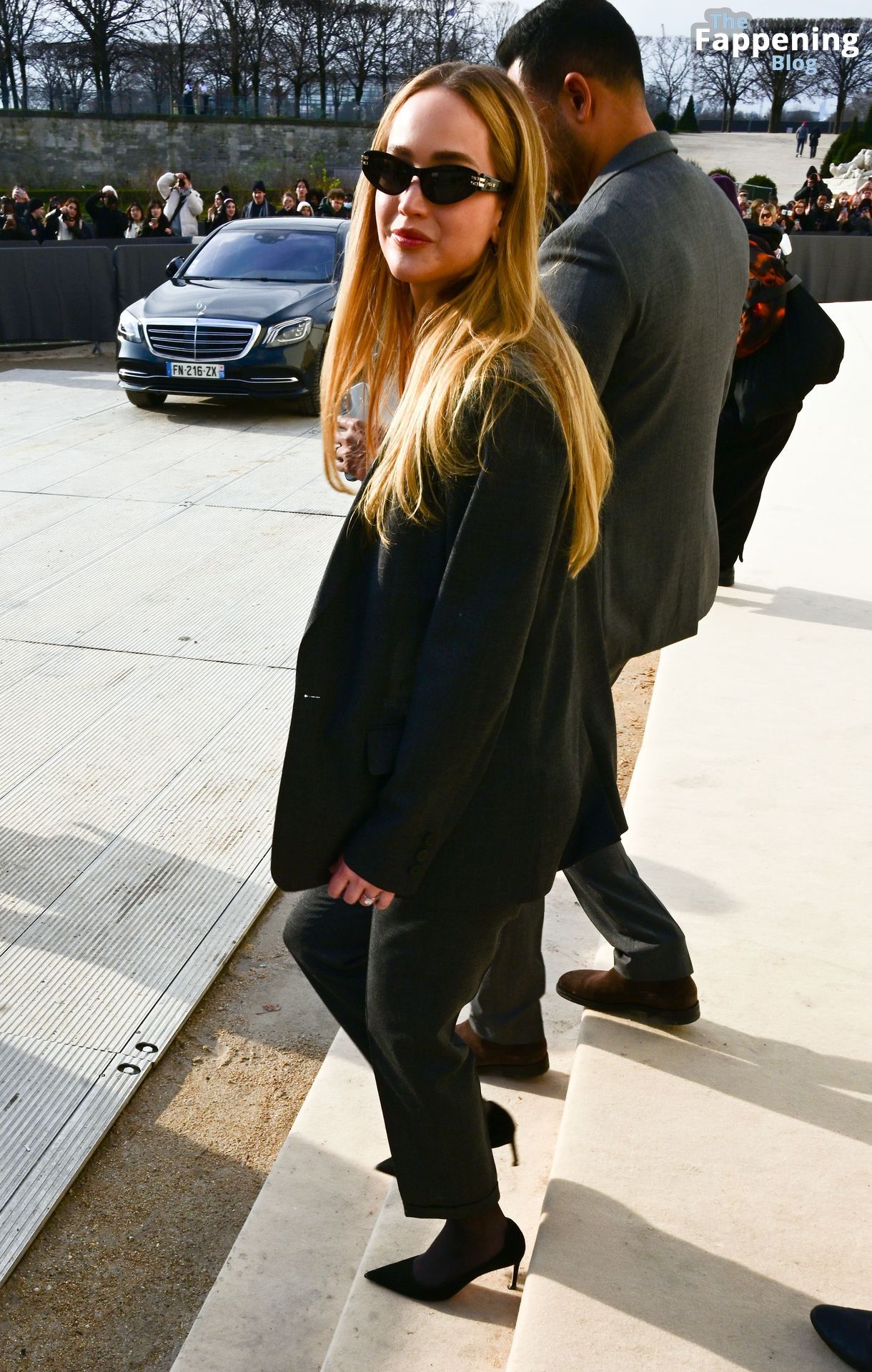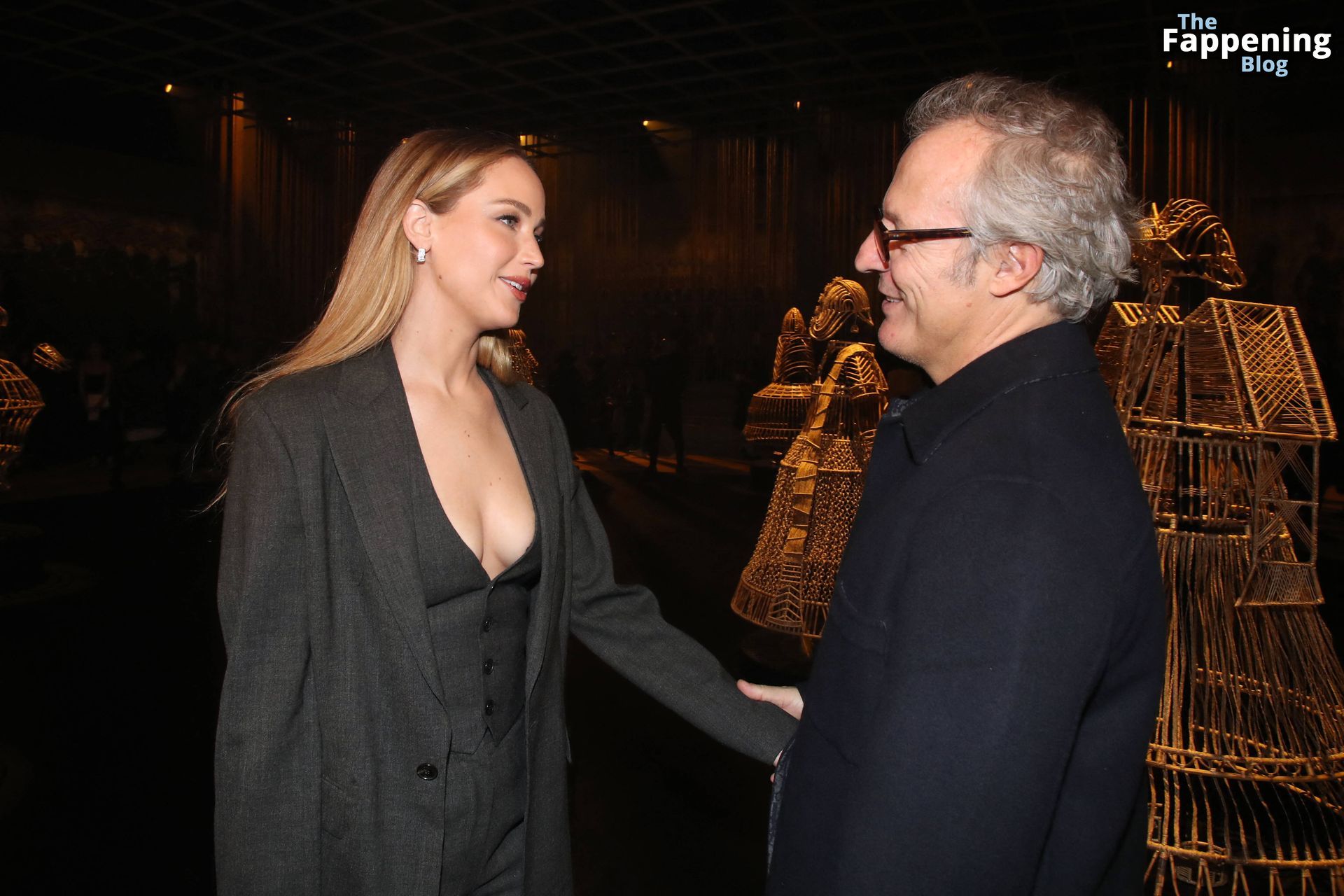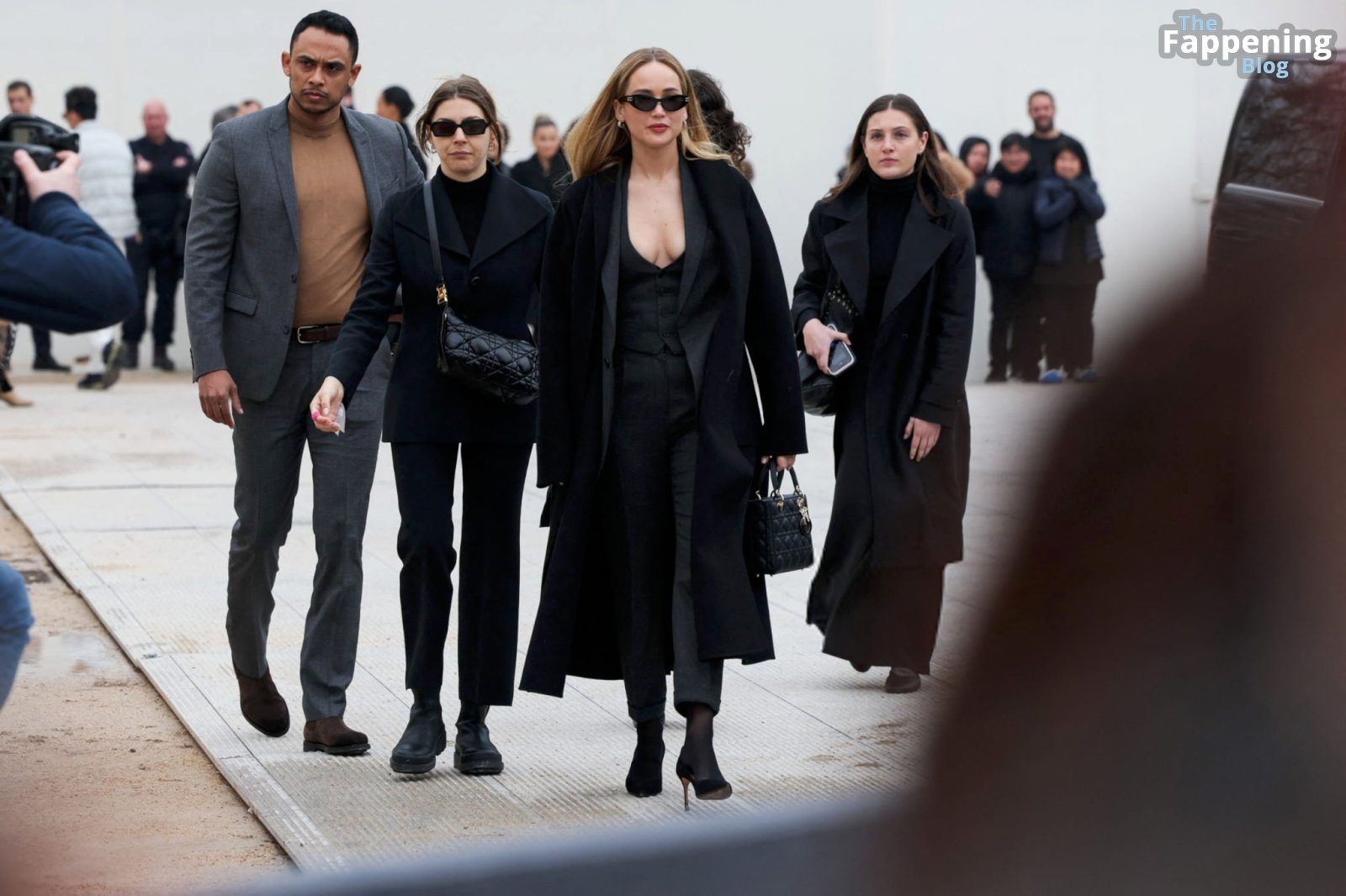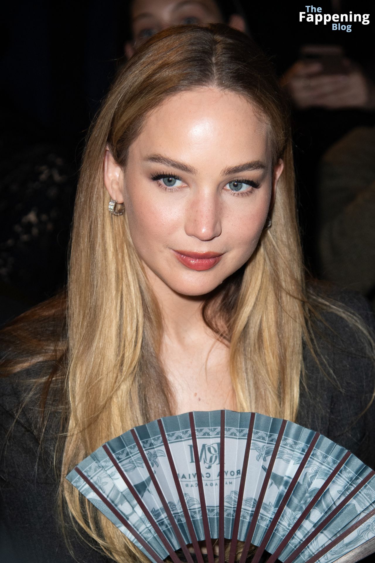 Mira la impresionante belleza de Jennifer Lawrence mientras luce su escote en el desfile de Christian Dior en París.