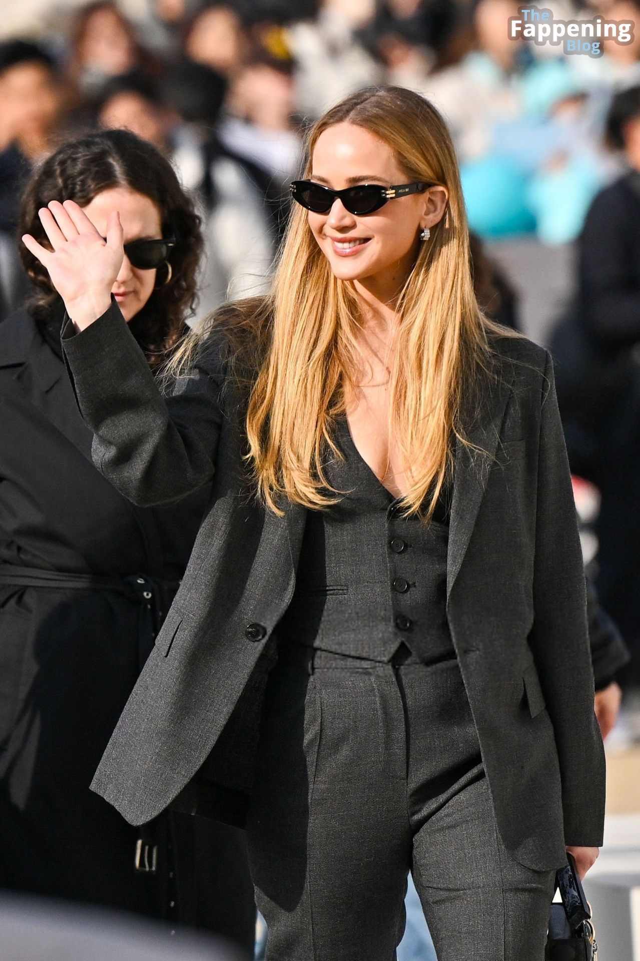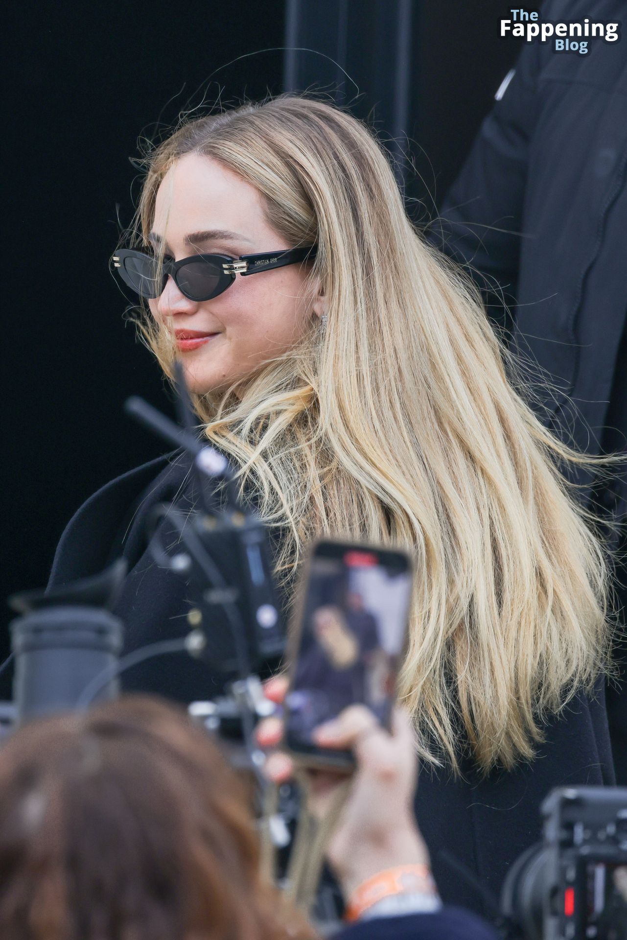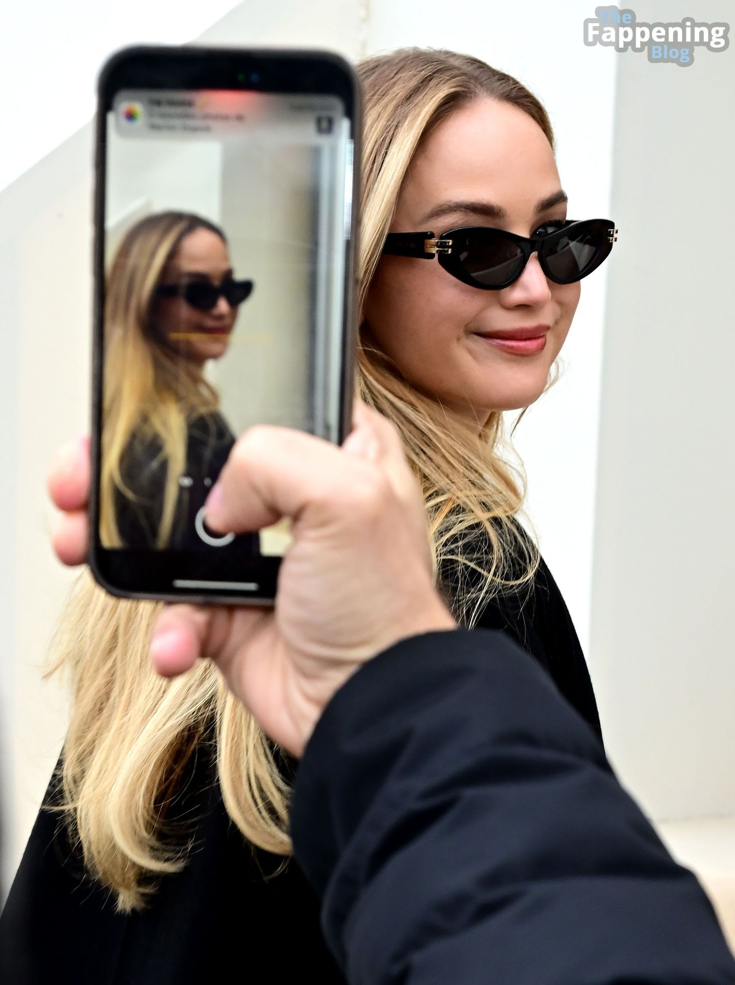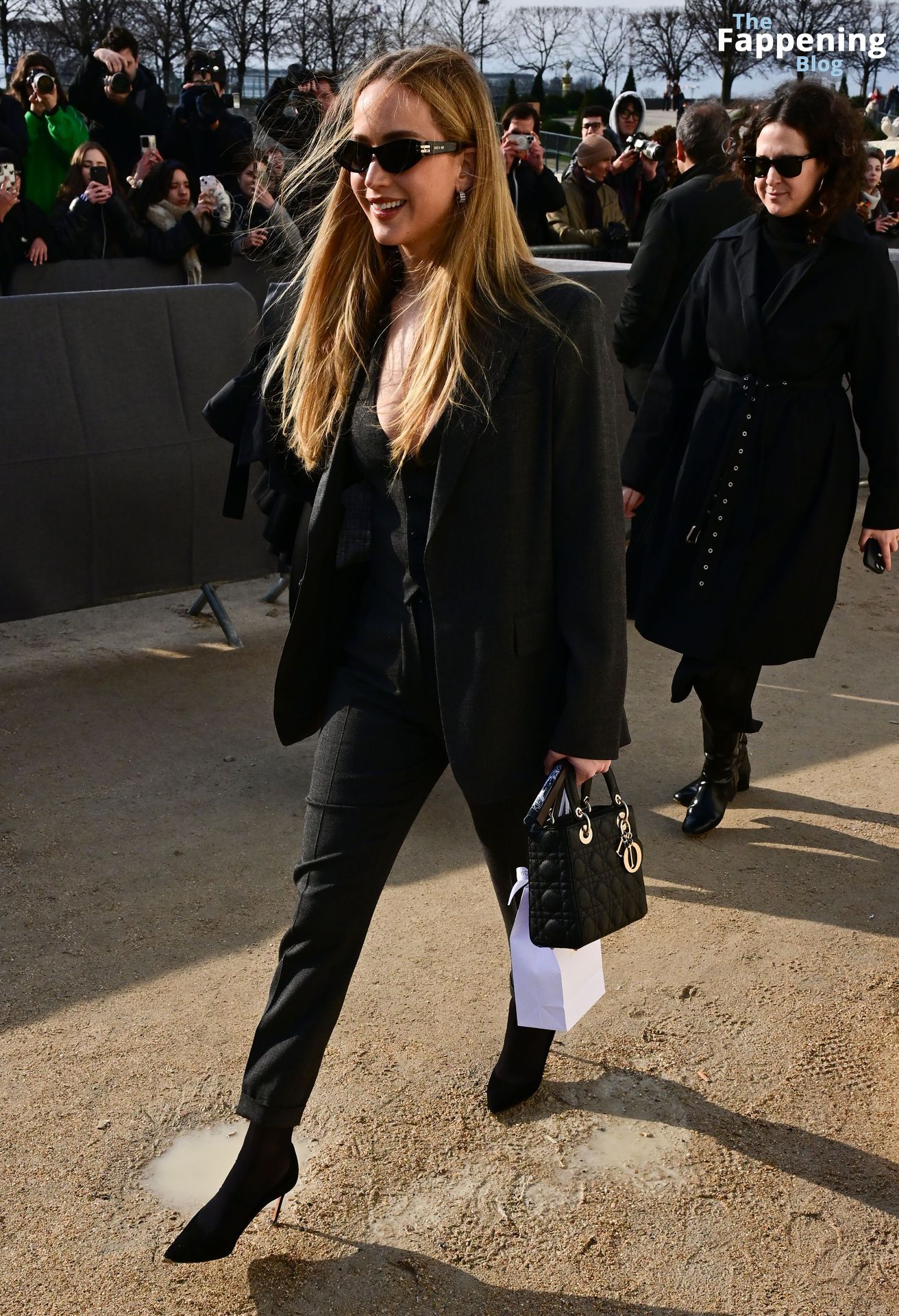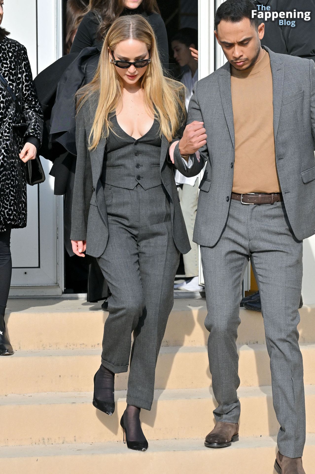 Mira la impresionante belleza de Jennifer Lawrence mientras luce su escote en el desfile de Christian Dior en París.