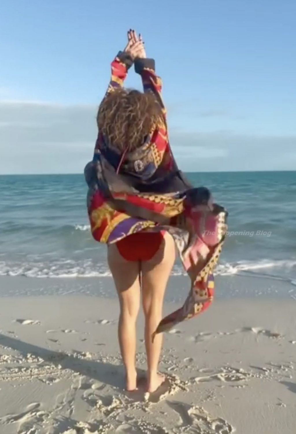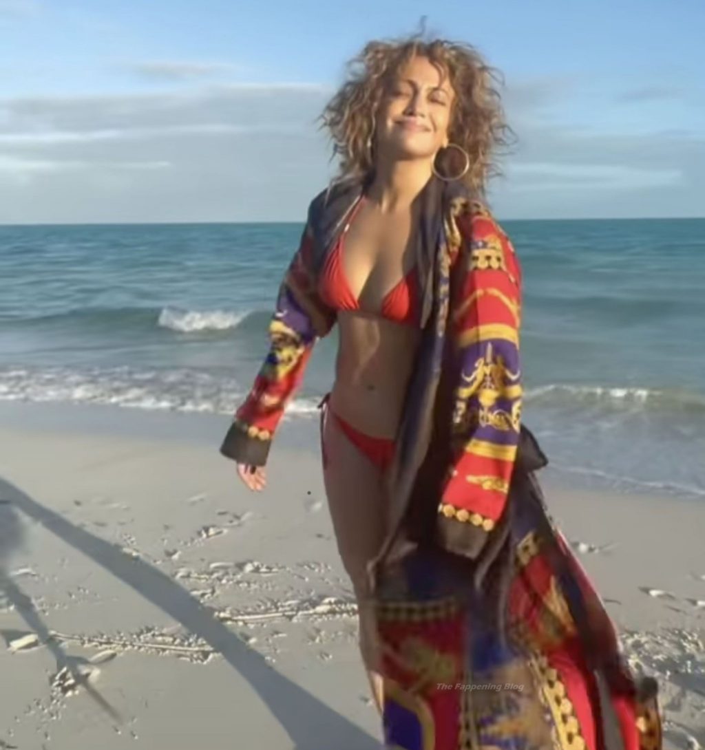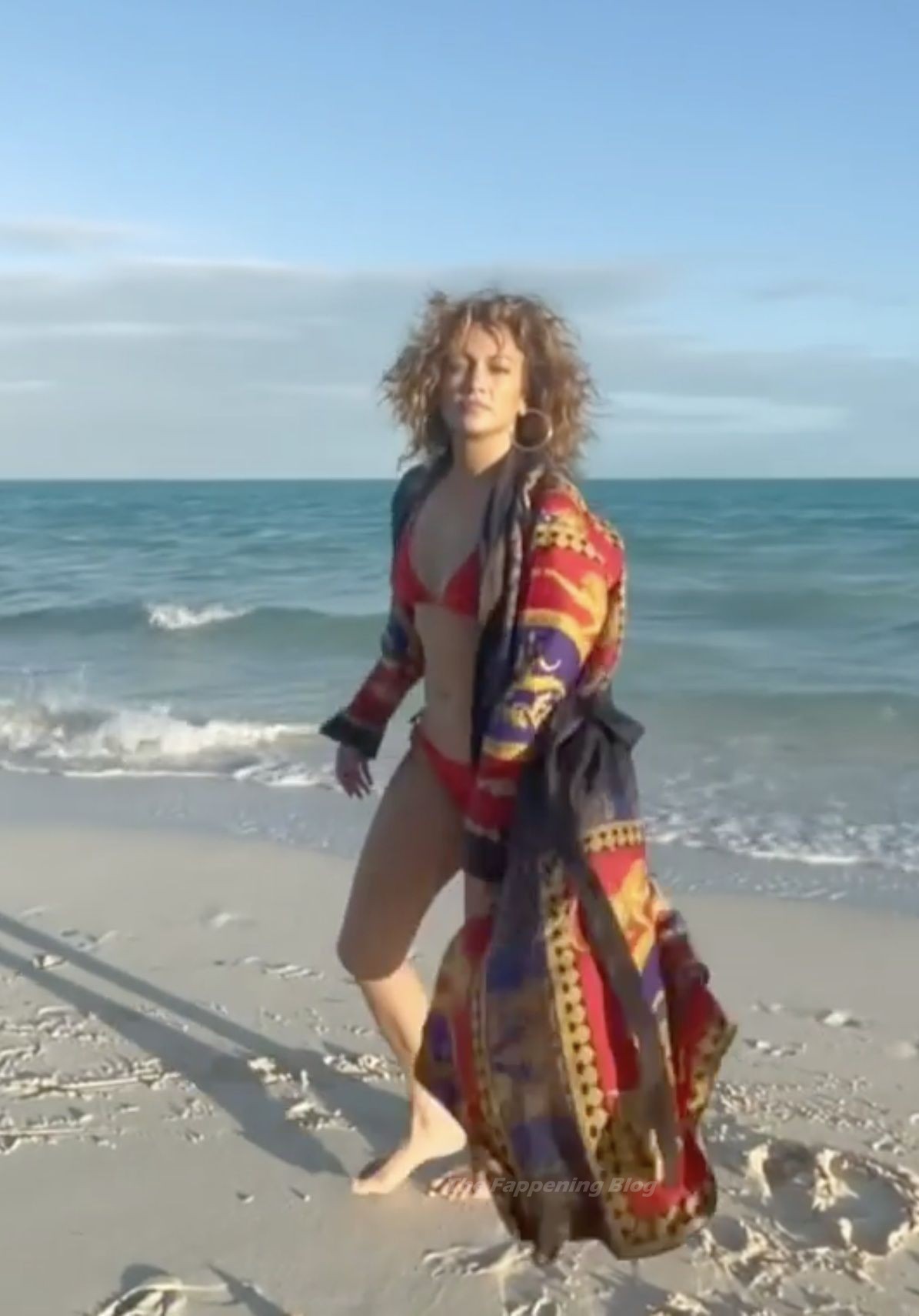 Cantante Jennifer Lopez disfruta de la playa con un bikini rojo de hilo y una bata personalizada – Instagram, 01/05/2021.