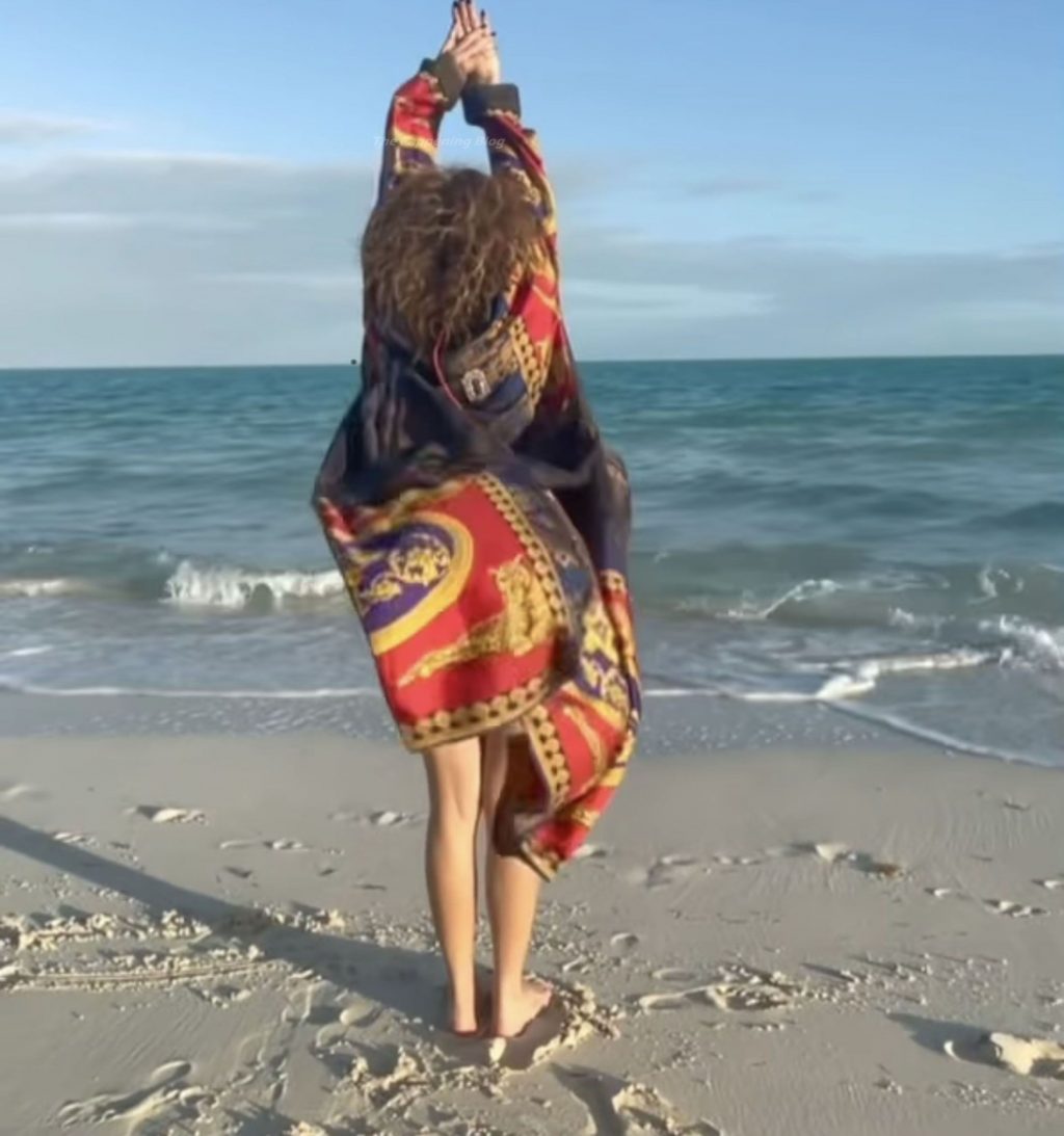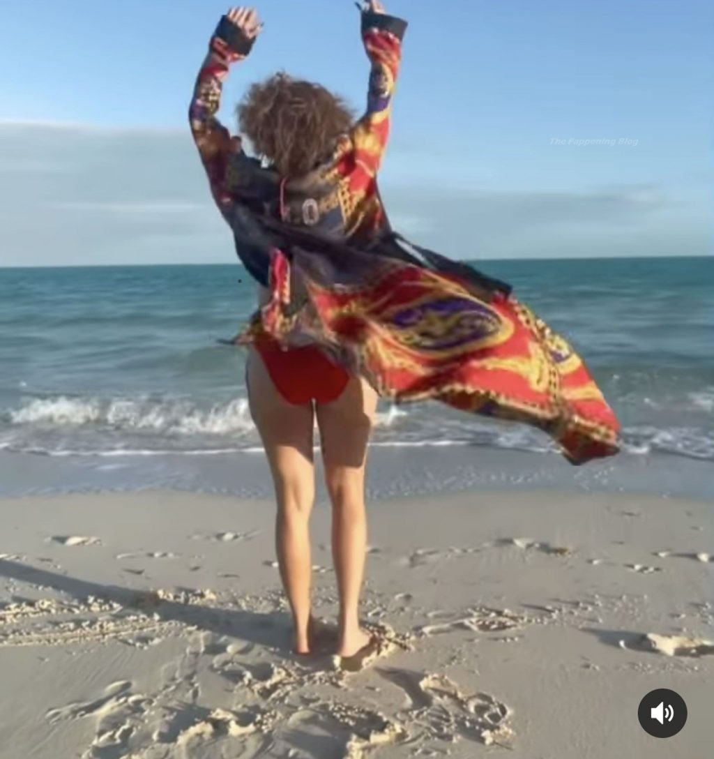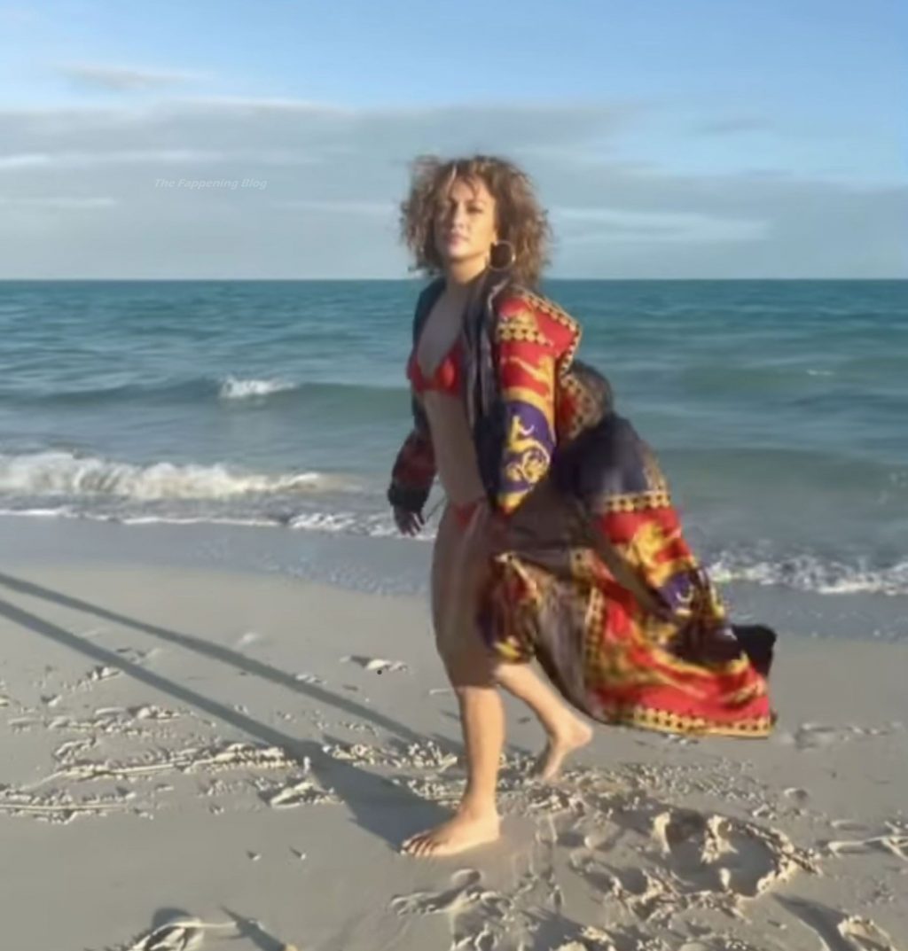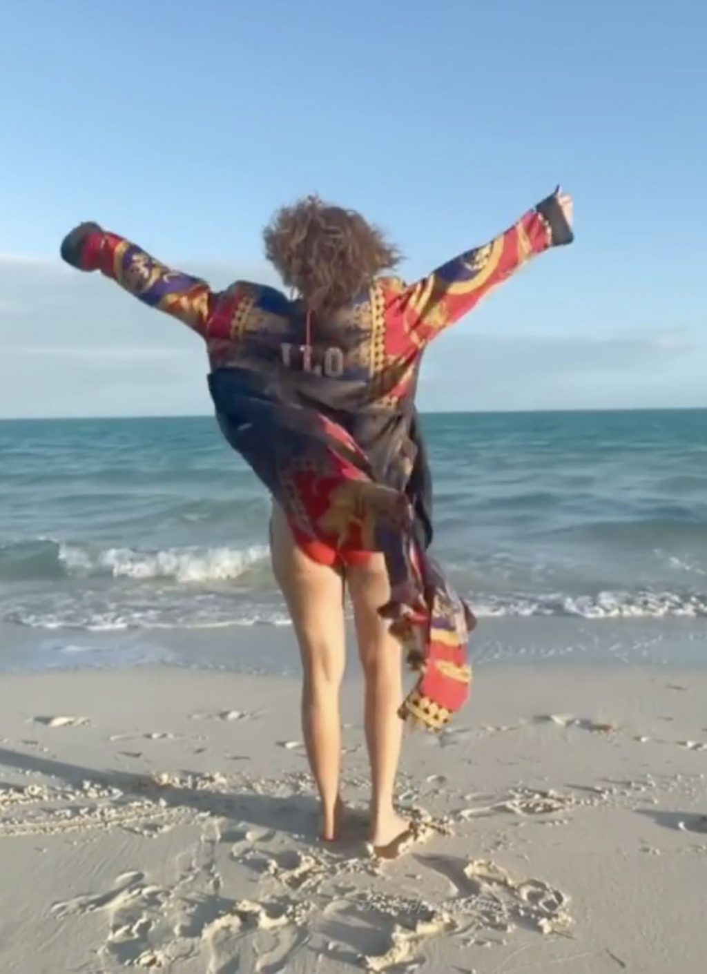 Cantante Jennifer Lopez disfruta de la playa con un bikini rojo de hilo y una bata personalizada – Instagram, 01/05/2021.