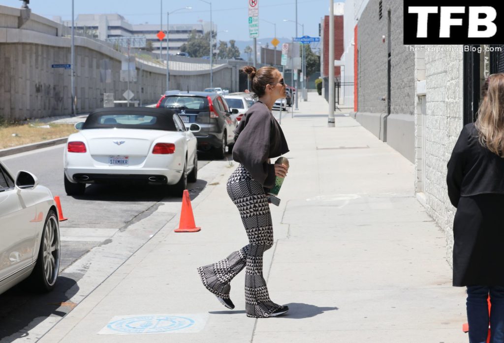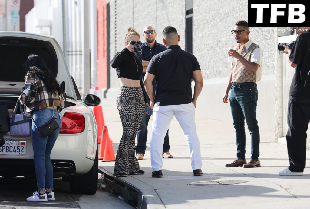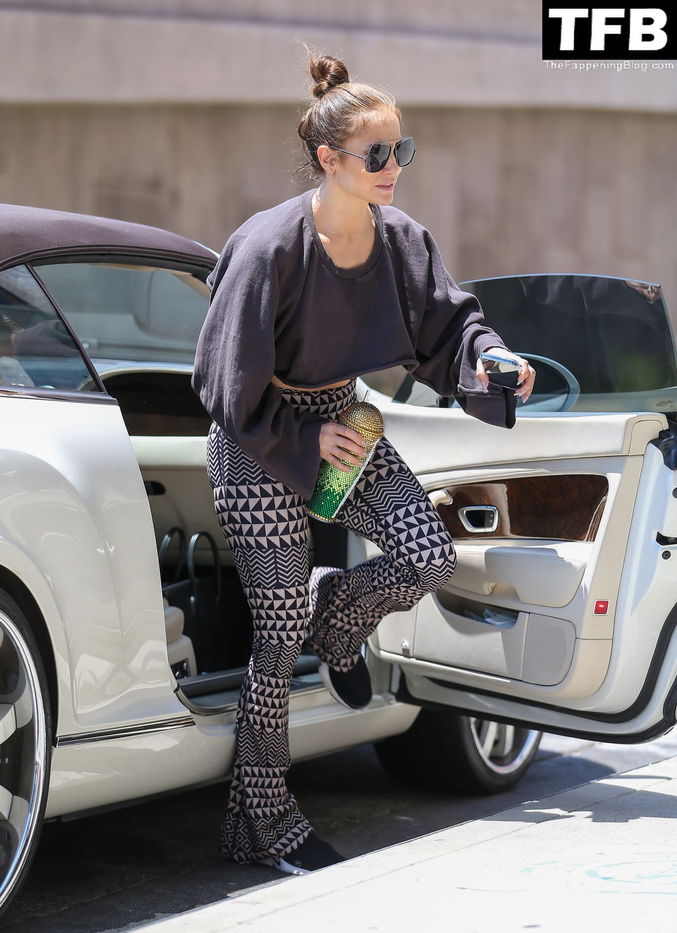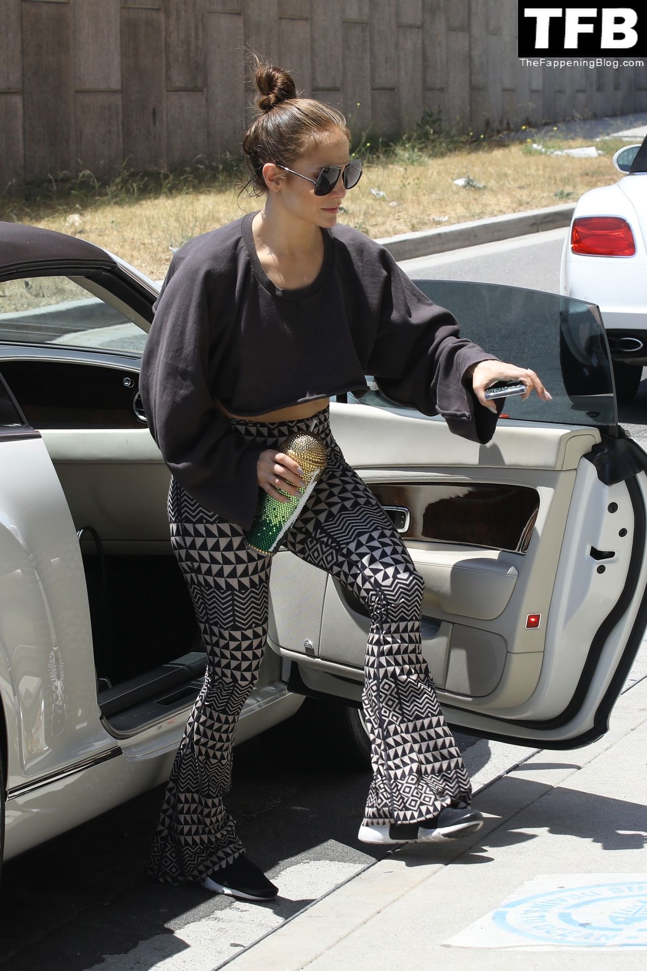 Jennifer Lopez llega al estudio de baile en Los Ángeles con leggings retro y una sudadera corta, 16/07/2022.
