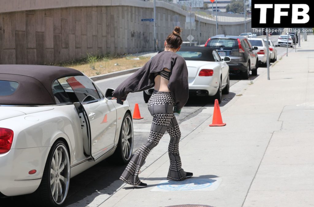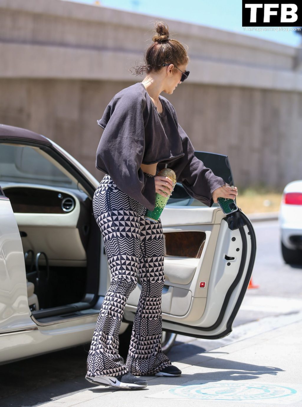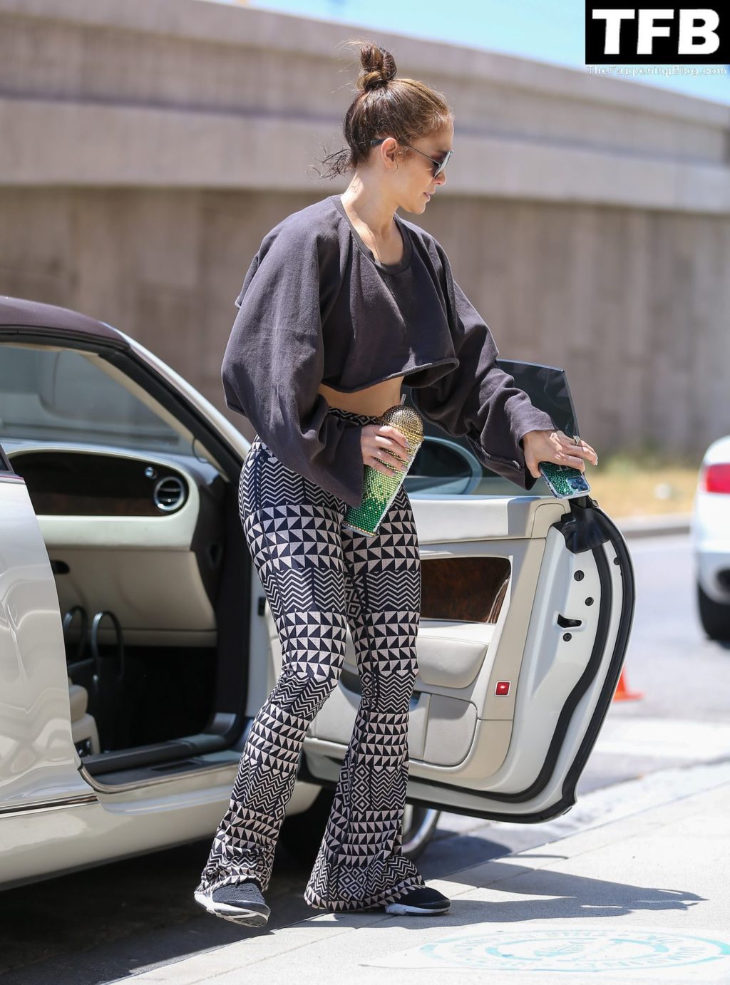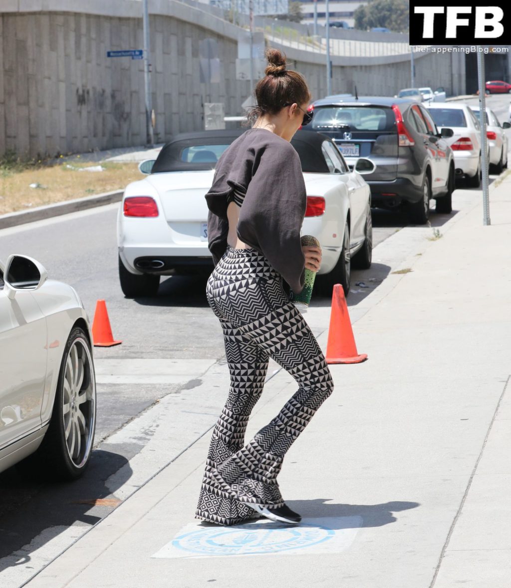 Jennifer Lopez llega al estudio de baile en Los Ángeles con leggings retro y una sudadera corta, 16/07/2022.