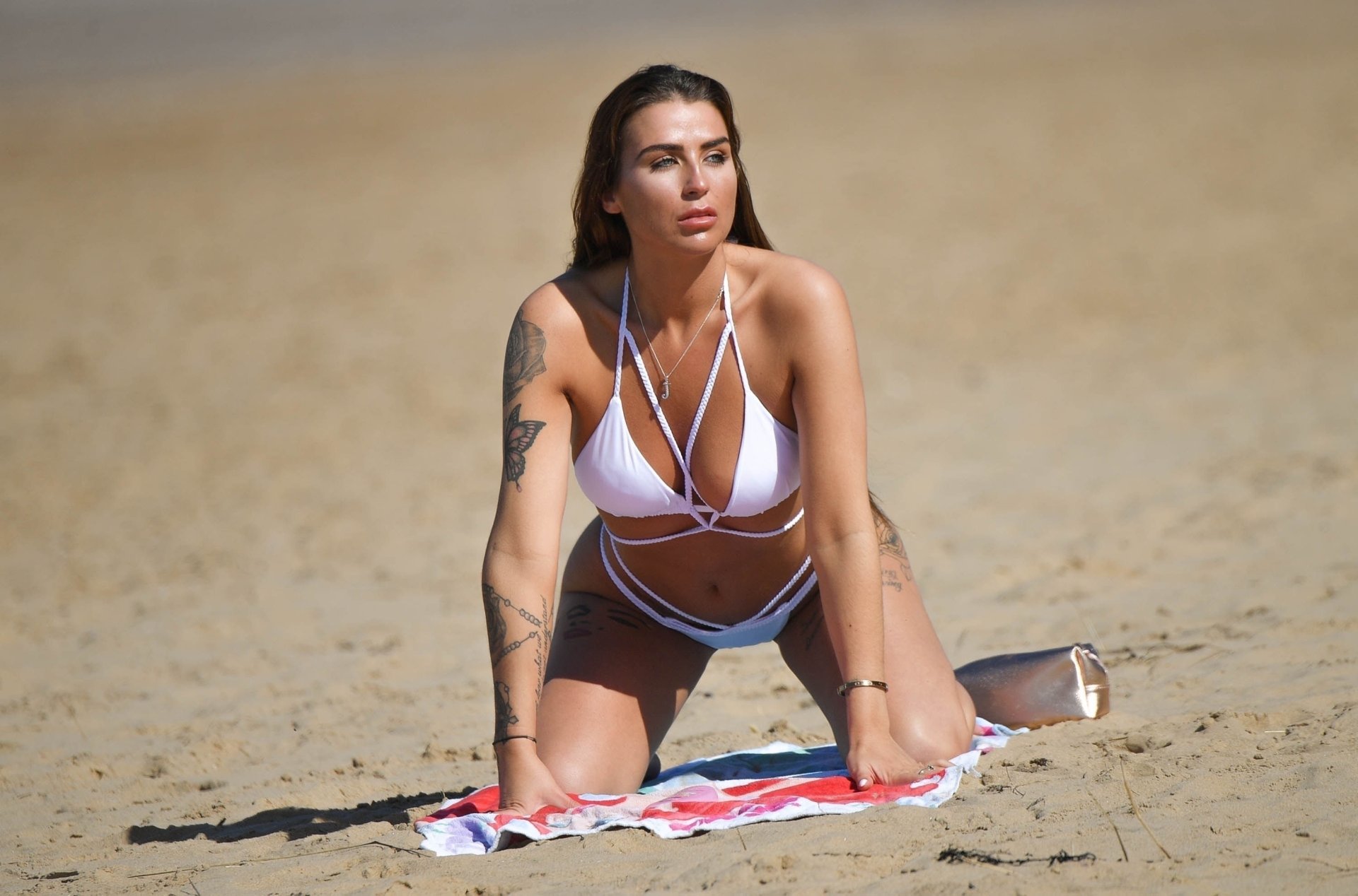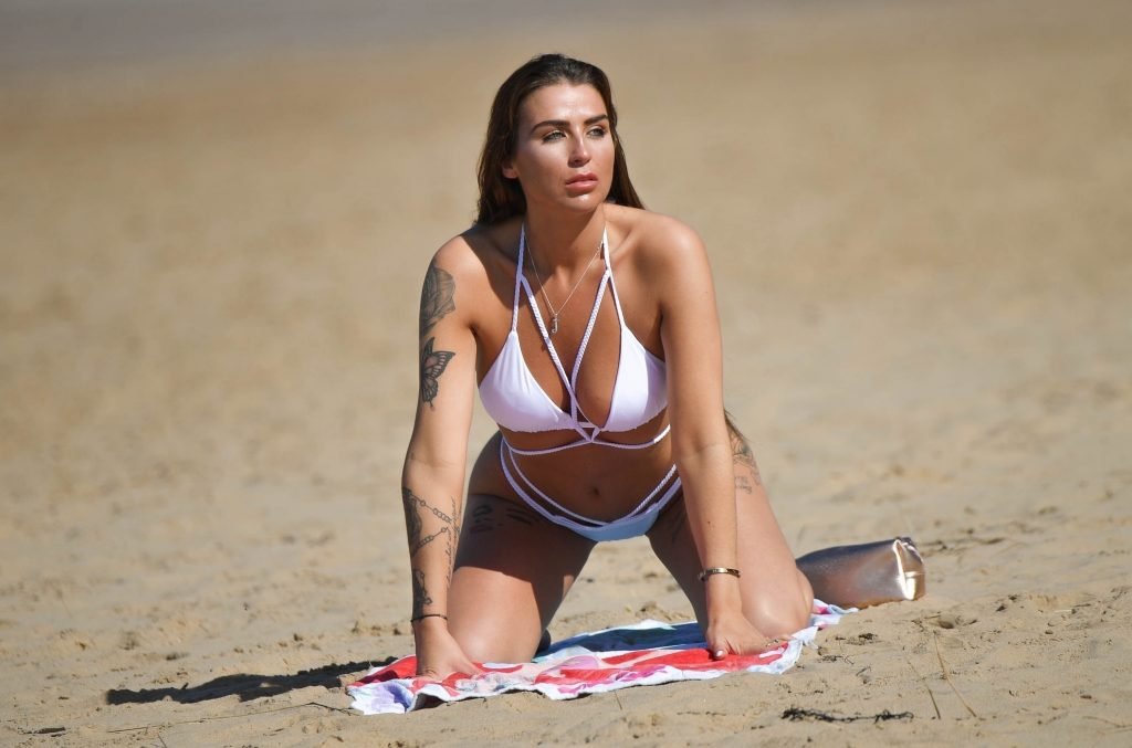 Ex estrella de Ex on the Beach, Jenny Thompson muestra su increíble cuerpo de vacaciones en Alicante, España, 21/04/2018. La estrella de reality presumió sus curvas con un bikini blanco en la playa.