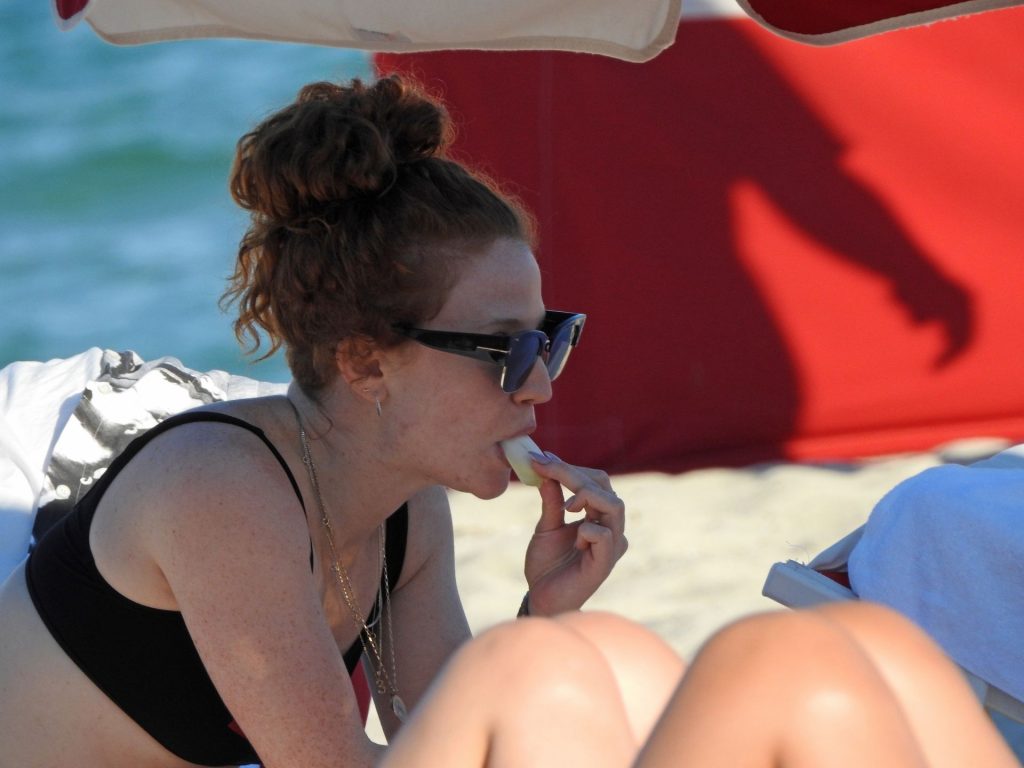Hermosa cantante inglesa pelirroja Jess Glynne fue fotografiada disfrutando de un día soleado en la playa el Día de Año Nuevo 2020 en Miami Beach, 01/02/2020. La sensación del pop de 30 años lucía impresionante con un sexy bikini negro que contrastaba con su piel muy blanca y mostraba su cuerpo sexy y tonificado.