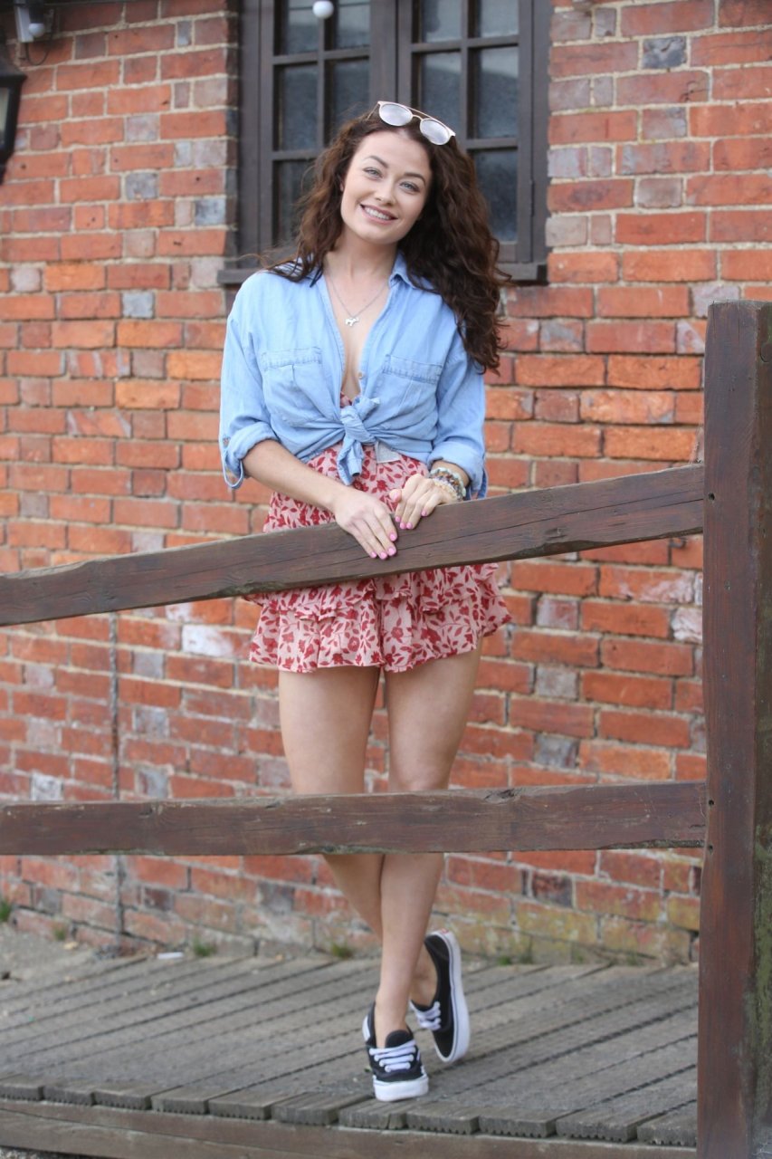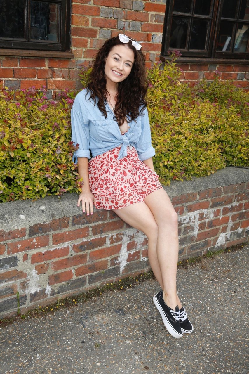 Jess Impiazzi visita Tulleys Escape Rooms en Tulleys Farm en Crawley, 25/05/2019. La estrella de reality y modelo de 30 años mostró sus piernas sexys mientras posaba para el fotógrafo.