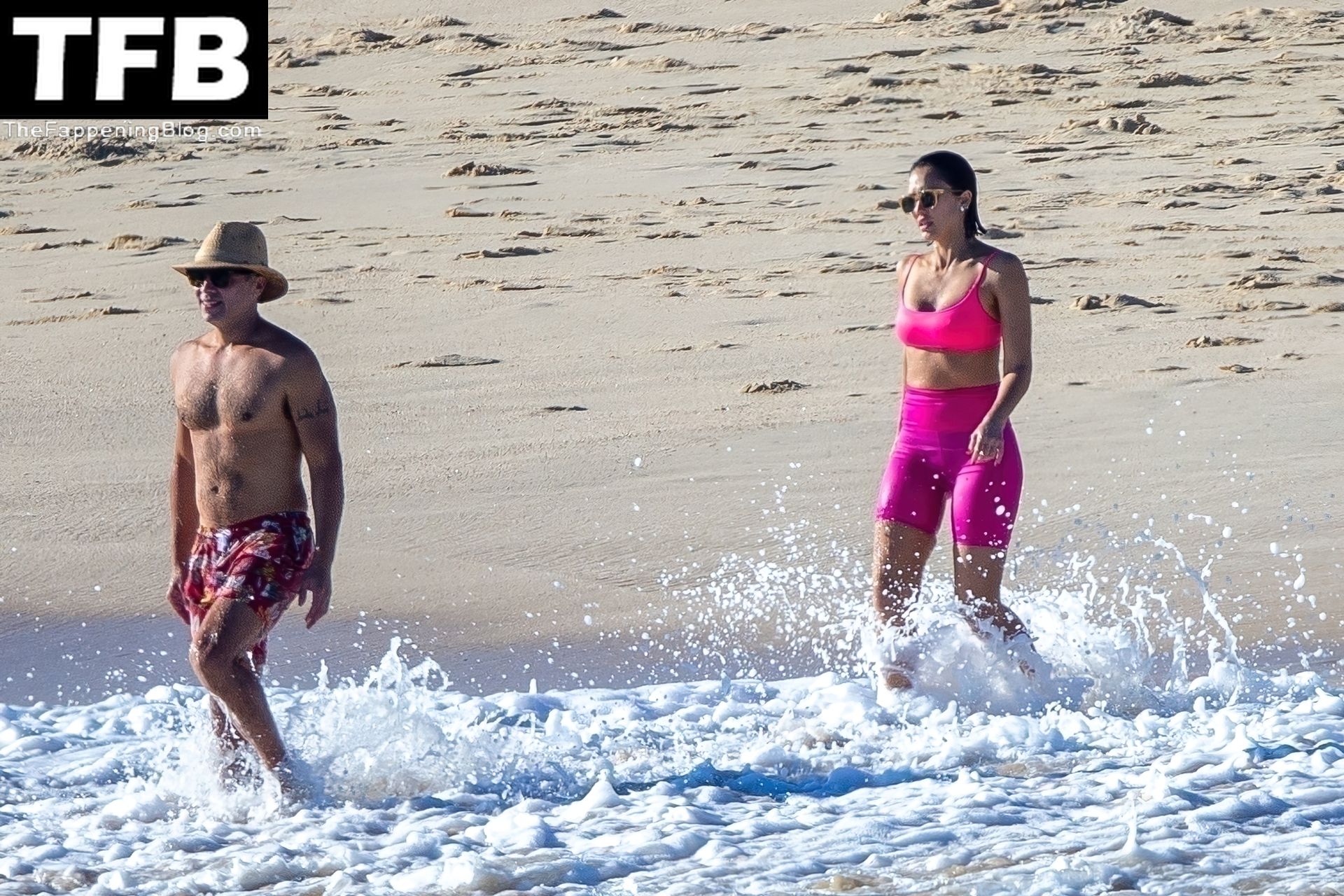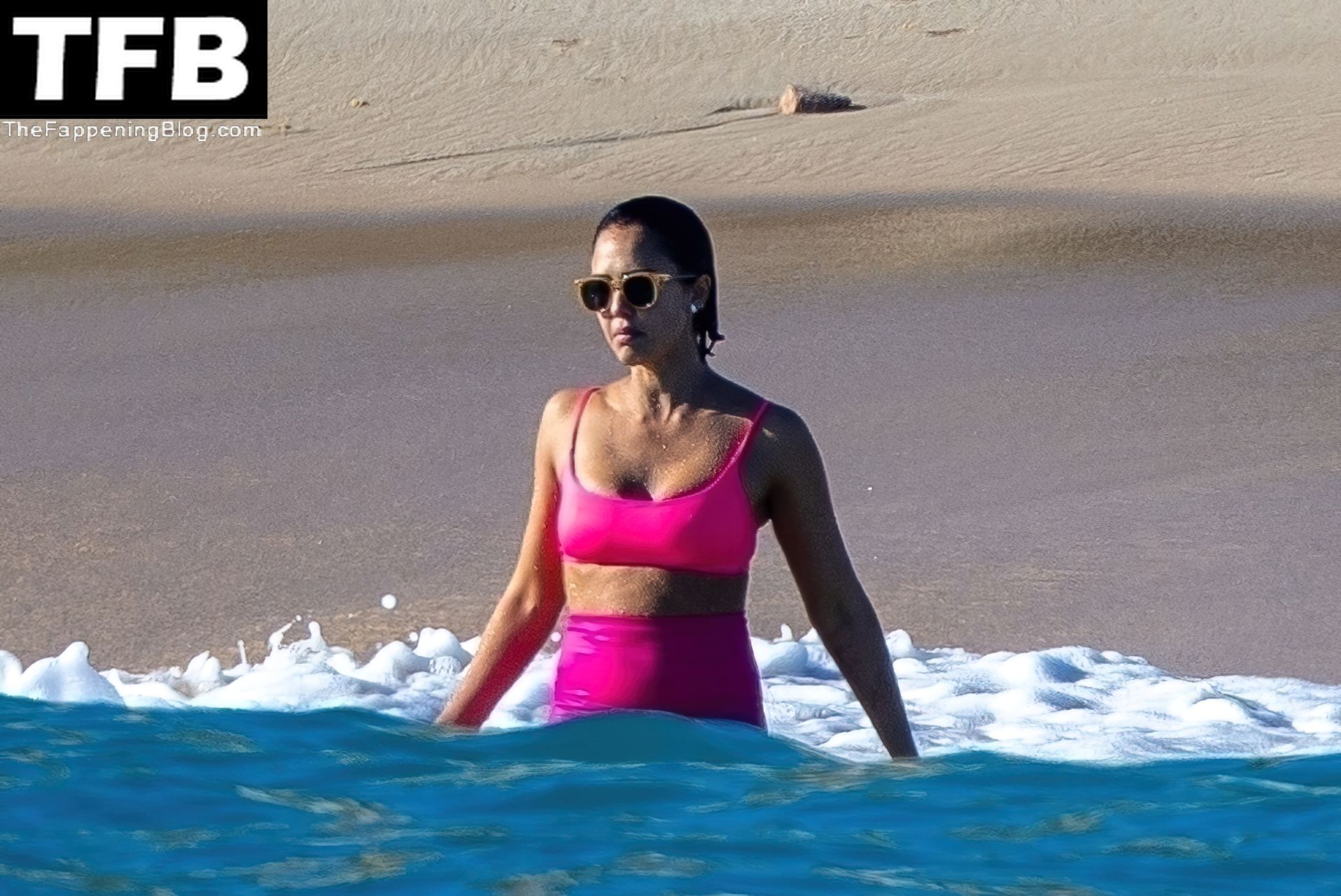 La fundadora de The Honest Company lució un top de bikini rosa fuerte con pantalones cortos estilo ciclista a juego mientras se la veía disfrutando de un baño. La mamá de tres hijos de 40 años también fue vista enfundando su figura en forma con un bikini de hilo con estampado floral.