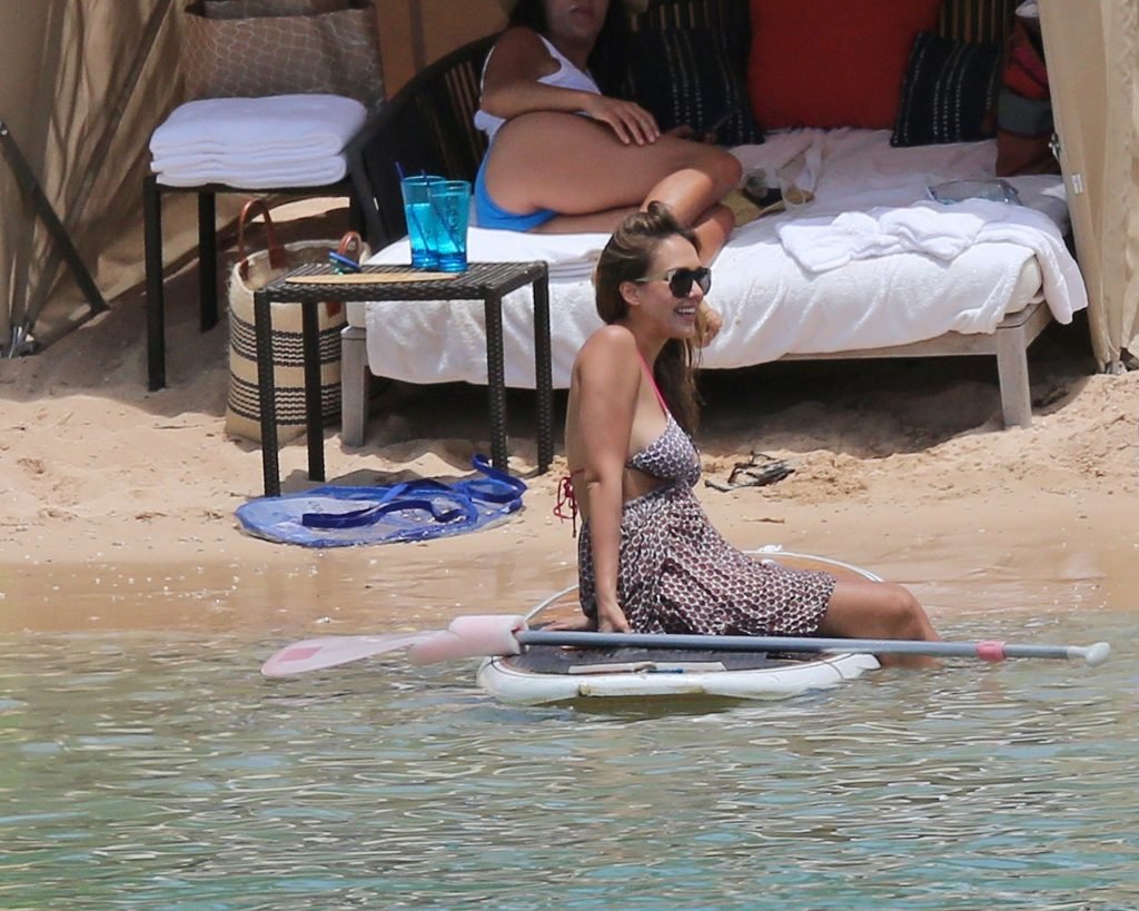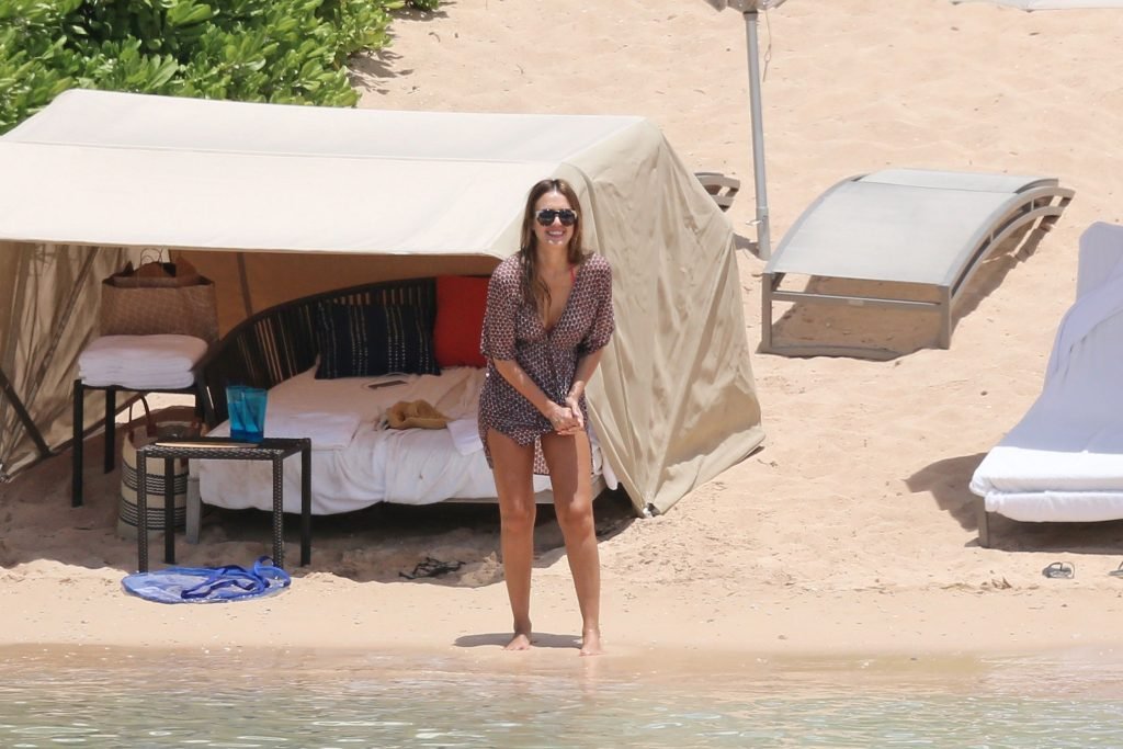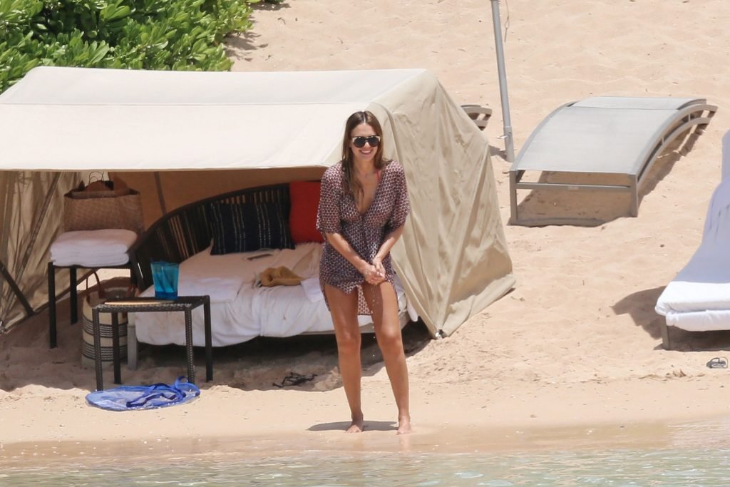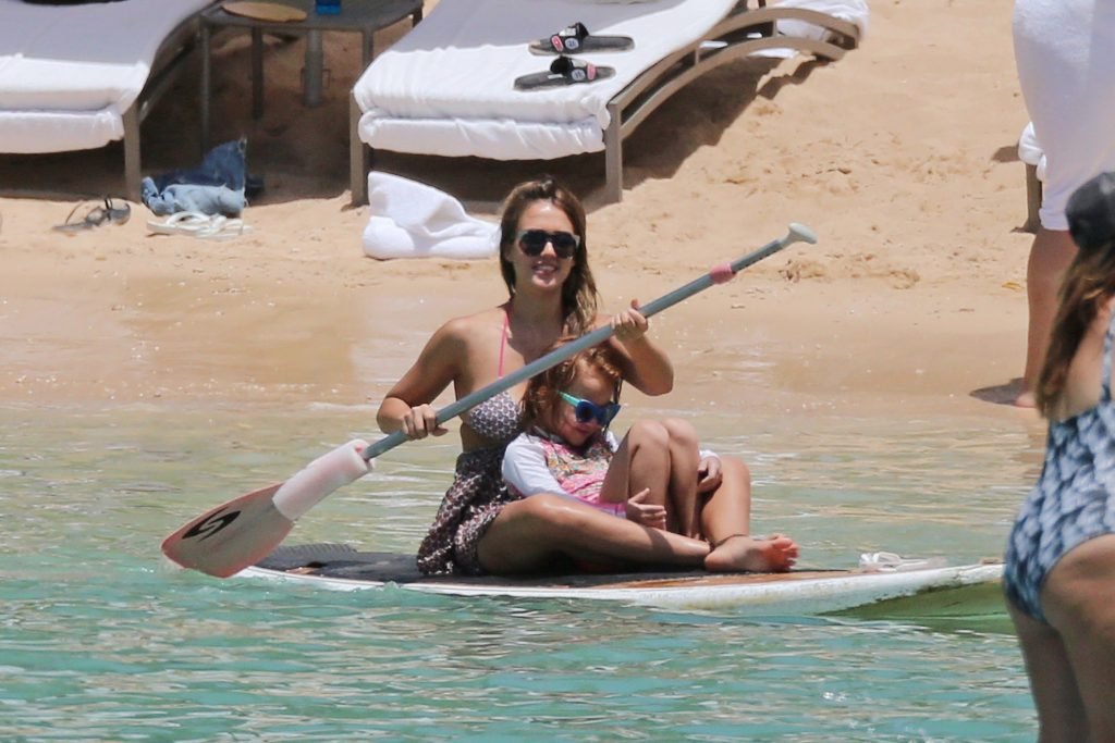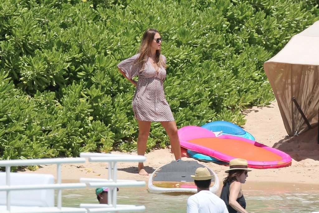 Jessica Alba llega a la playa con una pequeña pancita de embarazo. La estrella morena está de vacaciones con su familia, 17/07/2017.