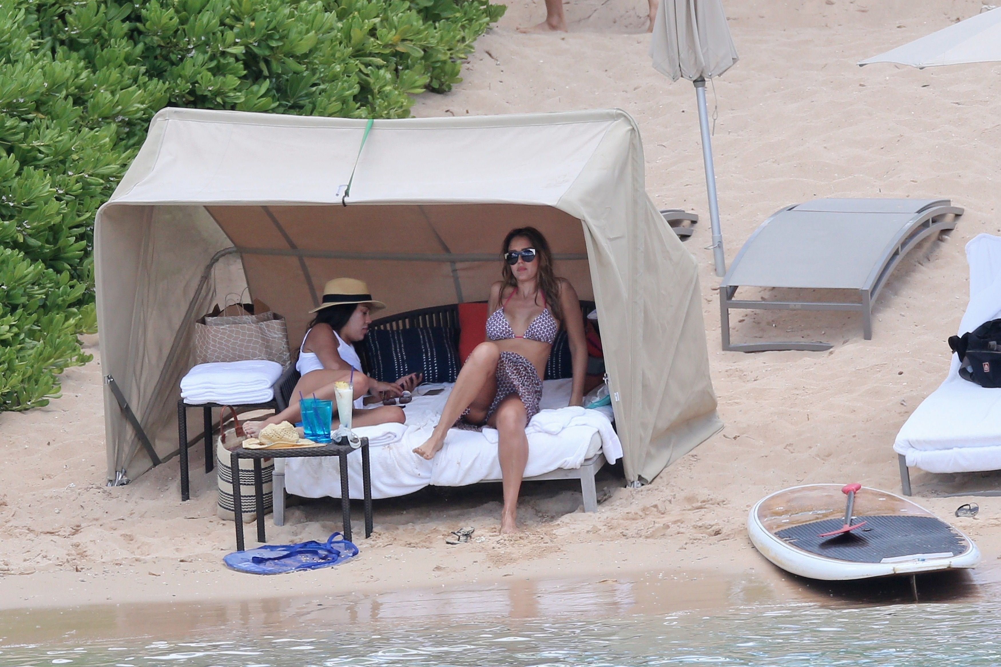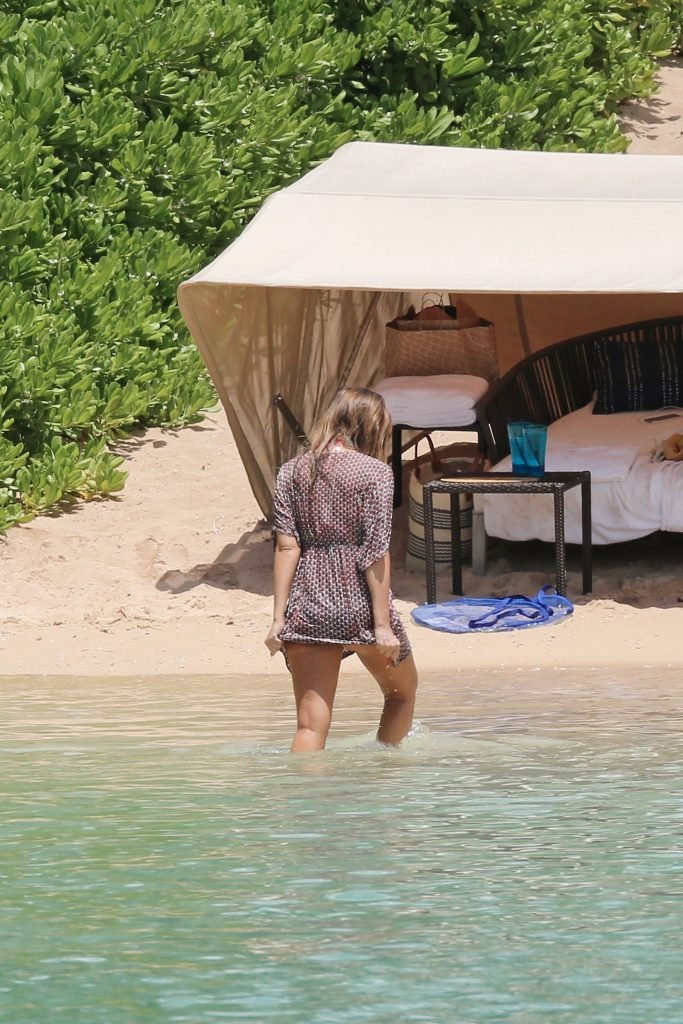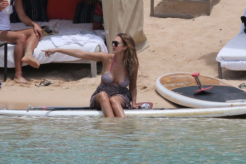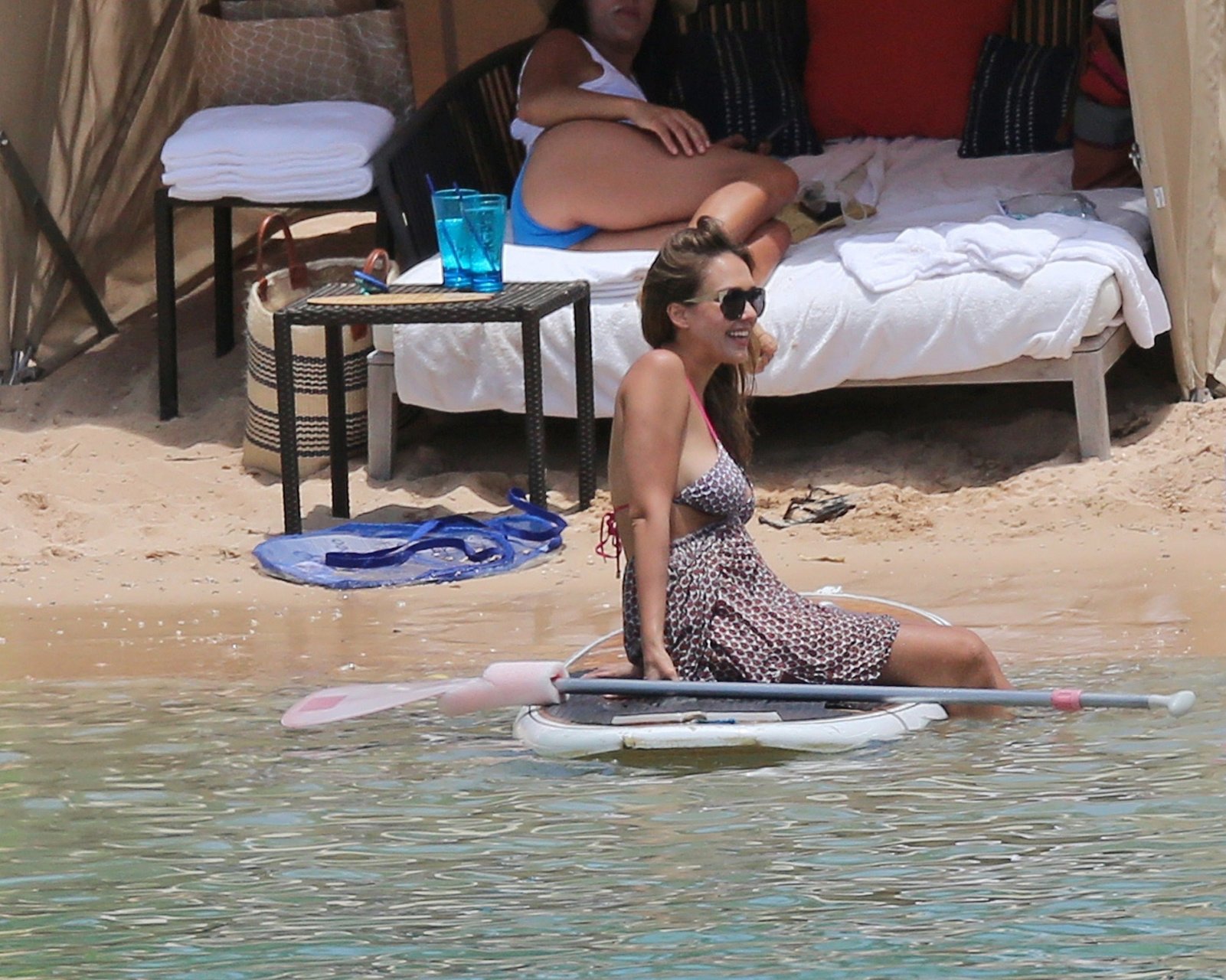 Jessica Alba llega a la playa con una pequeña pancita de embarazo. La estrella morena está de vacaciones con su familia, 17/07/2017.