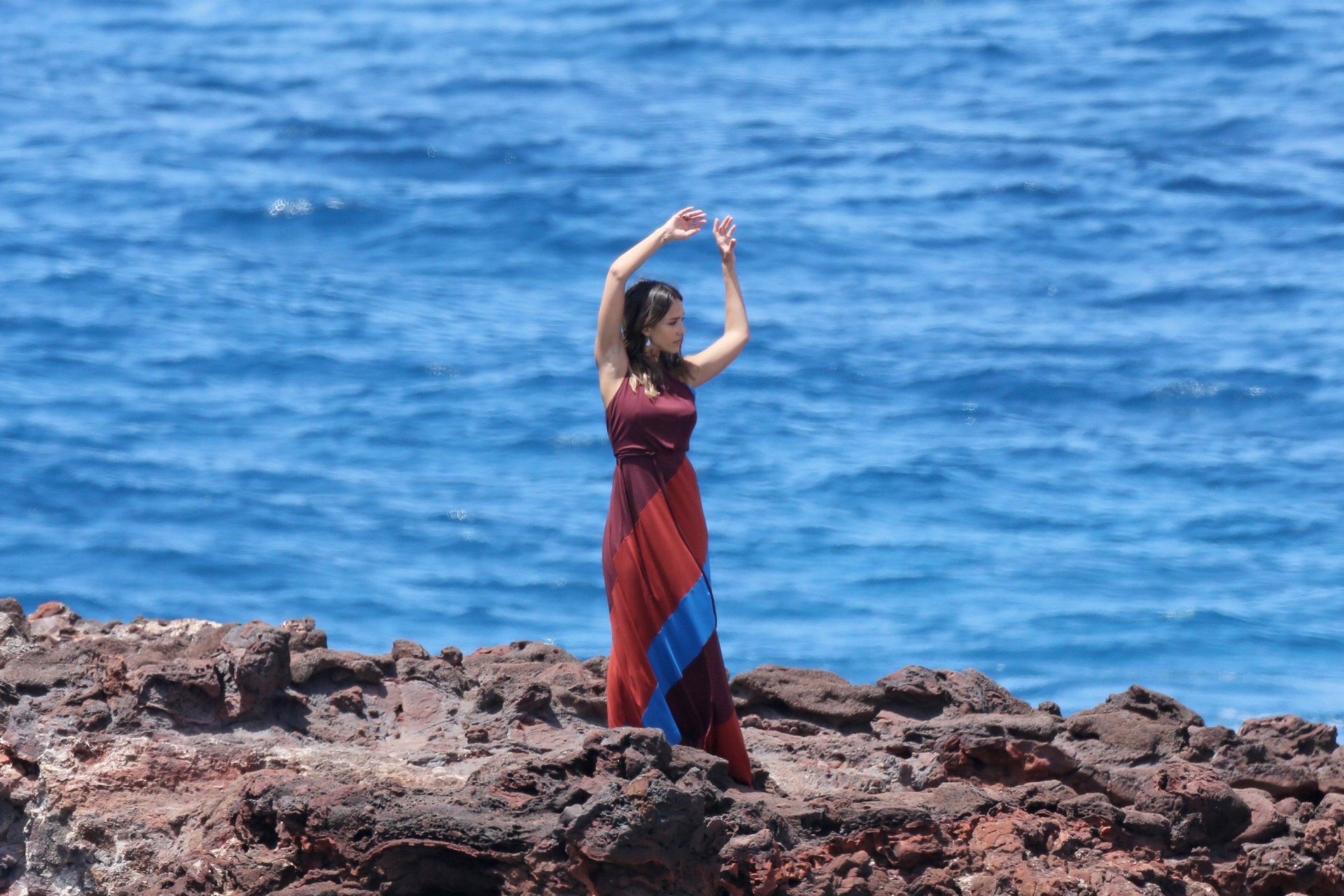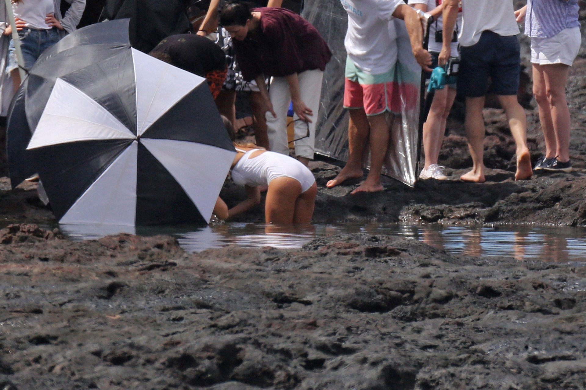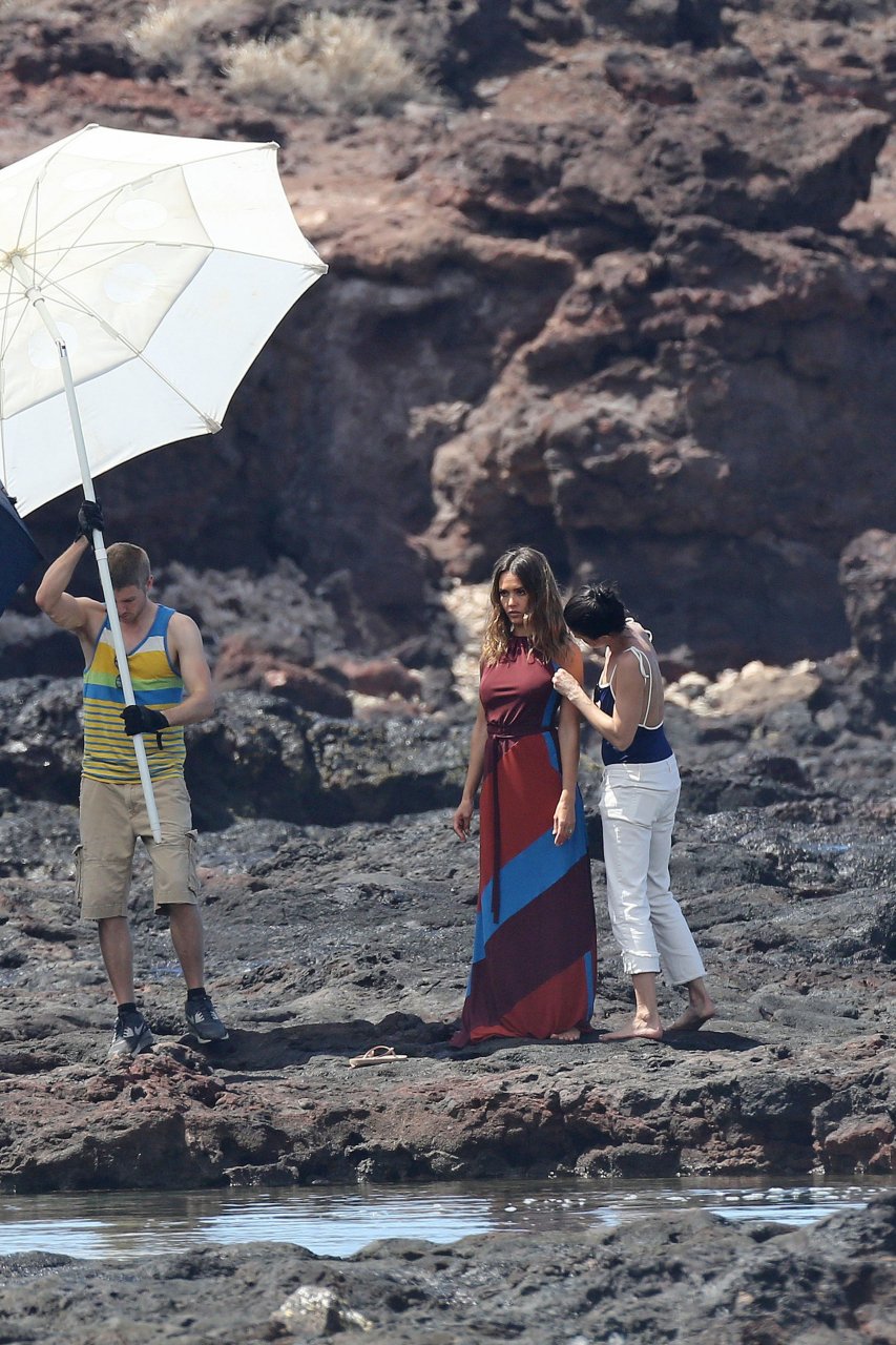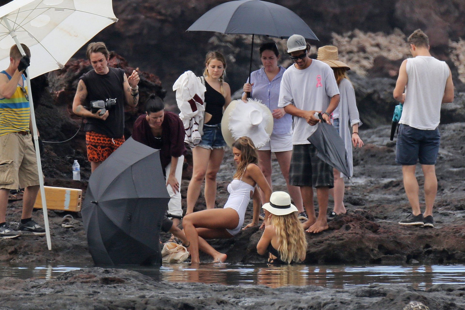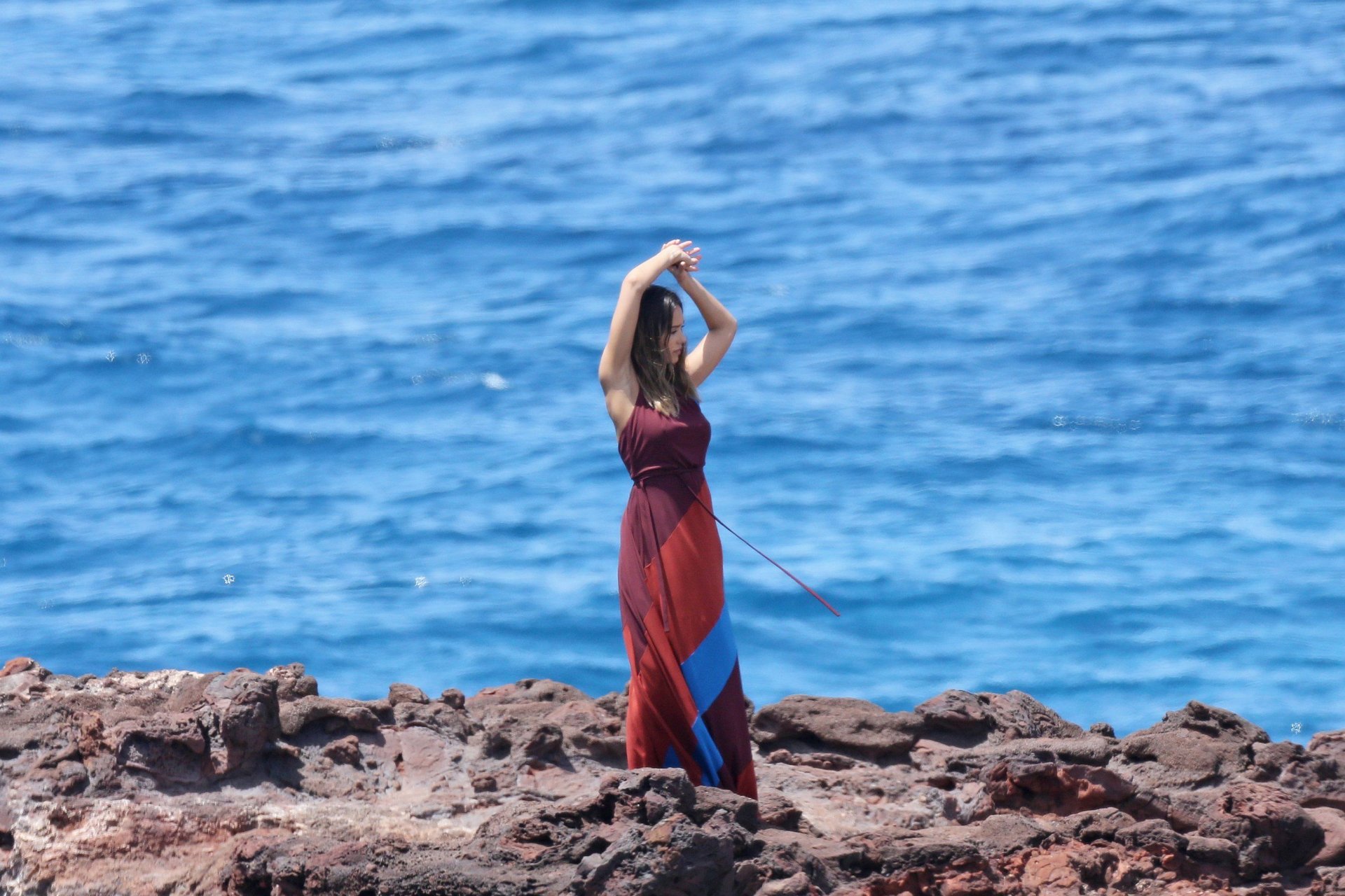 Paparazzi capturaron a Jessica Alba con un traje de baño blanco y un vestido púrpura durante una sesión de fotos en Hawái, 24/04/2016. Jessica Alba es una actriz y modelo estadounidense, conocida por “Sin City”, “Awake” y “The Sleeping Dictionary”. Edad 34 (28 de abril de 1981).