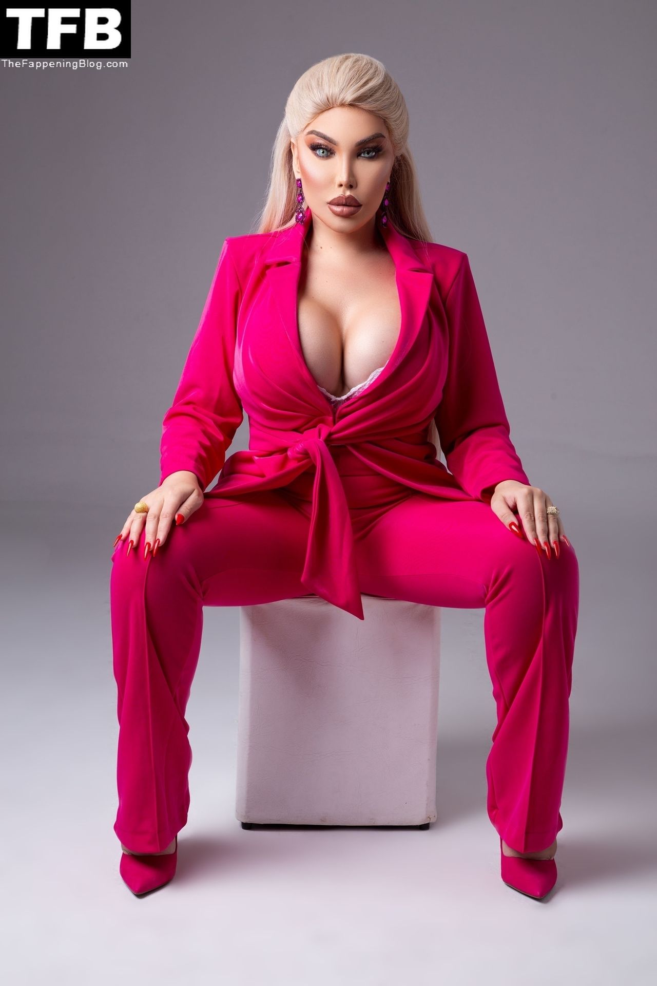Luciendo impresionante después de su cirugía de manga gástrica y perdiendo unas impresionantes 5.5 piedras, la personalidad televisiva brasileño-británica Jessica Alves mostró sus curvas impresionantes con una variedad de atuendos durante una sesión de fotos sexy (2021).