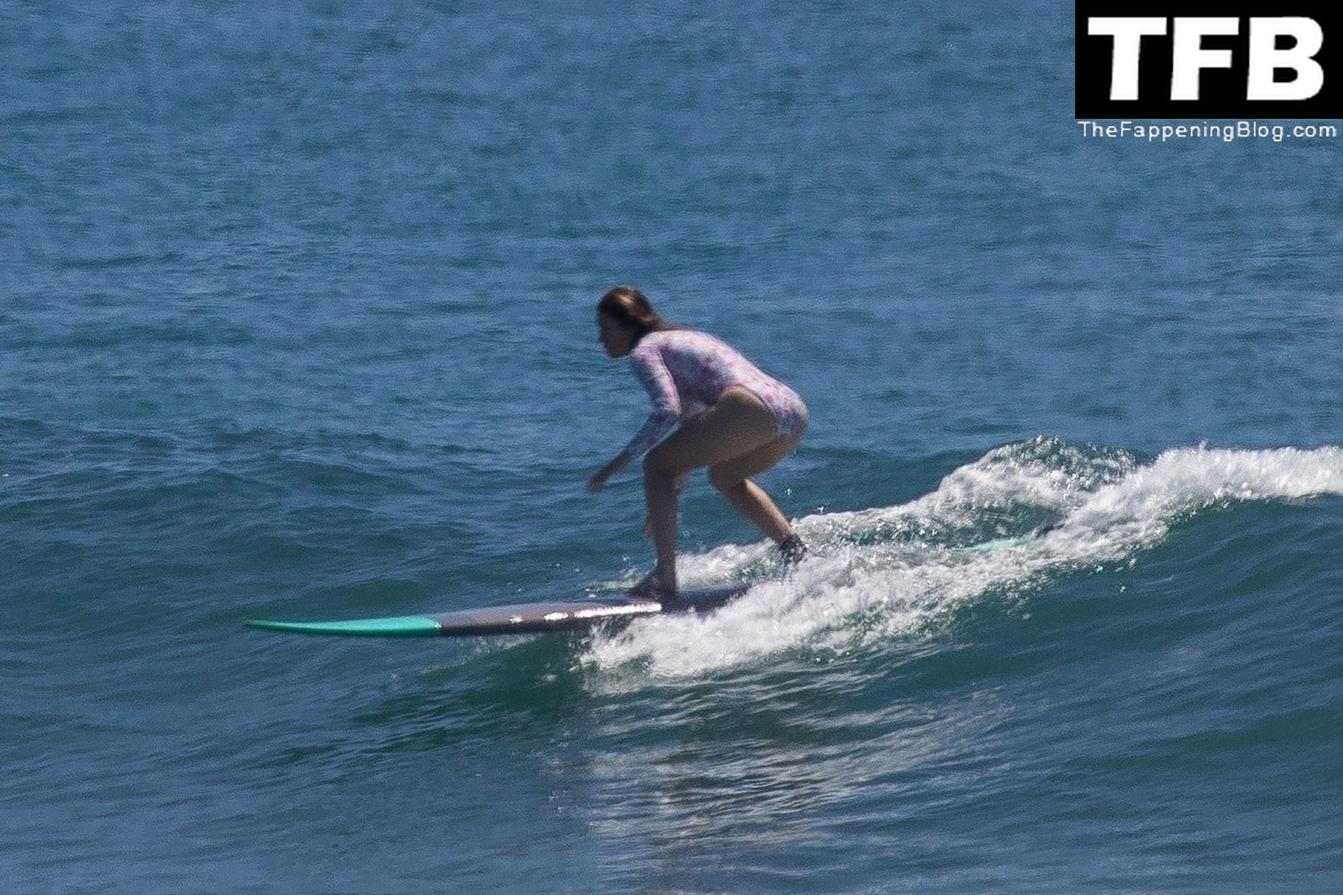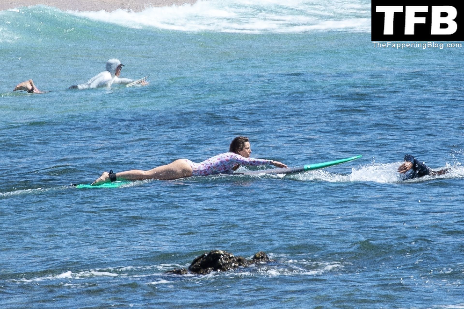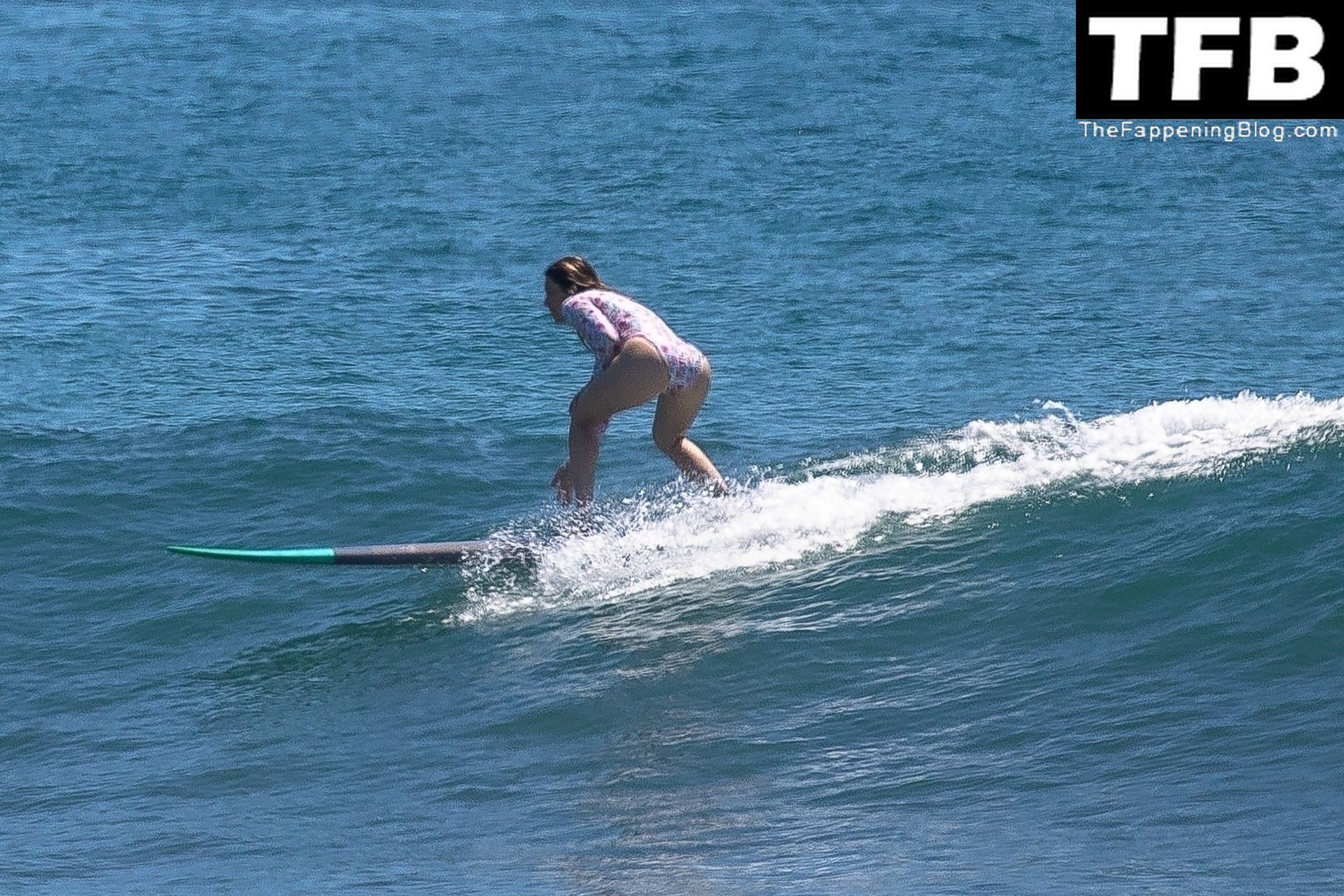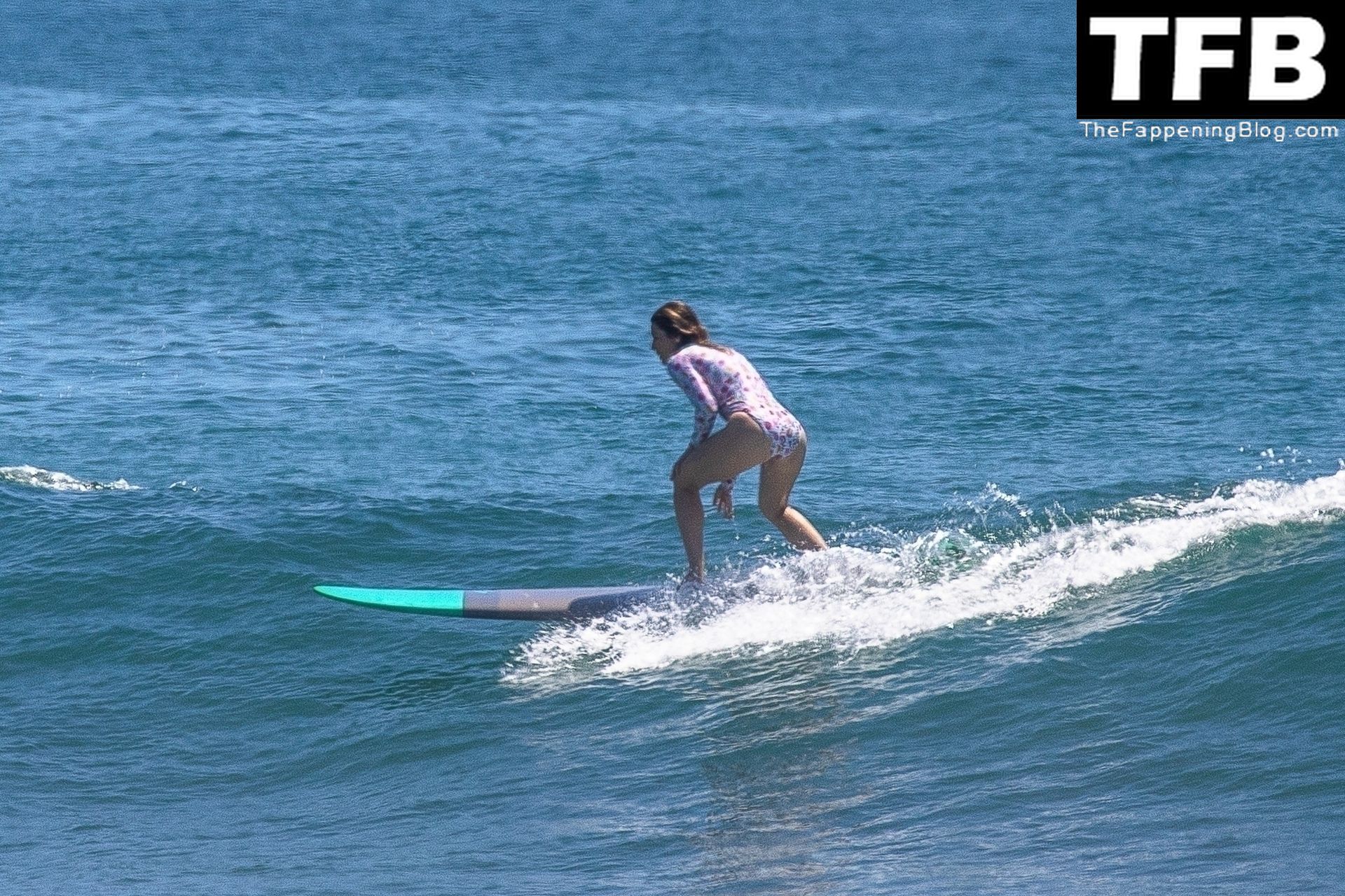 Jessica lució su figura atlética con un traje de baño de una pieza con estampado floral y fue vista saliendo a surfear mientras Justin se relajaba en su resort.